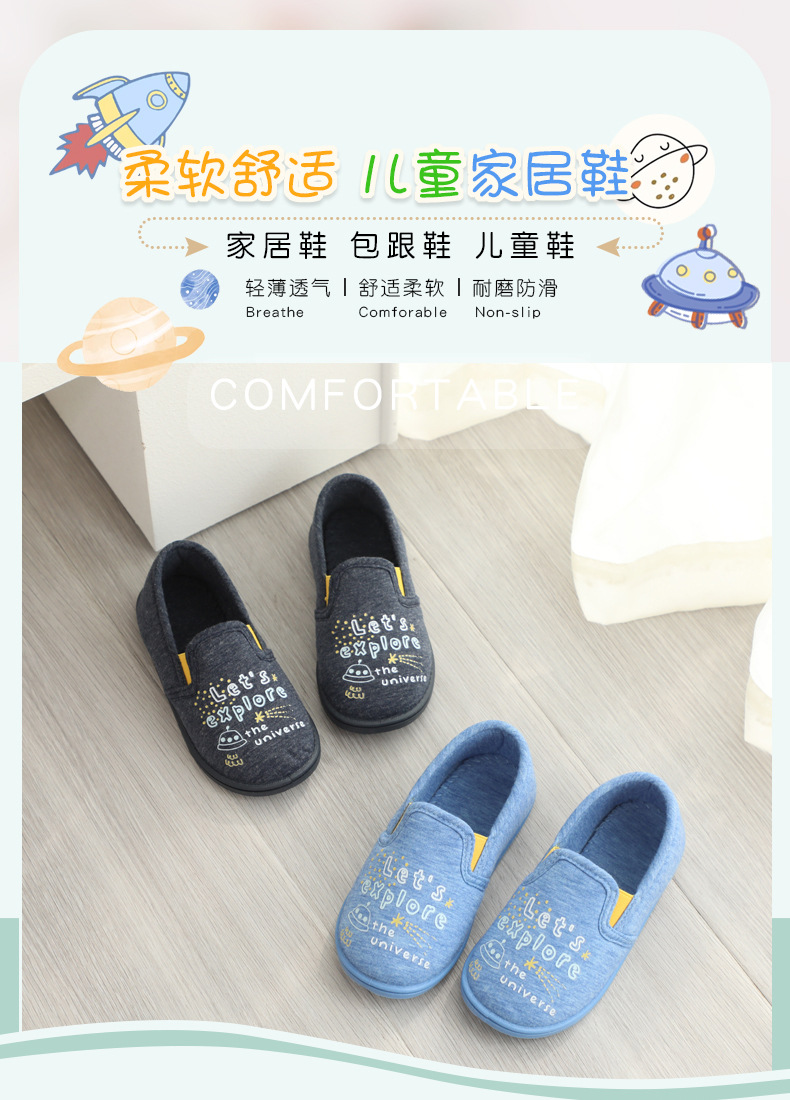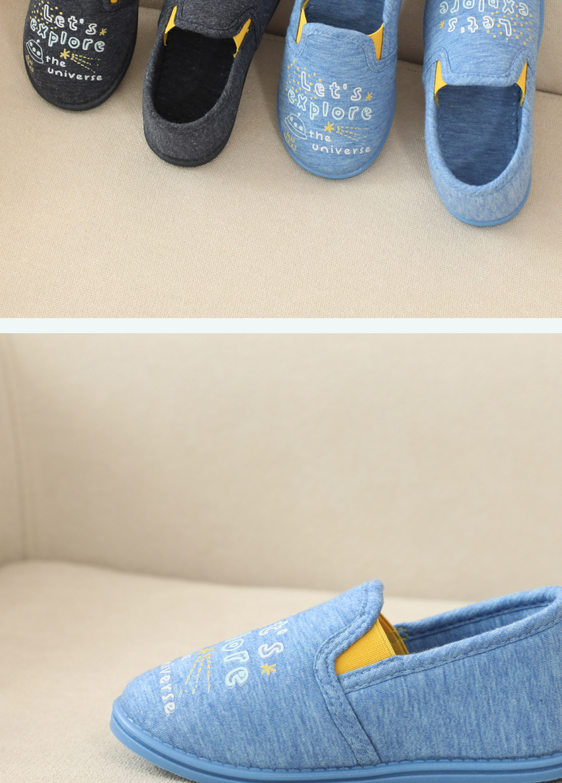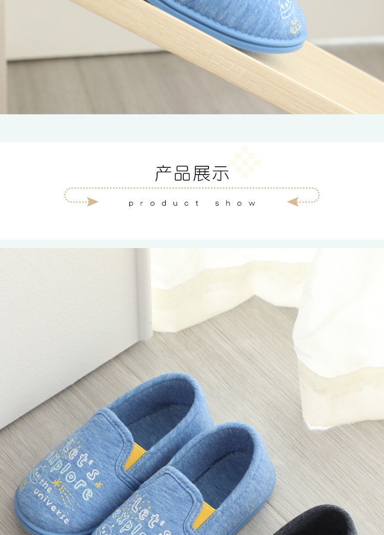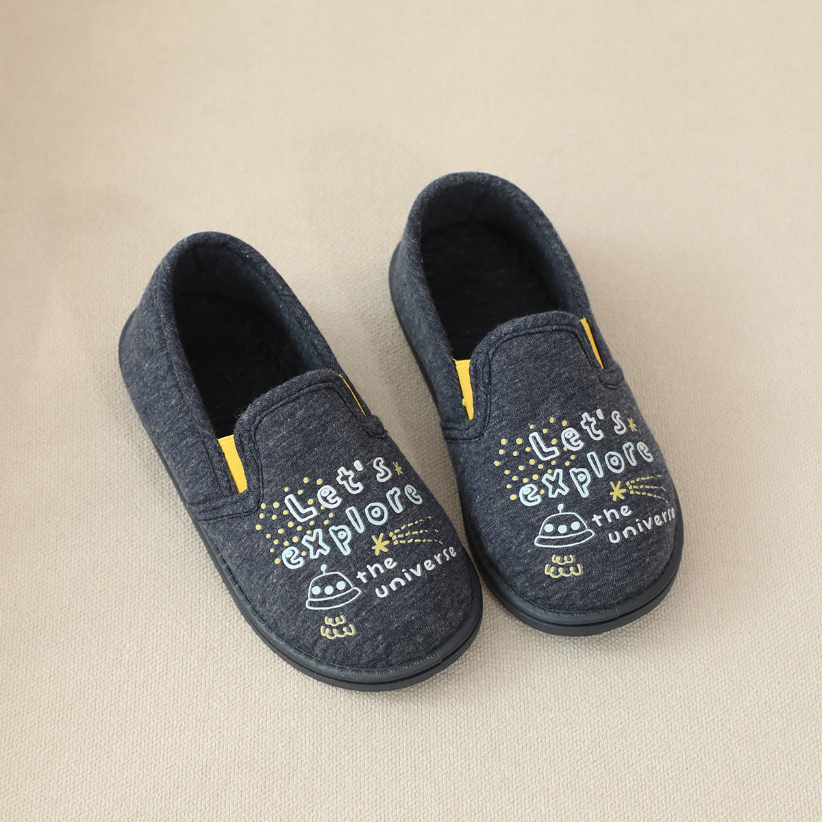소년 편지 인쇄 두꺼운 밑창 실내 미끄럼 방지 홈 힐 슬리퍼 어린이 면 단층 신발 발 변경 바닥 슬리퍼