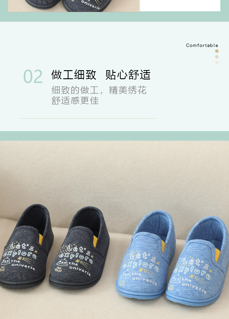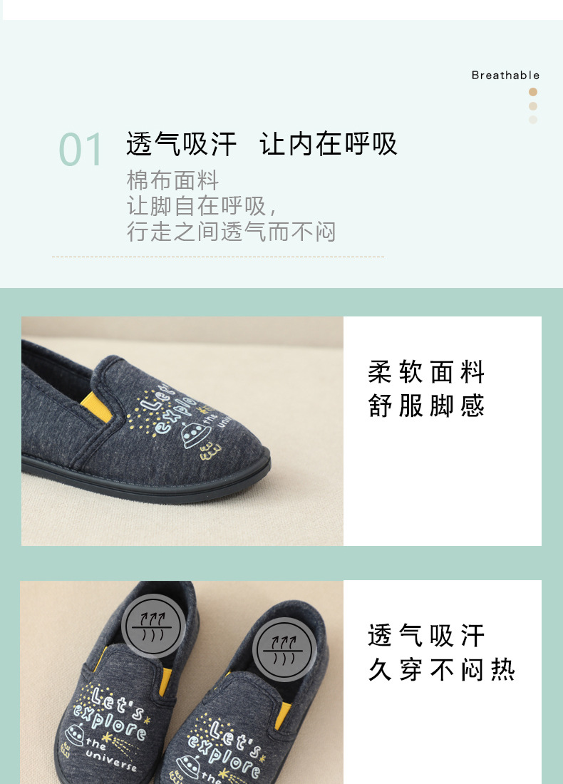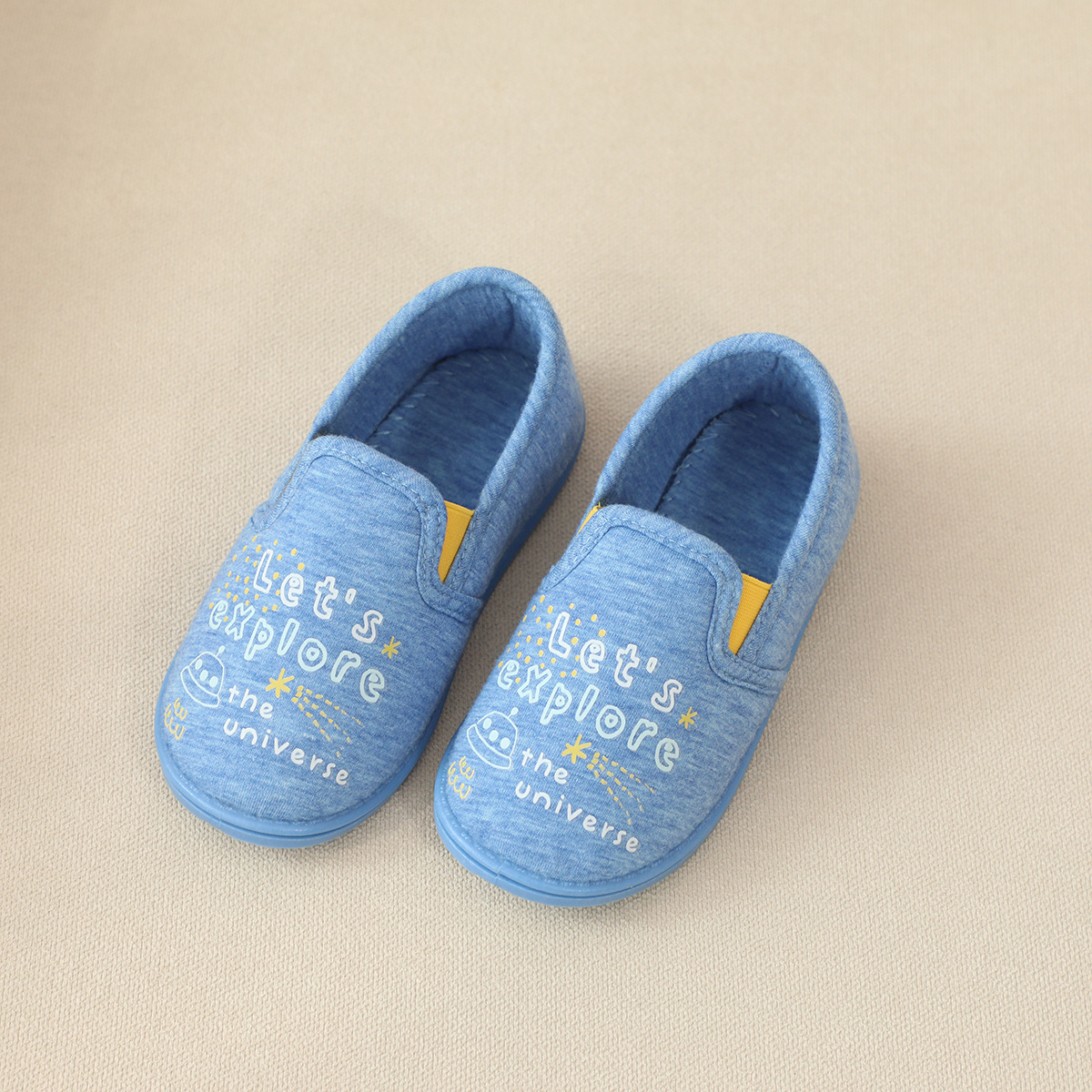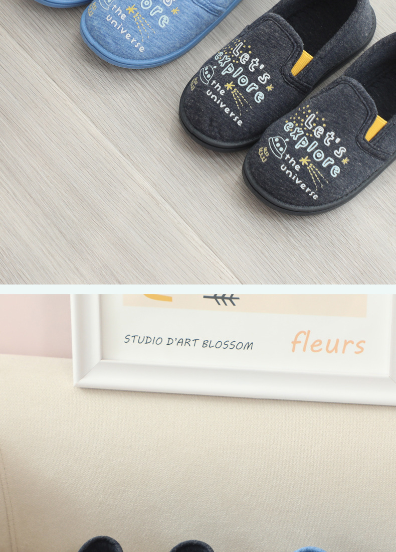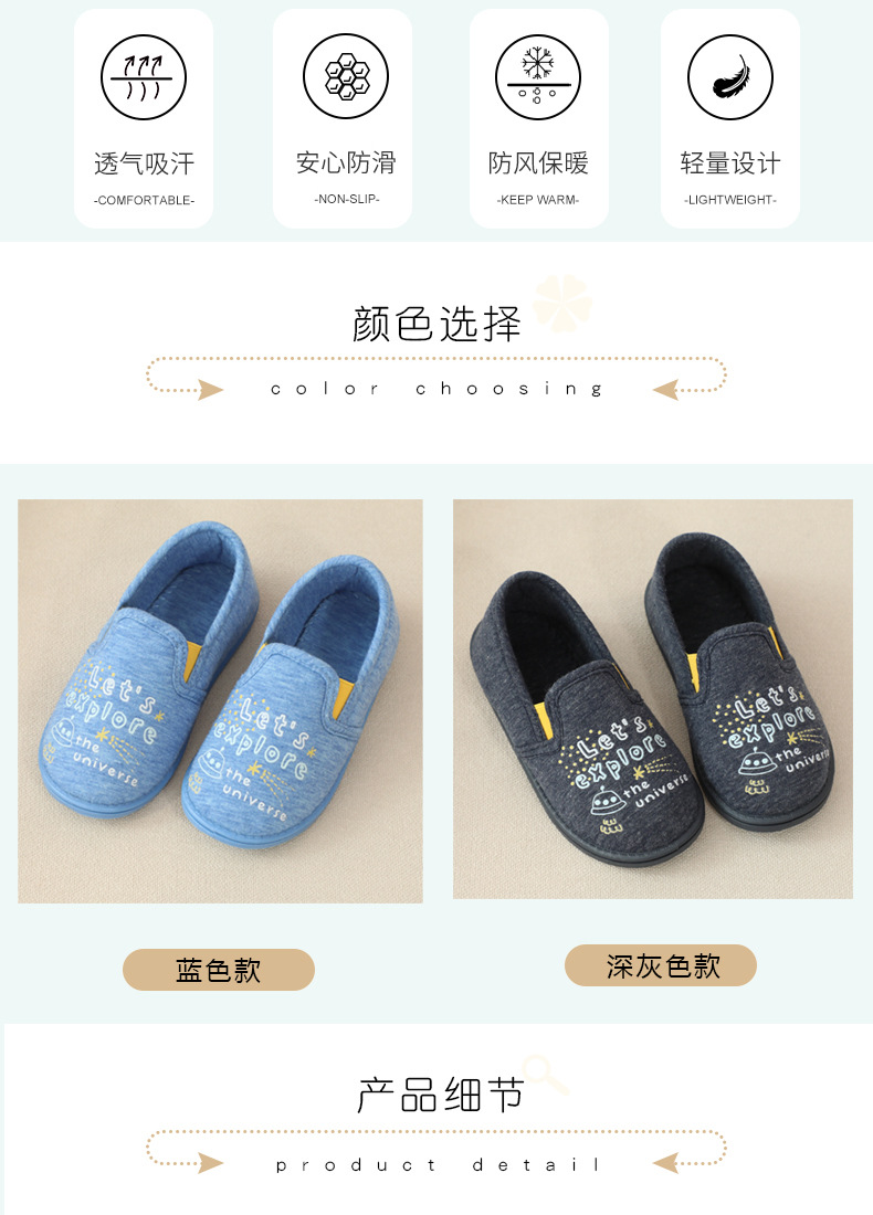 소년 편지 인쇄 두꺼운 밑창 실내 미끄럼 방지 홈 힐 슬리퍼 어린이 면 단층 신발 발 변경 바닥 슬리퍼