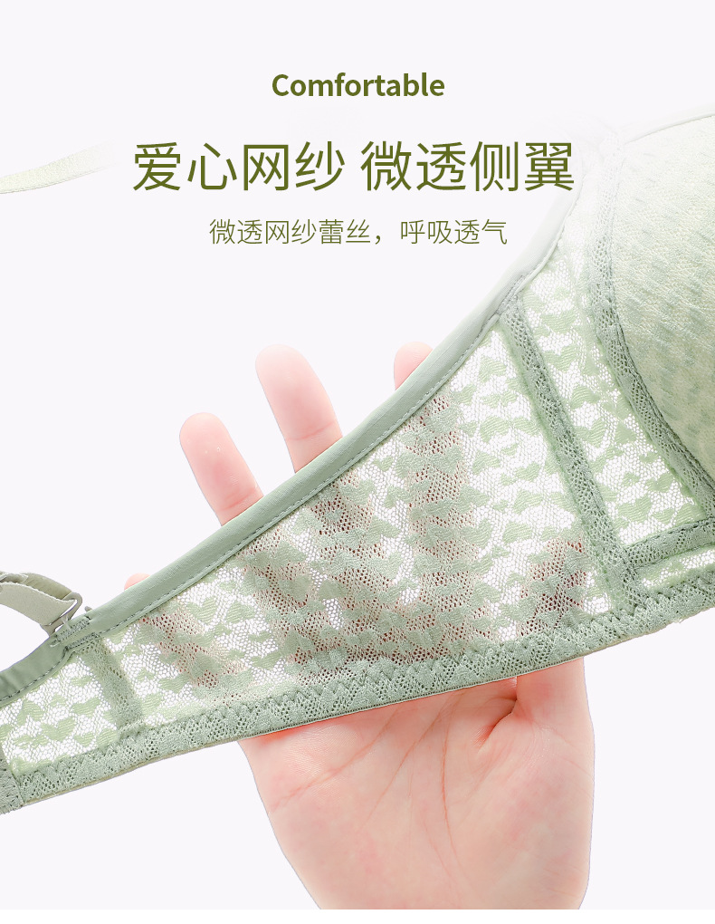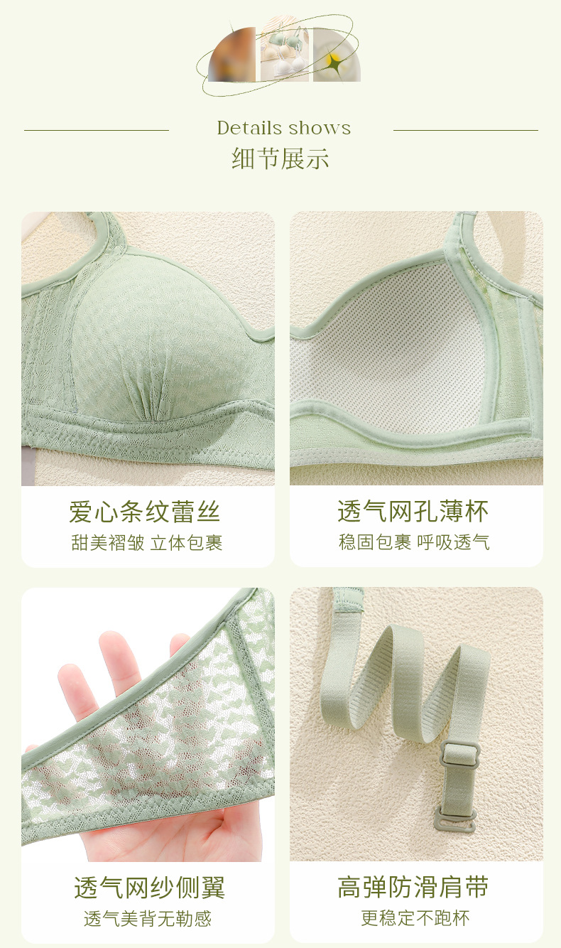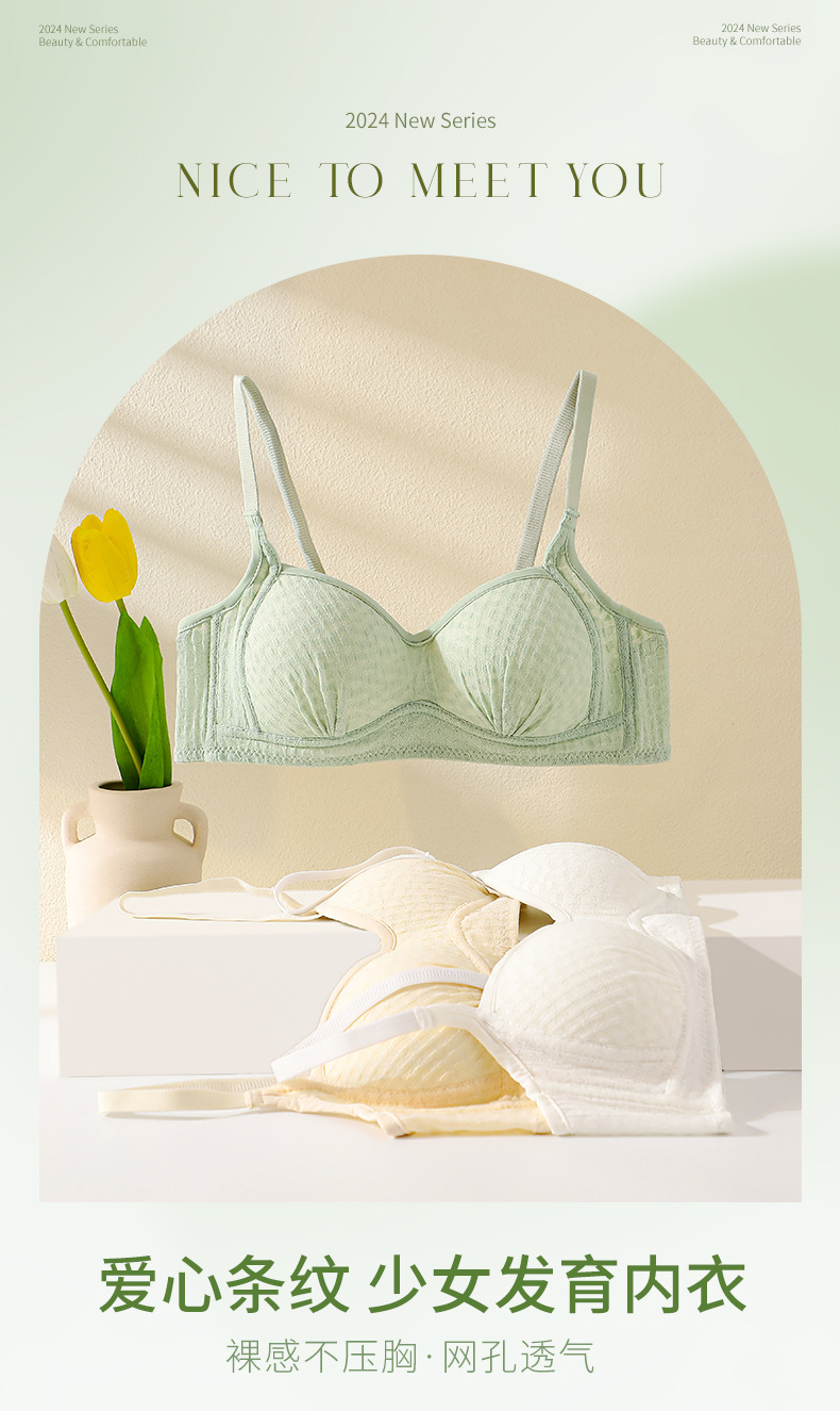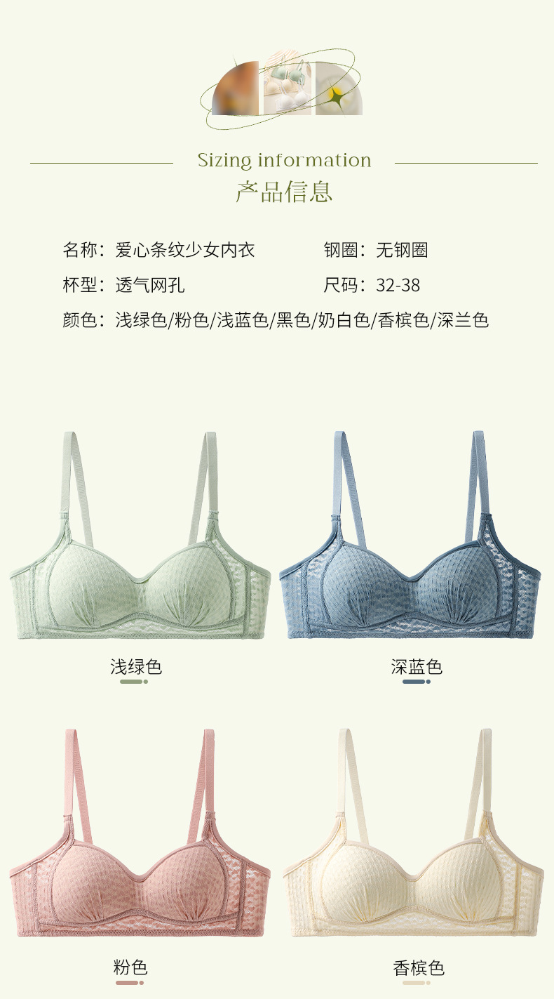 새로운 스타일 사랑 줄무늬 소녀의 개발 벌거 벗은 간단한 달콤한 주름 메쉬 레이스 편안한 반지 없음 브래지어 여성을위한