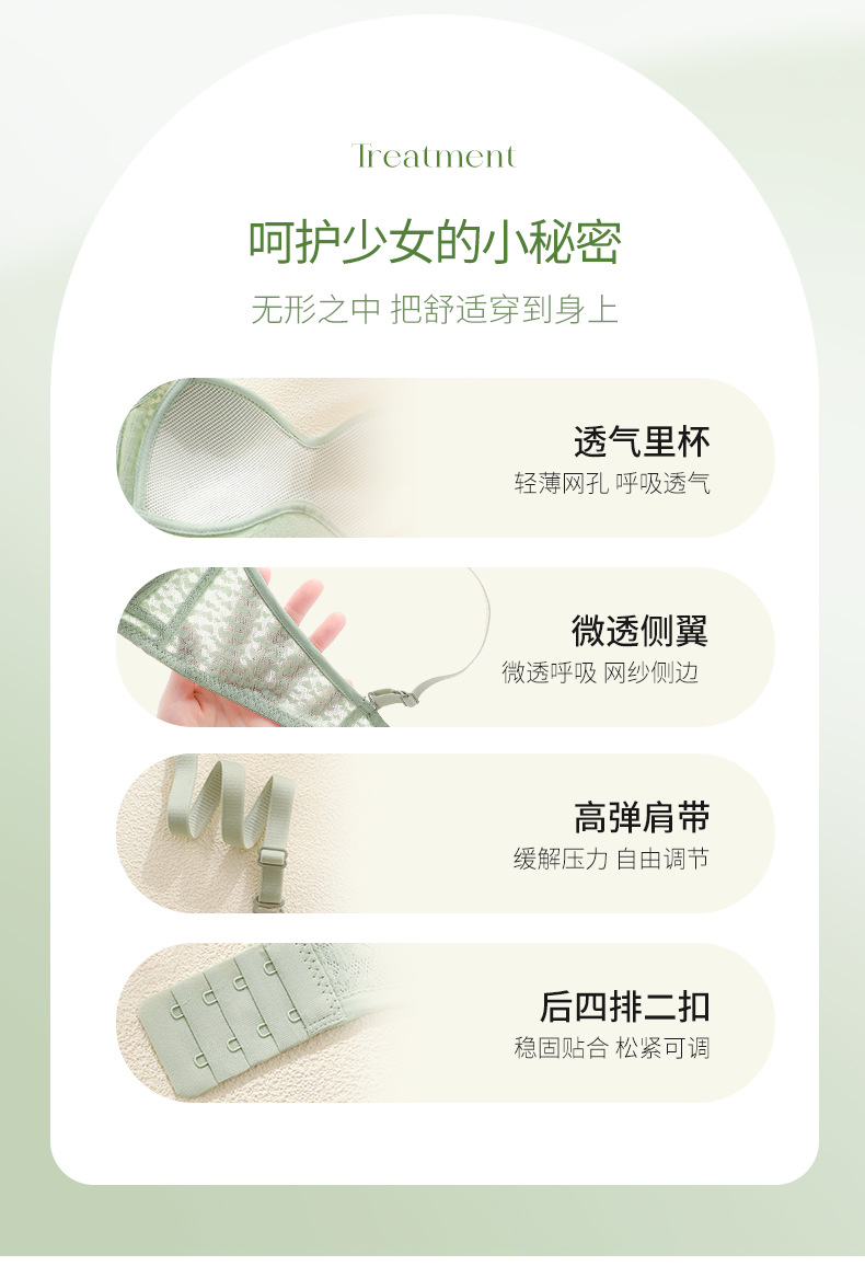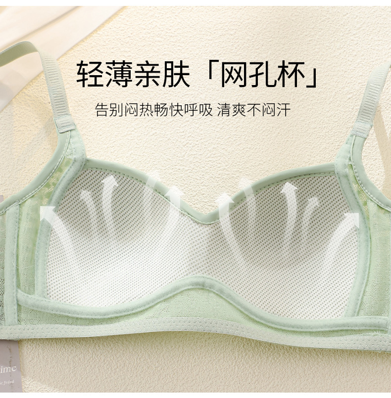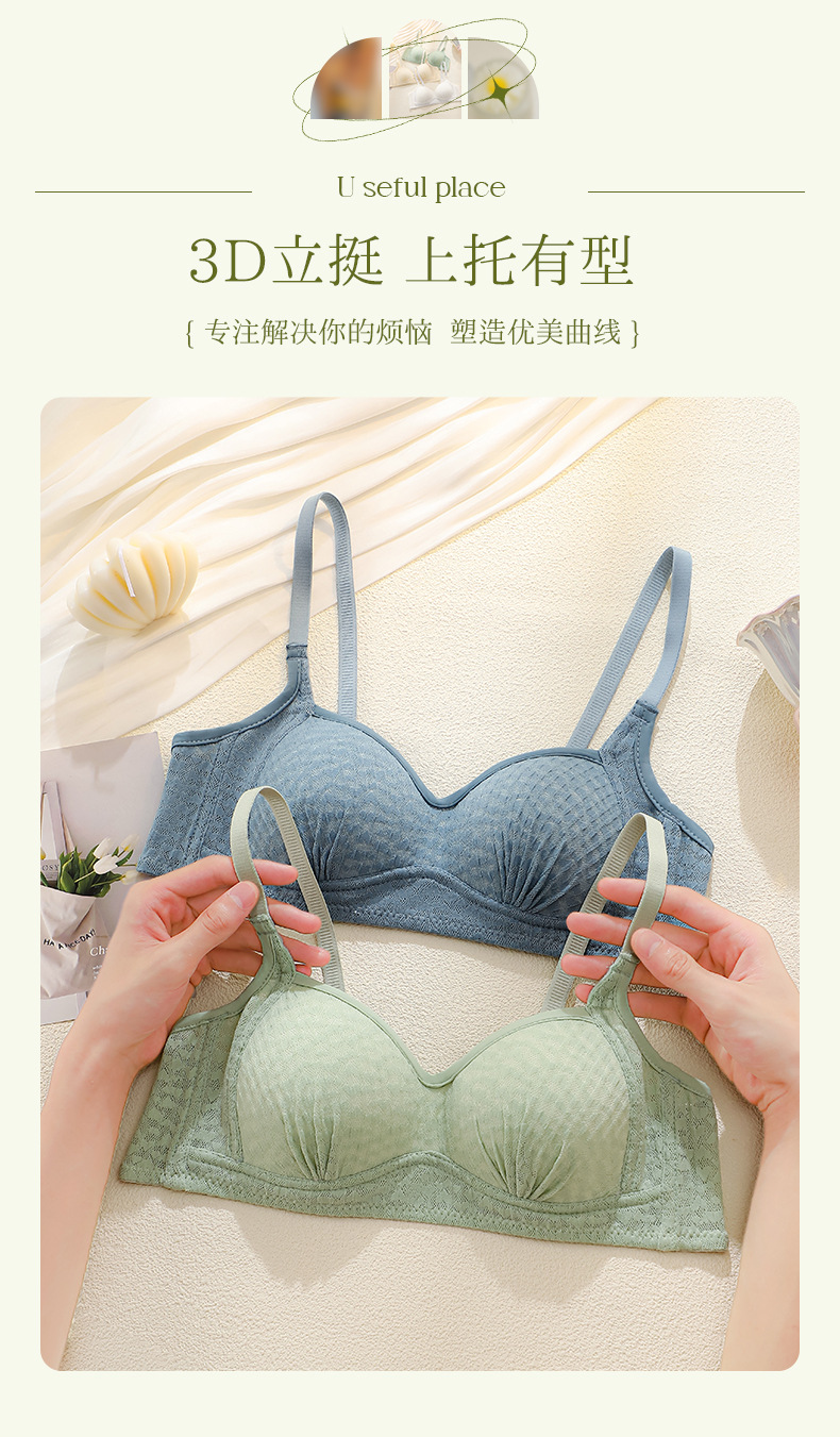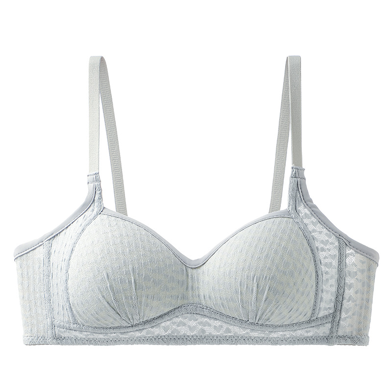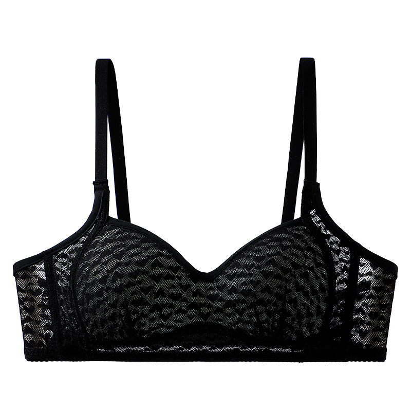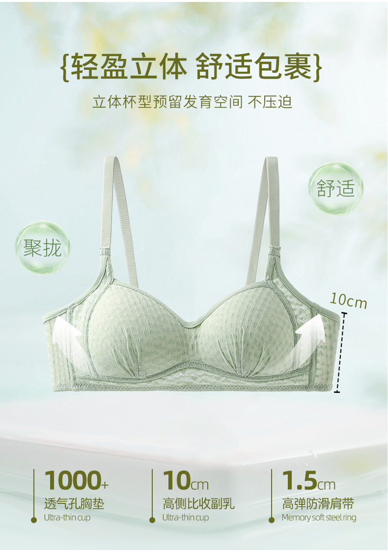 새로운 스타일 사랑 줄무늬 소녀의 개발 벌거 벗은 간단한 달콤한 주름 메쉬 레이스 편안한 반지 없음 브래지어 여성을위한