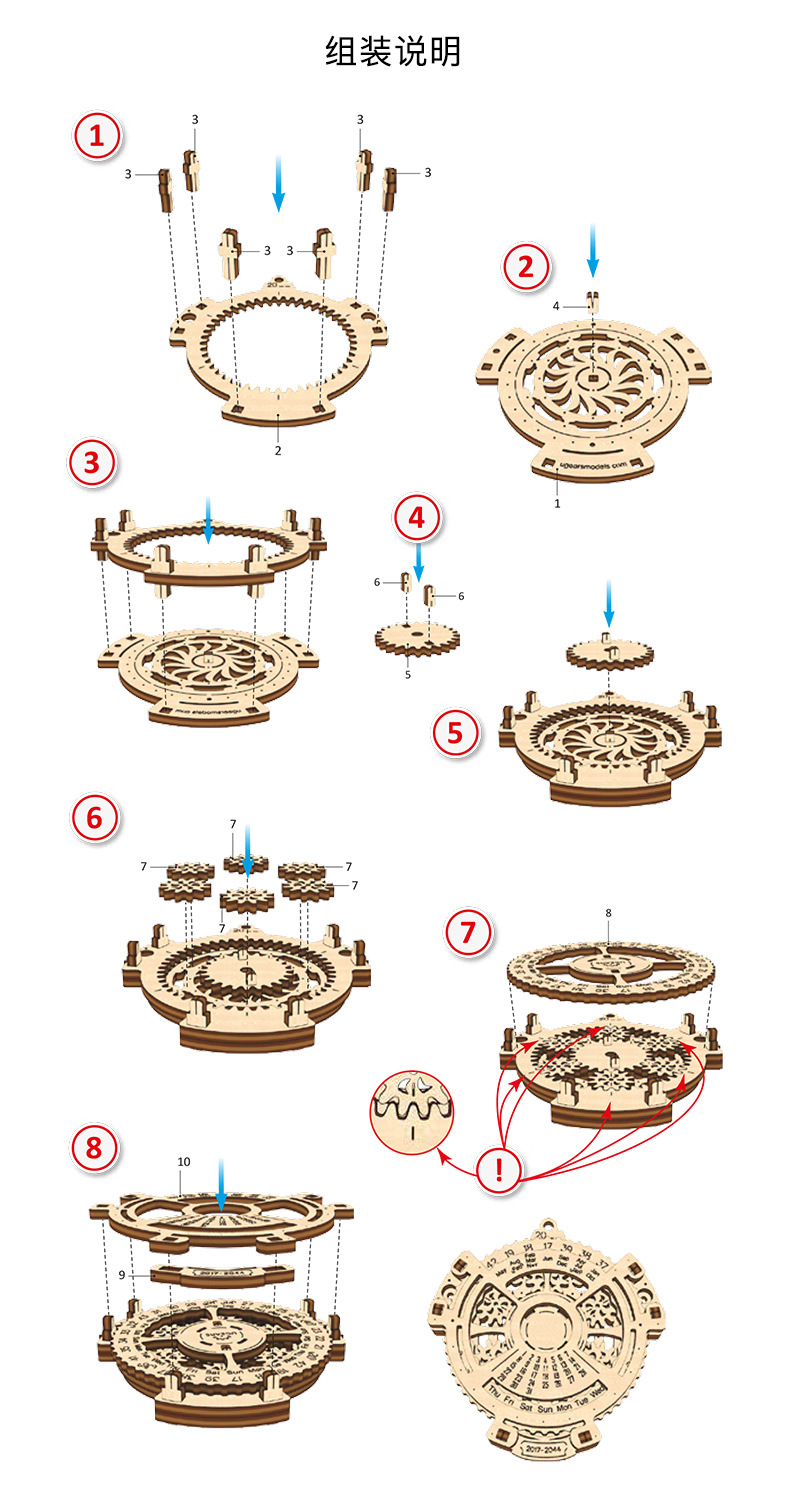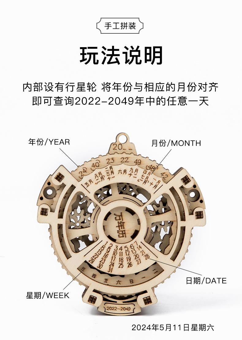 만년 달력 DIY 나무 기어 회전 모형 장식품 어린이 장난감 퍼즐 6세 교육용 입체 퍼즐
