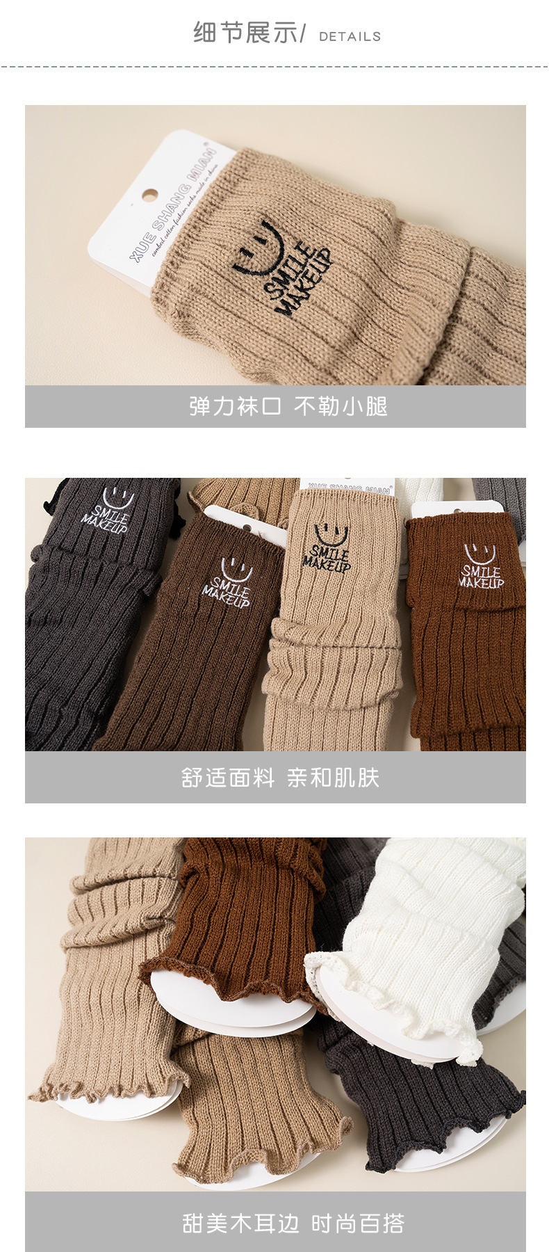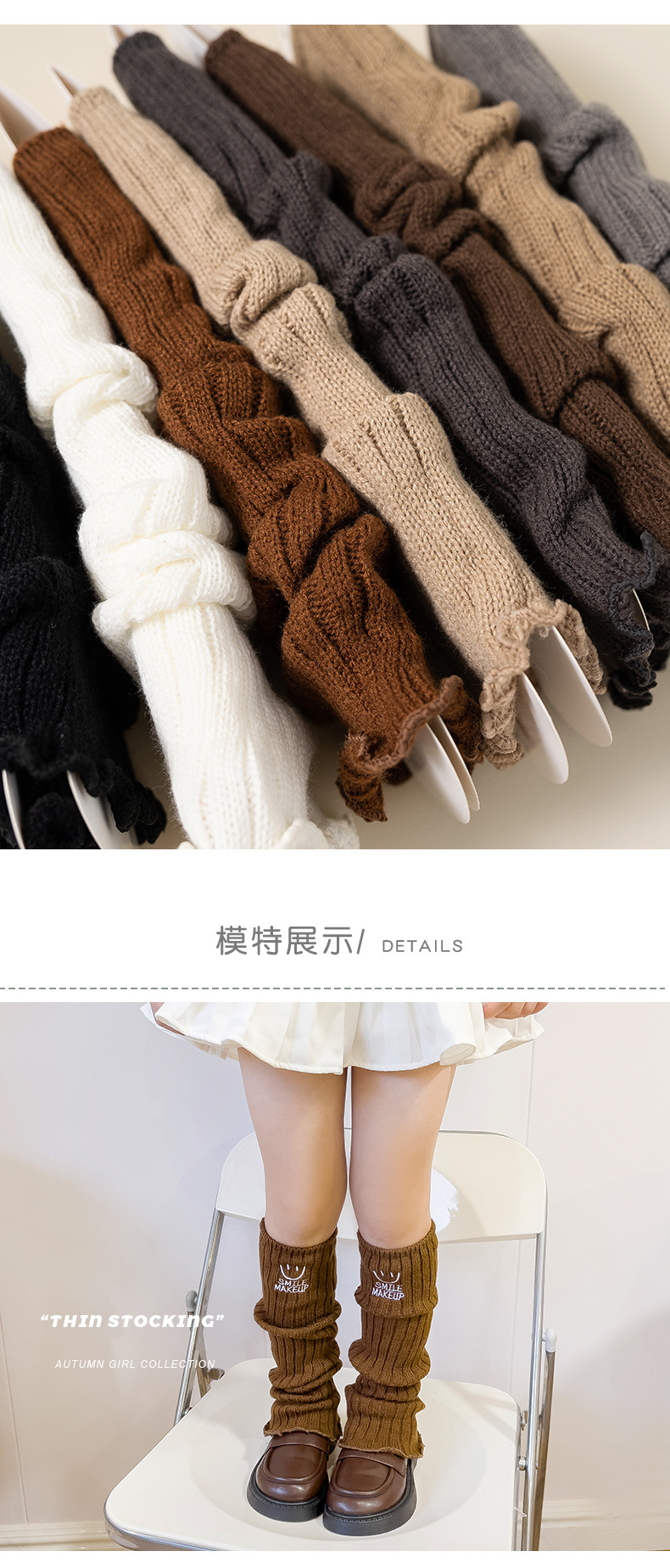 소녀 자수 양말 봄과 가을 긴 다크 브라운 쌓인 양말 양모 니트 한국 스타일 가을과 겨울 따뜻한 다리 커버