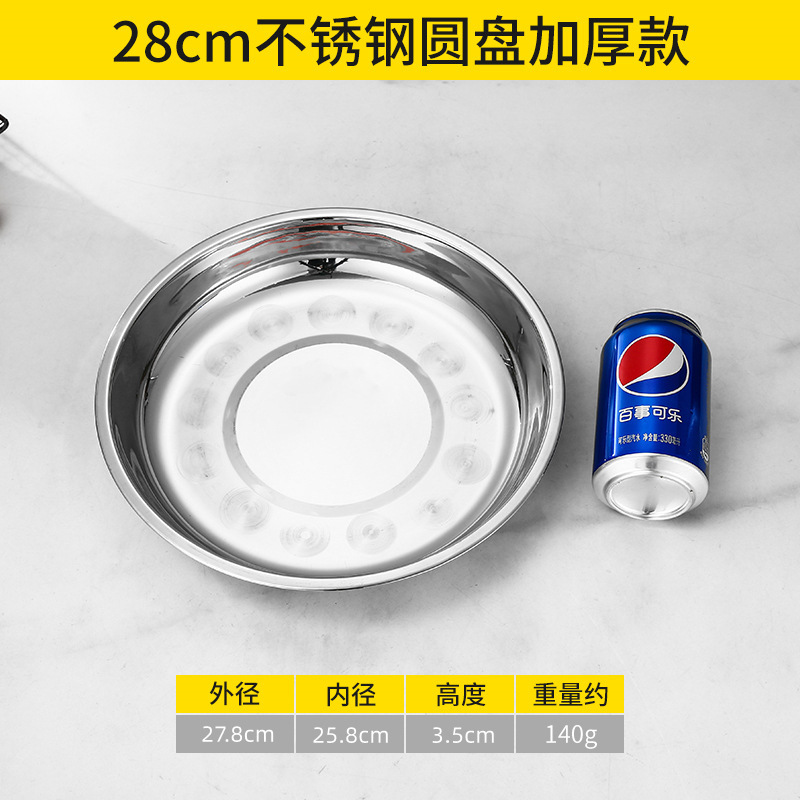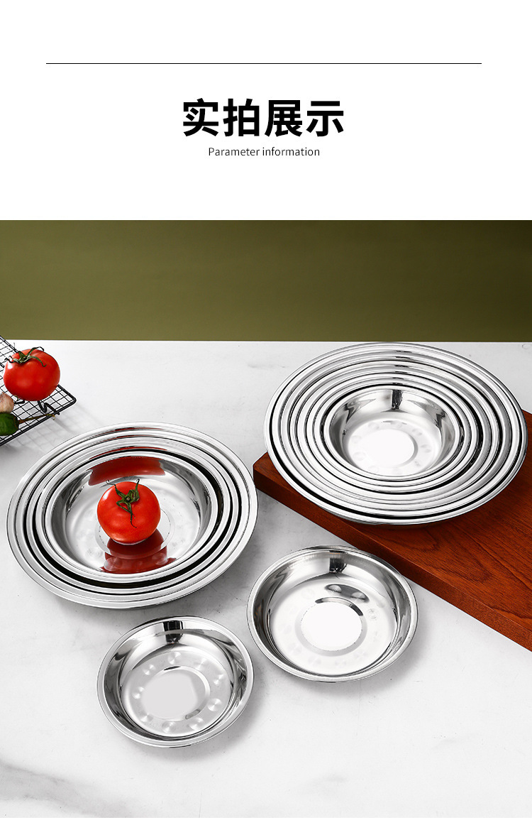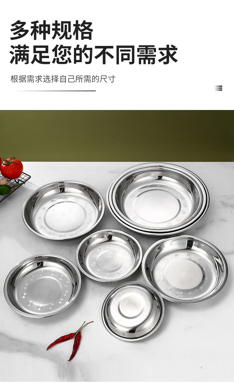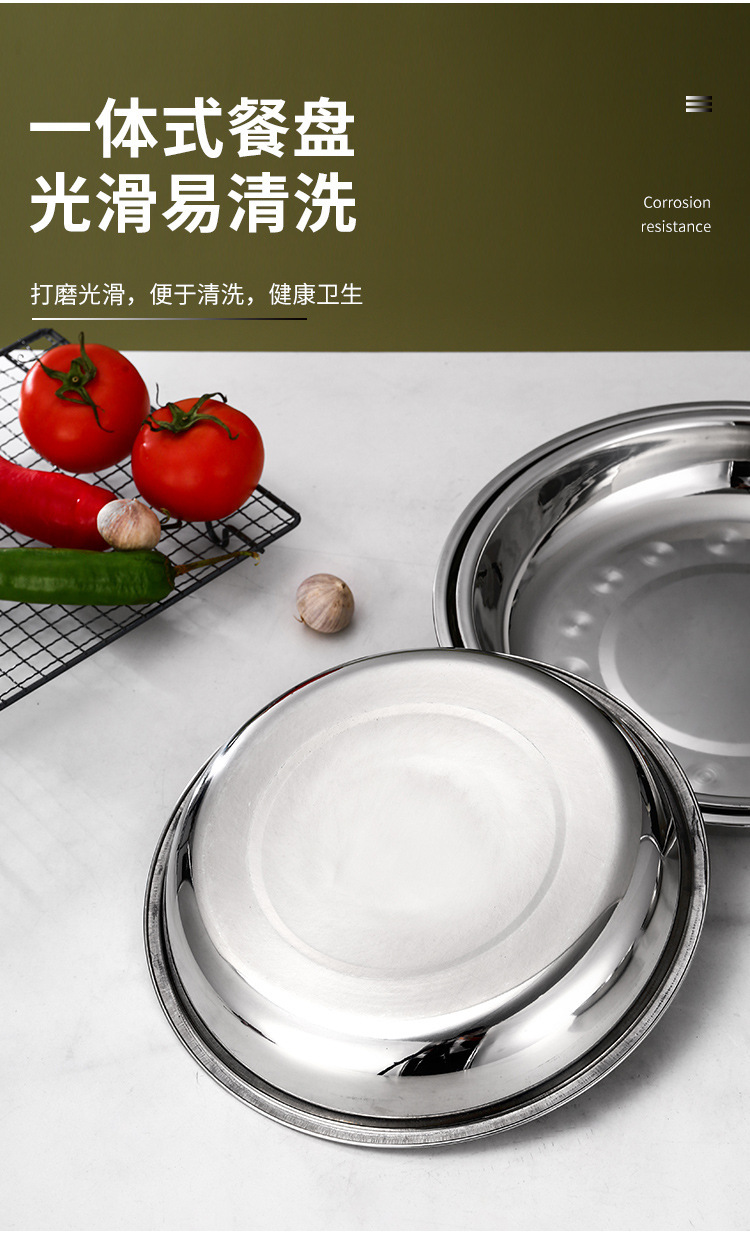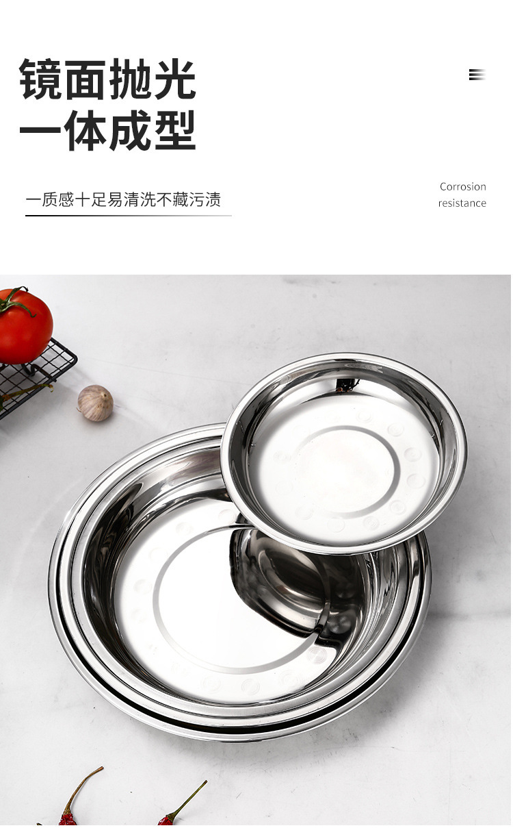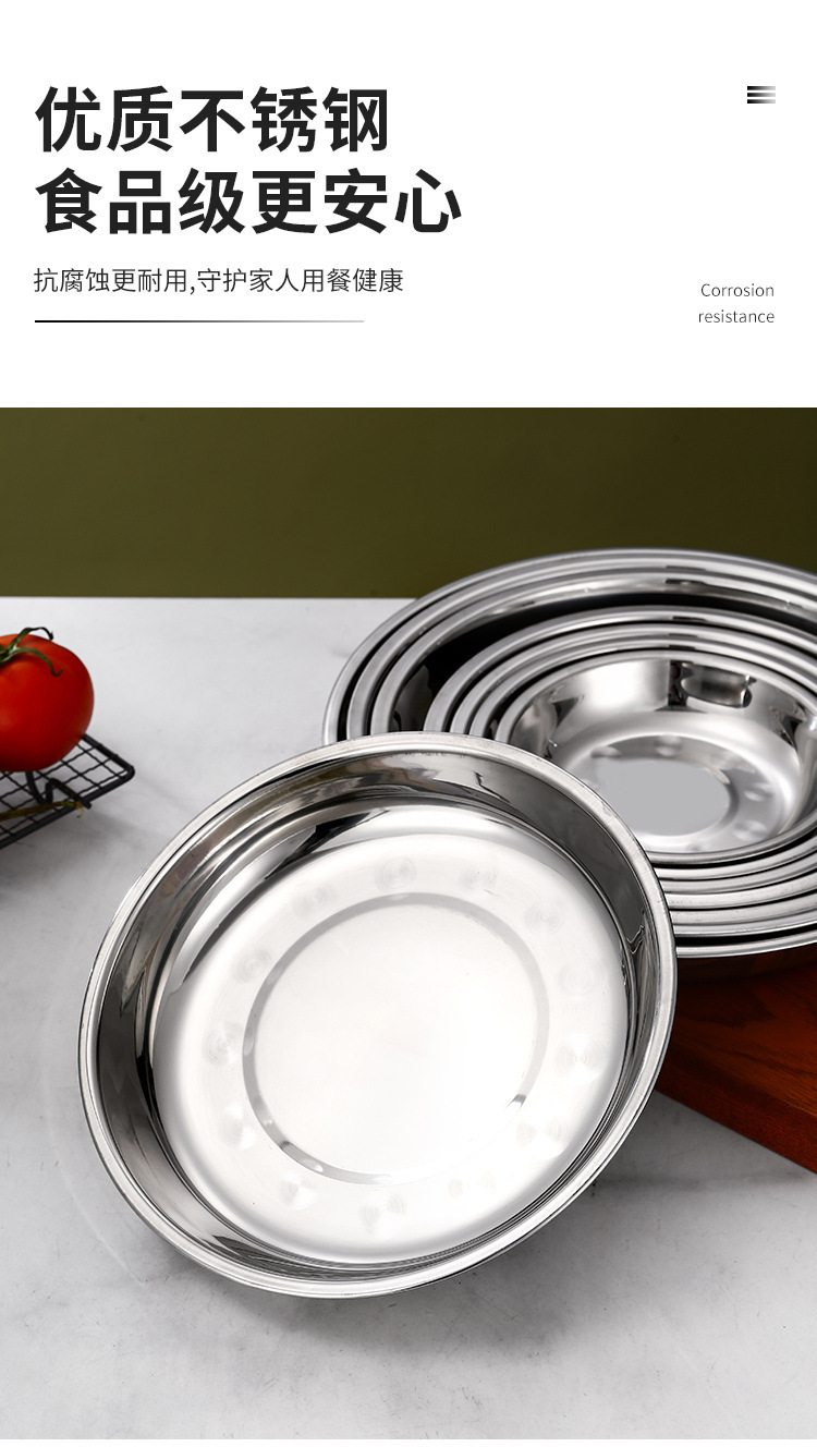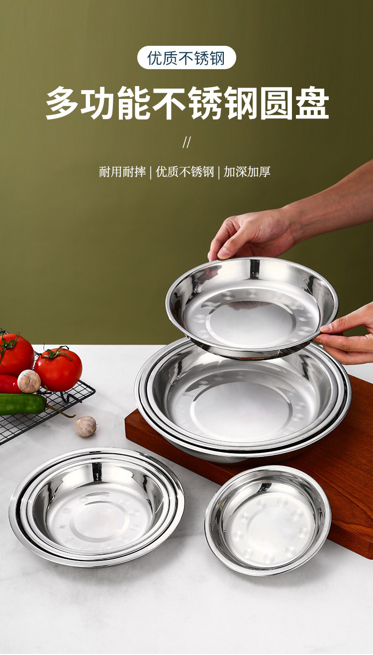 스테인레스 스틸 플레이트 가정용 접시 가정용 두꺼운 라운드 플레이트 접시 바베큐 플레이트 딥 플레이트 스핀 얕은 플레이트 상업스토어 가기