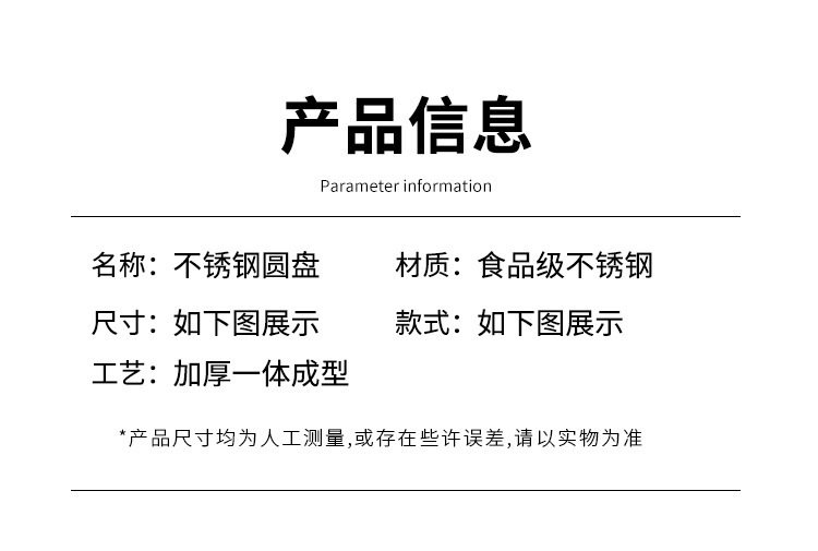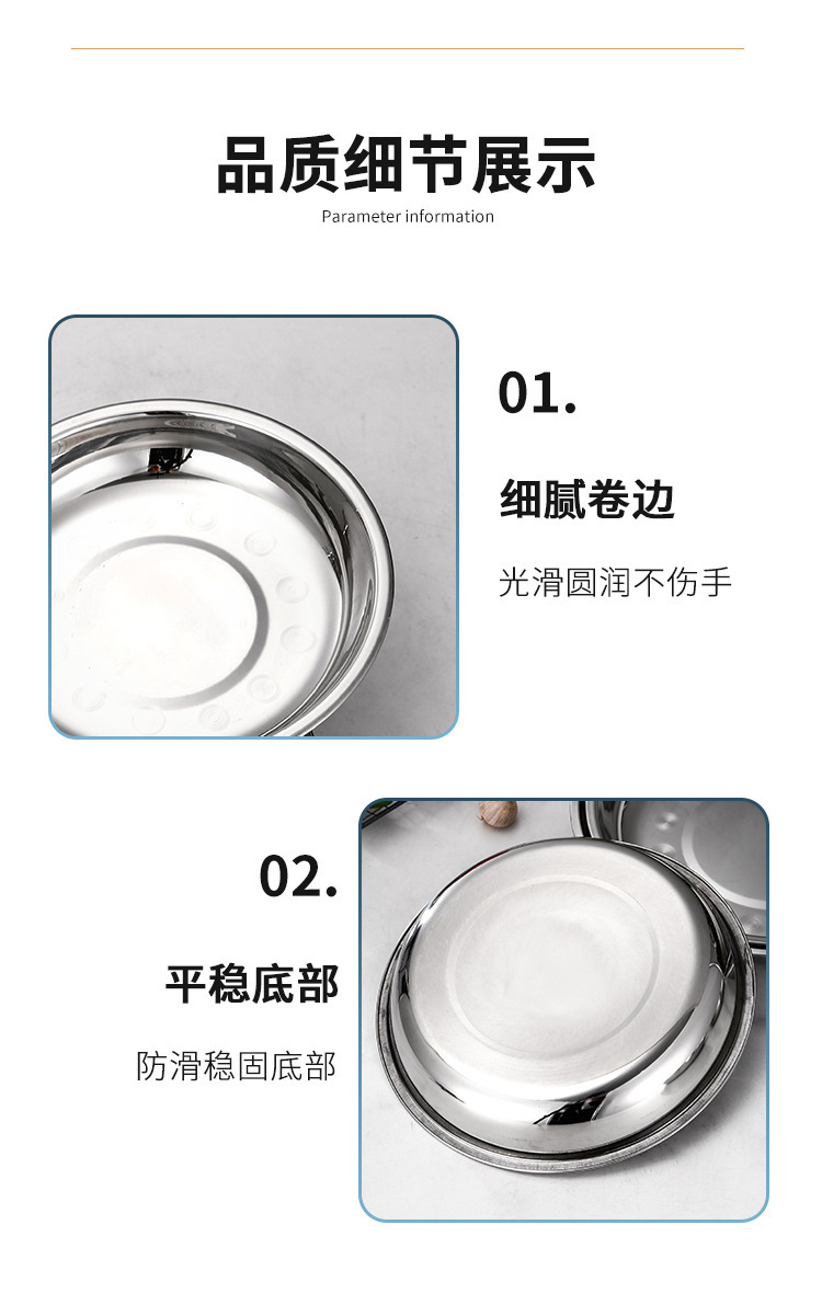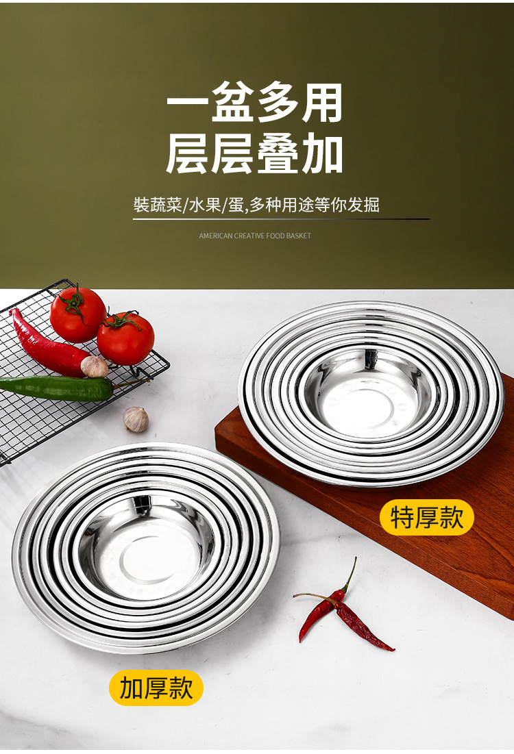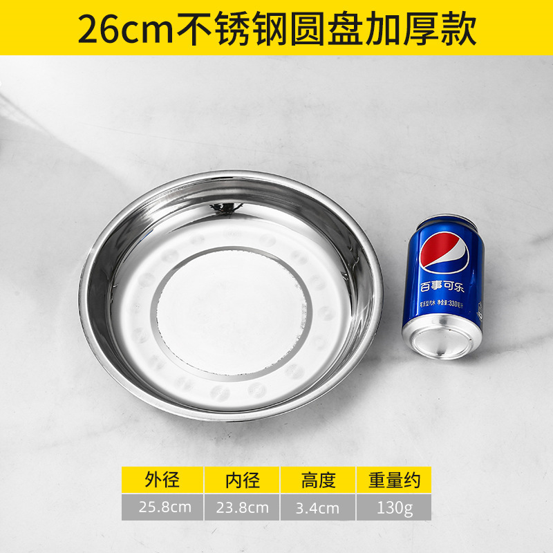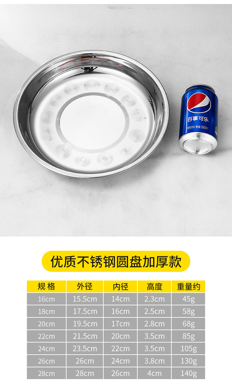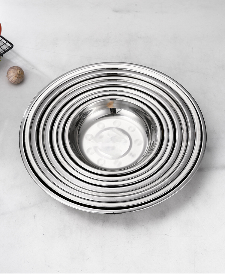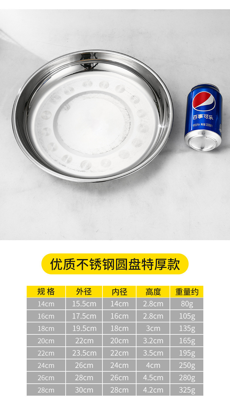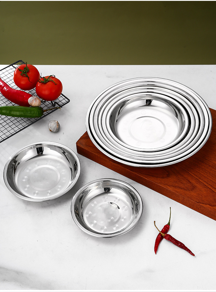 스테인레스 스틸 플레이트 가정용 접시 가정용 두꺼운 라운드 플레이트 접시 바베큐 플레이트 딥 플레이트 스핀 얕은 플레이트 상업스토어 가기