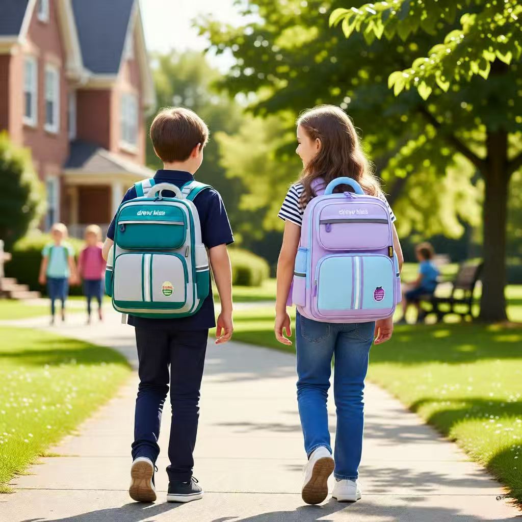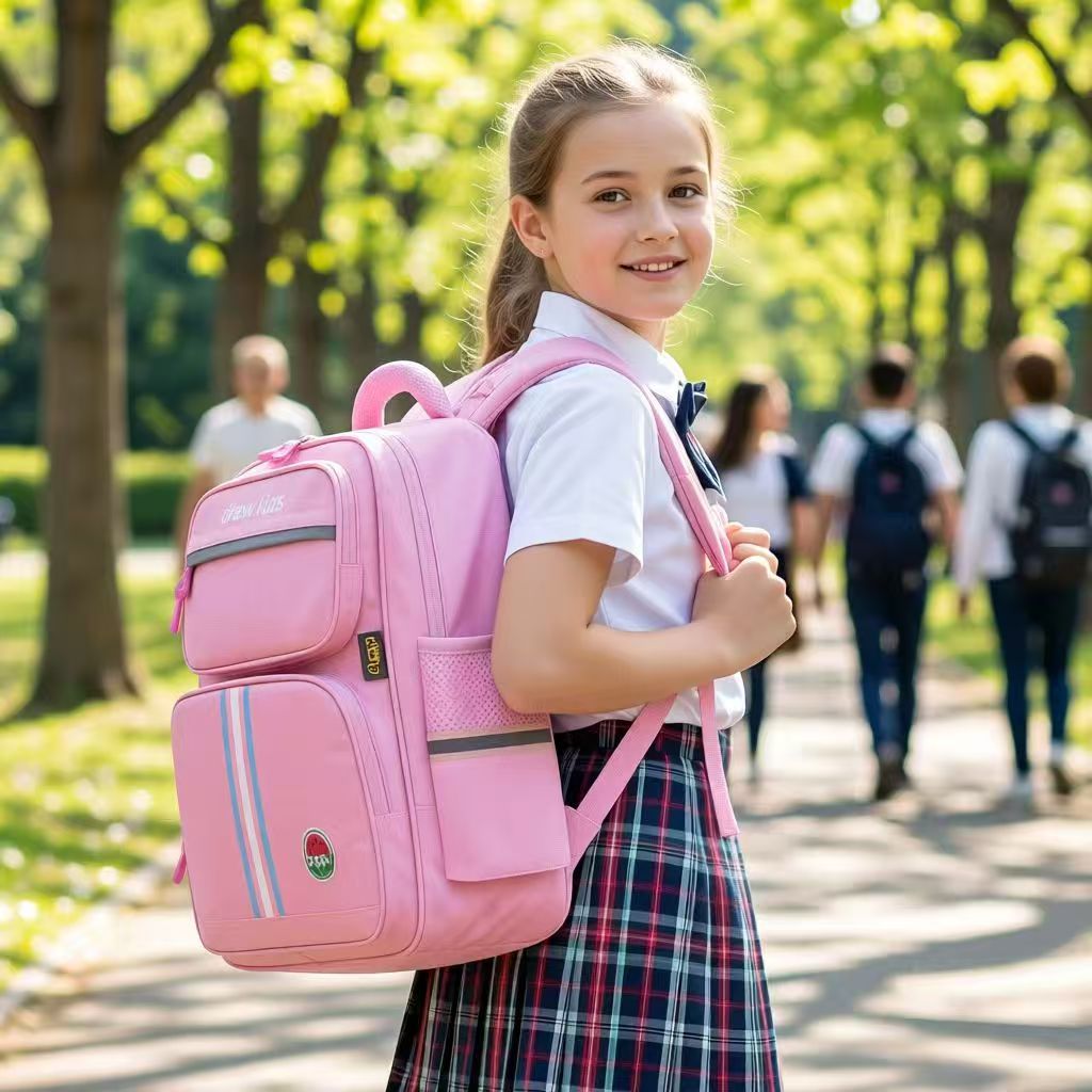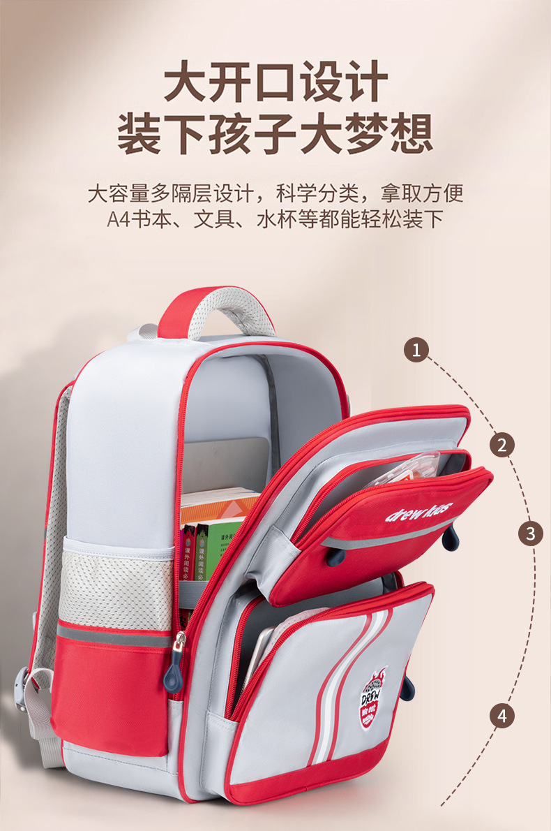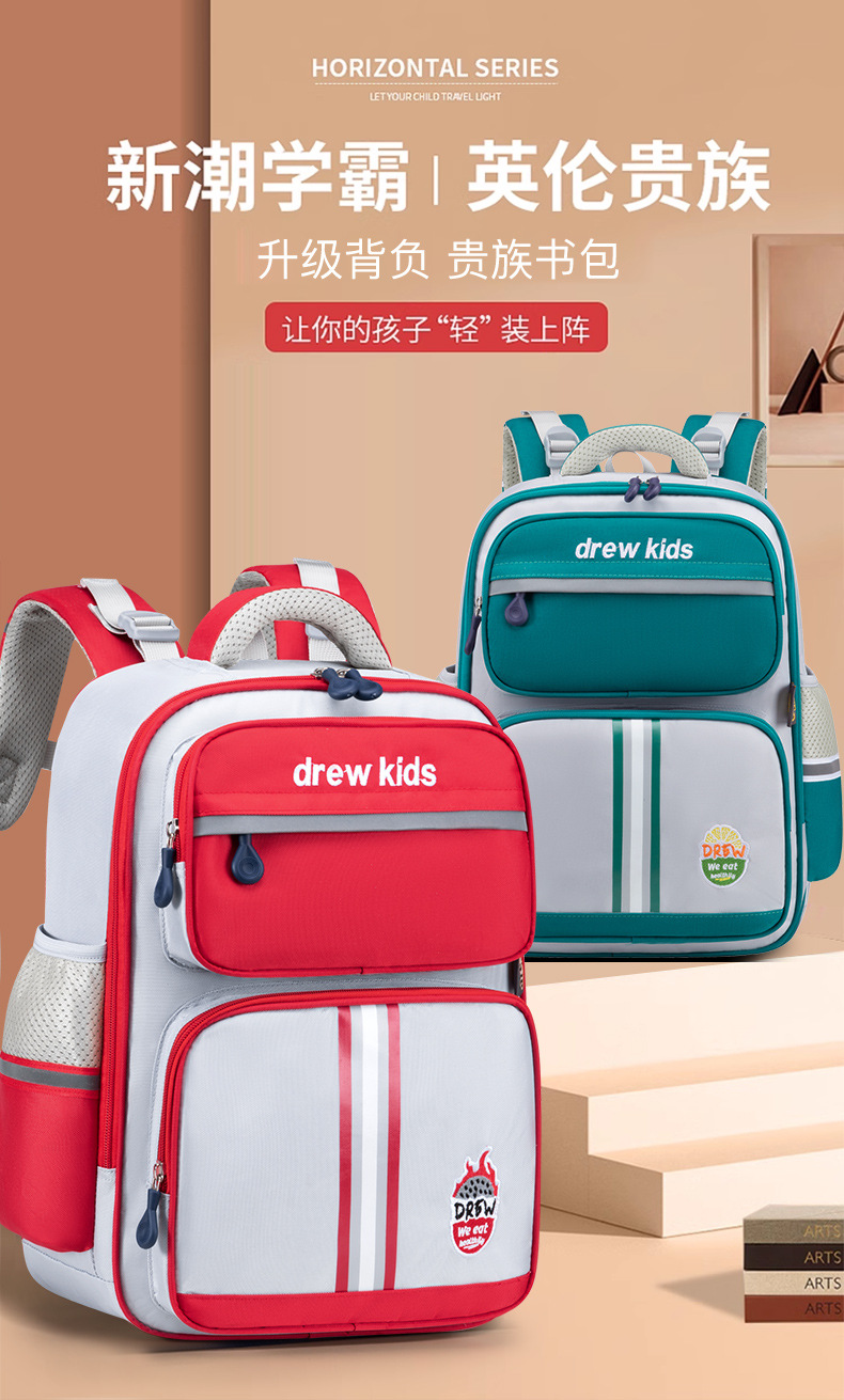 새로운 스타일 초등학교 어린이 영국 1-4 학년 스쿨 백 자수 감속기 척추 보호 소년 소녀를위한 대용량 배낭