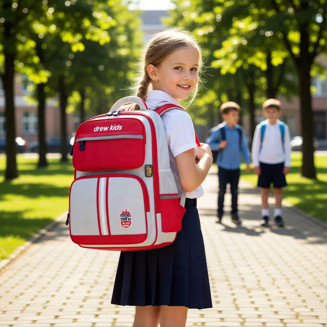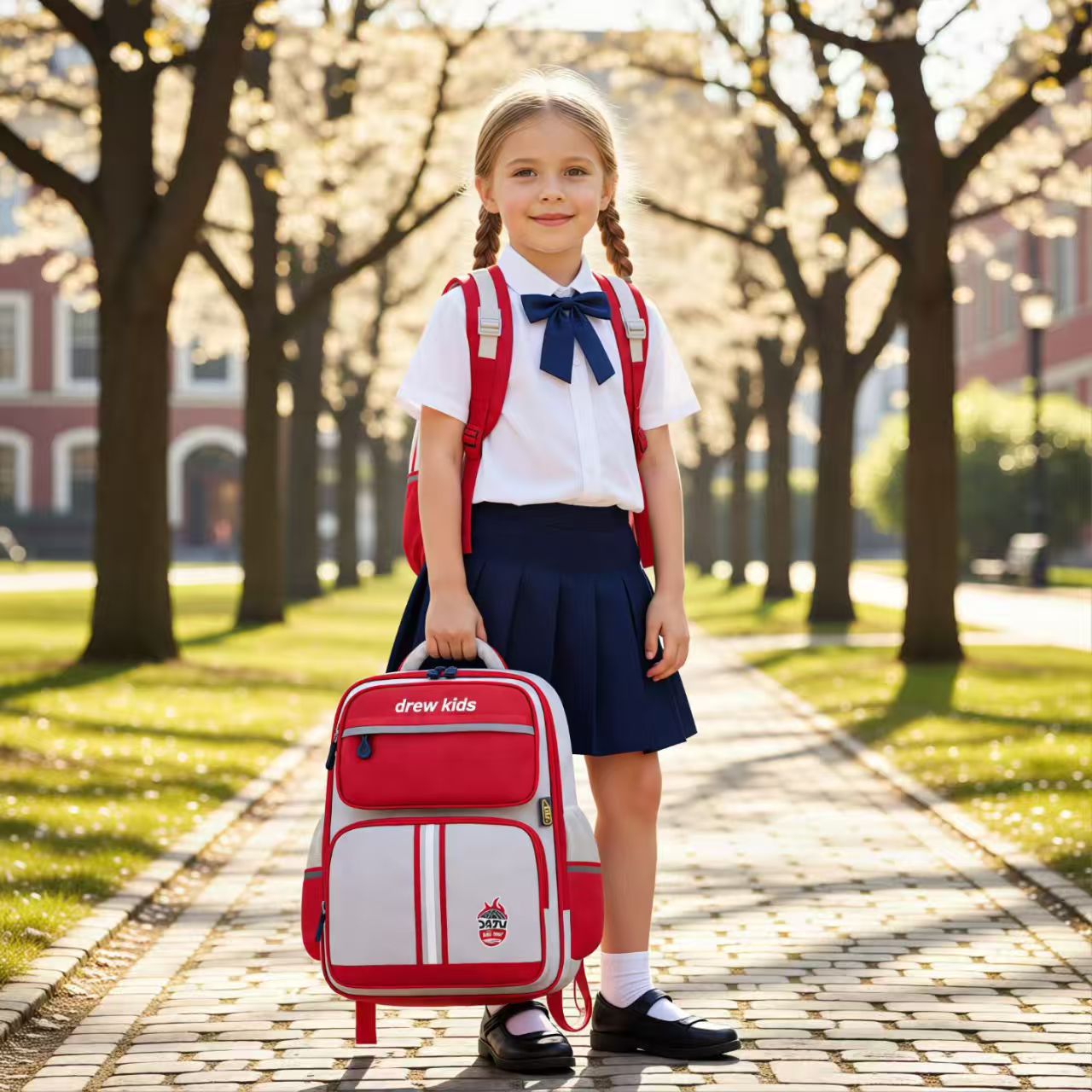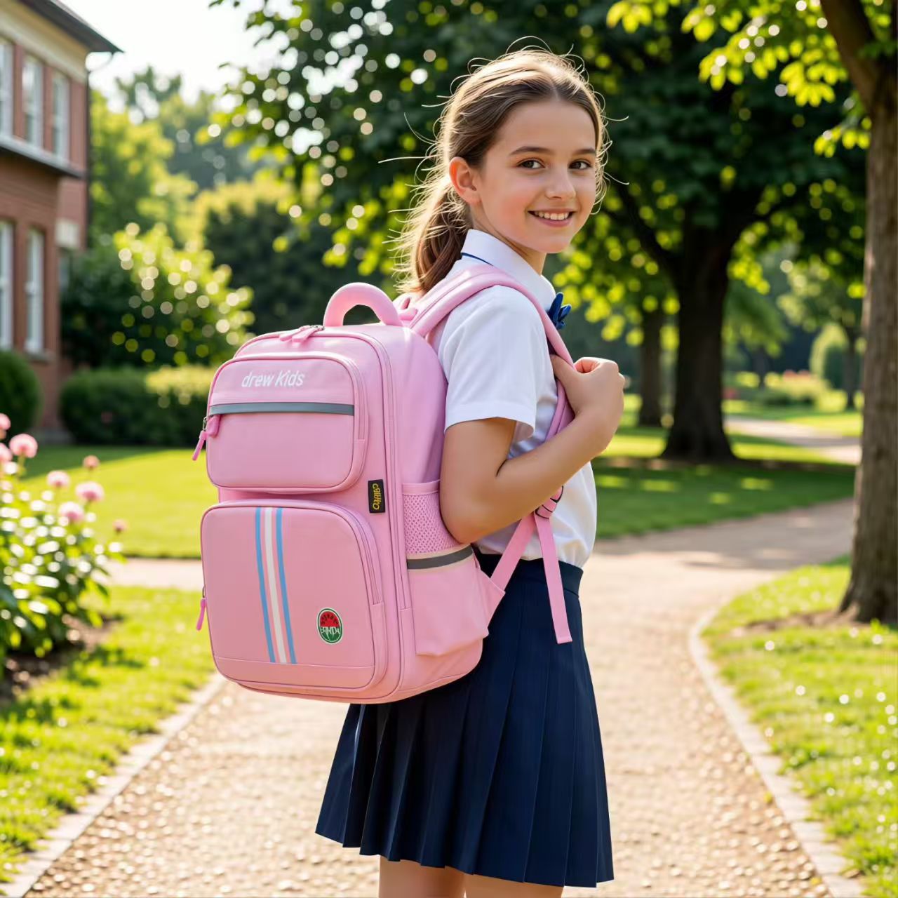 새로운 스타일 초등학교 어린이 영국 1-4 학년 스쿨 백 자수 감속기 척추 보호 소년 소녀를위한 대용량 배낭