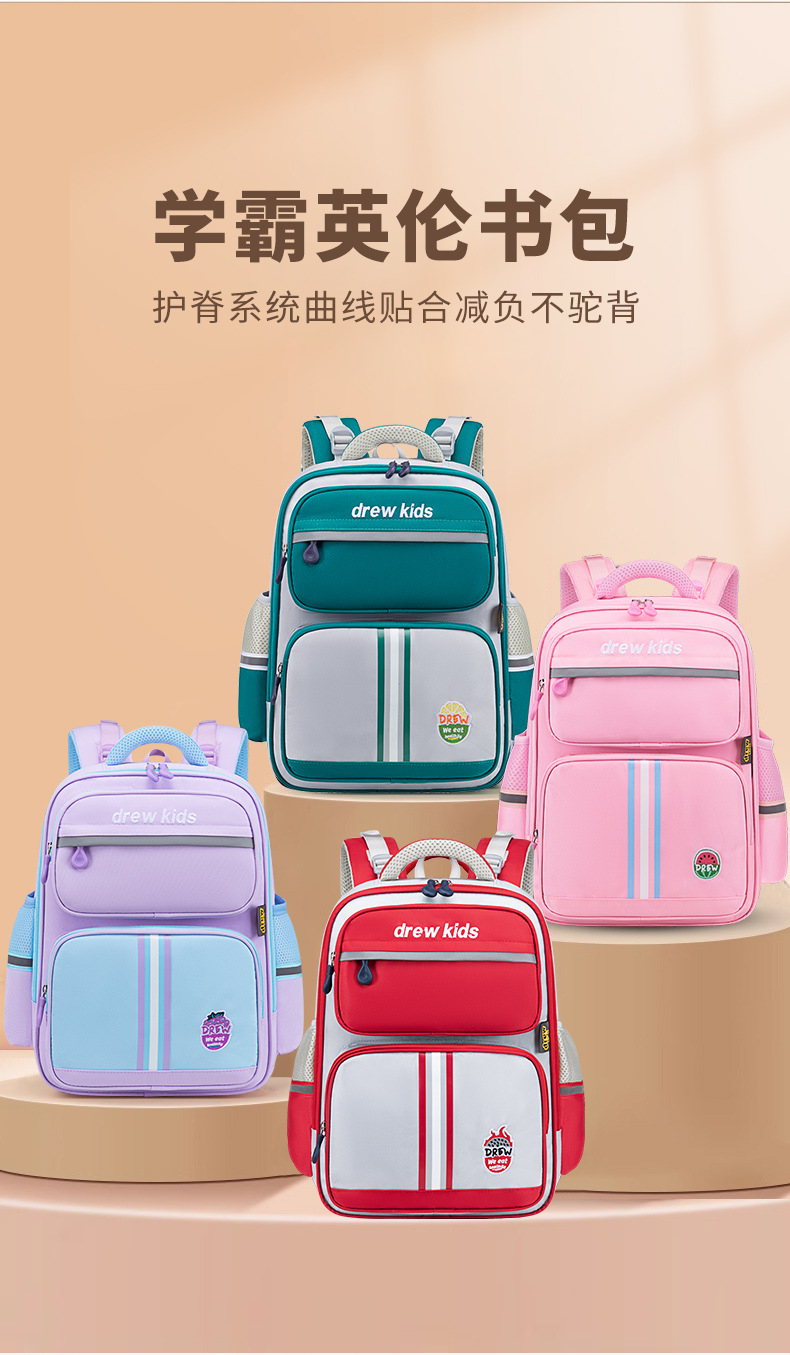 새로운 스타일 초등학교 어린이 영국 1-4 학년 스쿨 백 자수 감속기 척추 보호 소년 소녀를위한 대용량 배낭스토어 가기