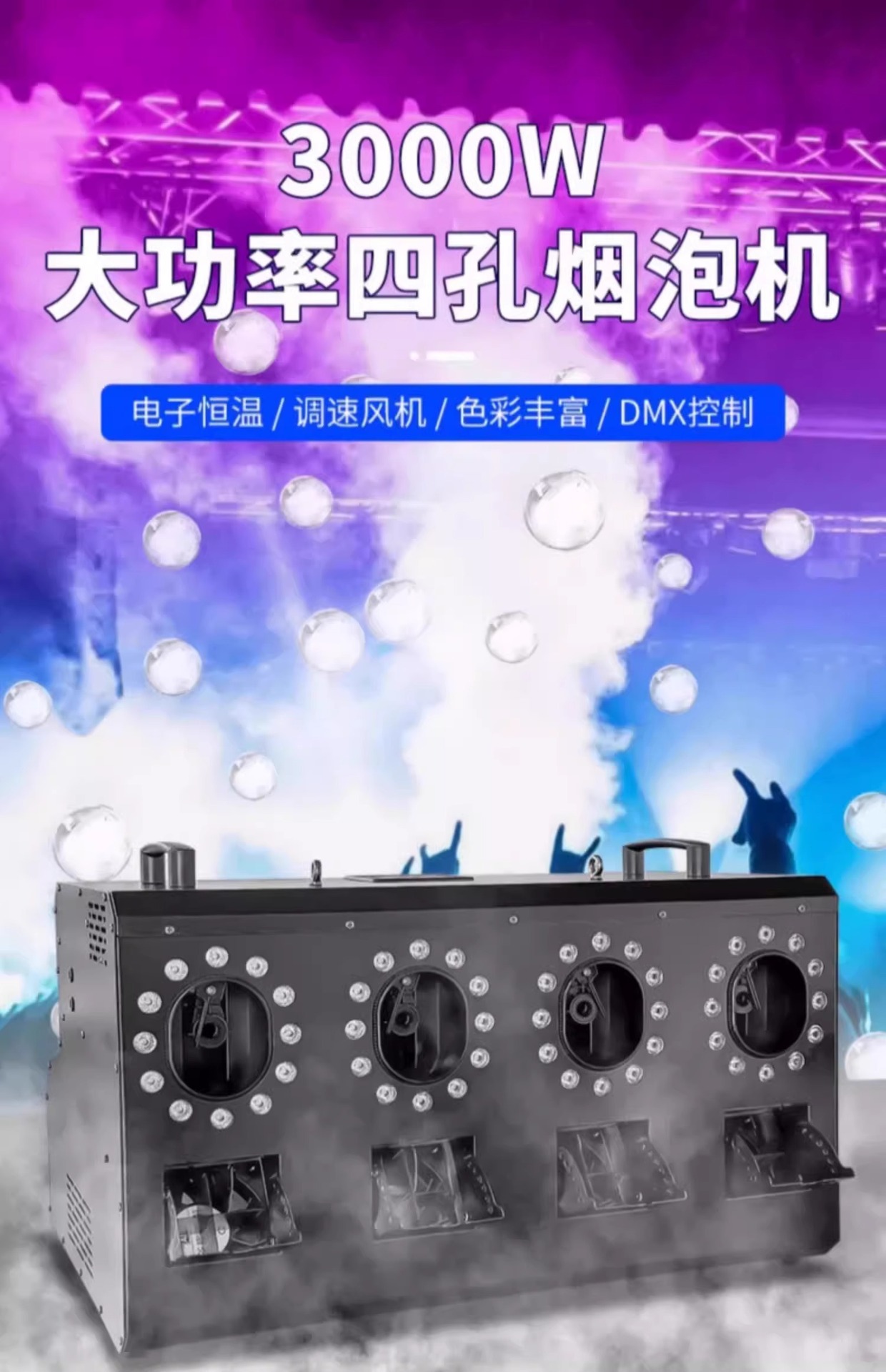 LED 2 륜 연기 거품 기계 4 홀 연기 거품 통합 자동 기계 바 무대 결혼식 특수 성능 소품