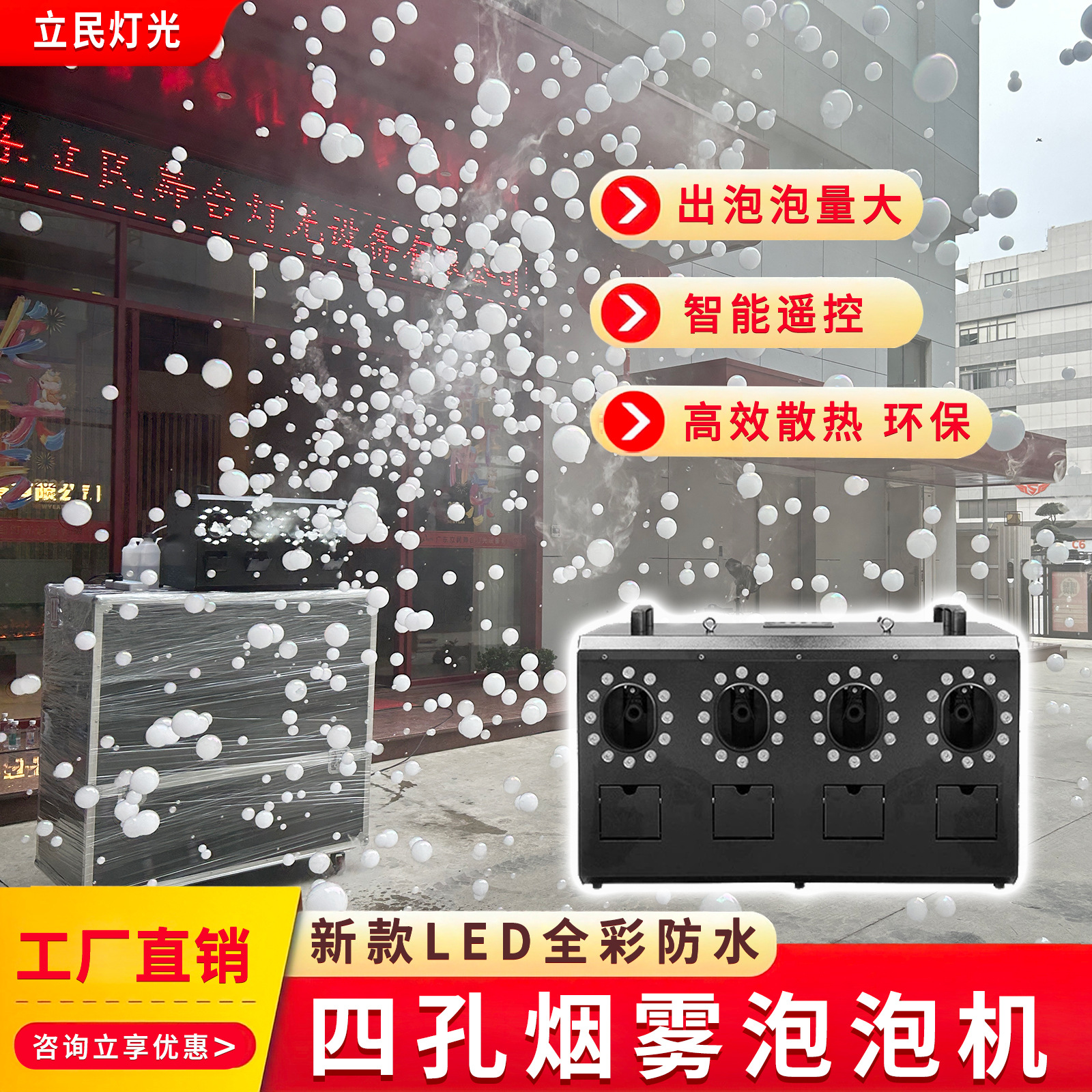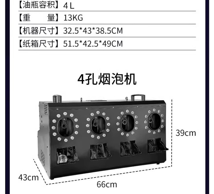 LED 2 륜 연기 거품 기계 4 홀 연기 거품 통합 자동 기계 바 무대 결혼식 특수 성능 소품스토어 가기