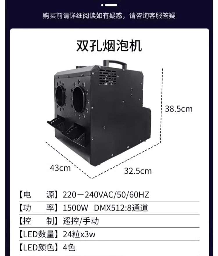 • 【신제품】 듀얼 홀 LED 스모그 버블 머신 + 소모품 4병