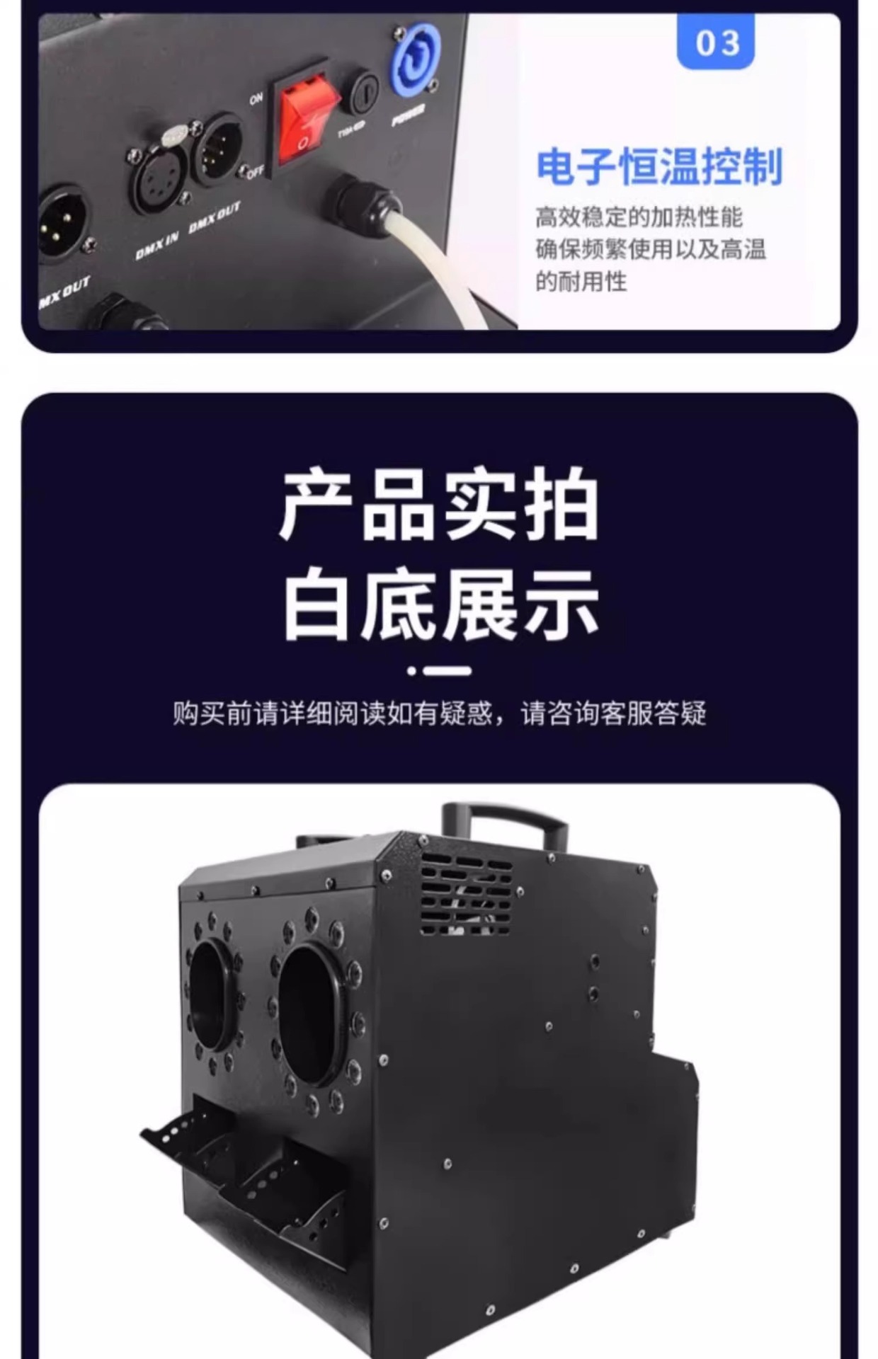 • 【신제품 방수형】 듀얼 홀 LED 스모그 버블 머신 플라스틱 방수 모델 + 소모품 4병