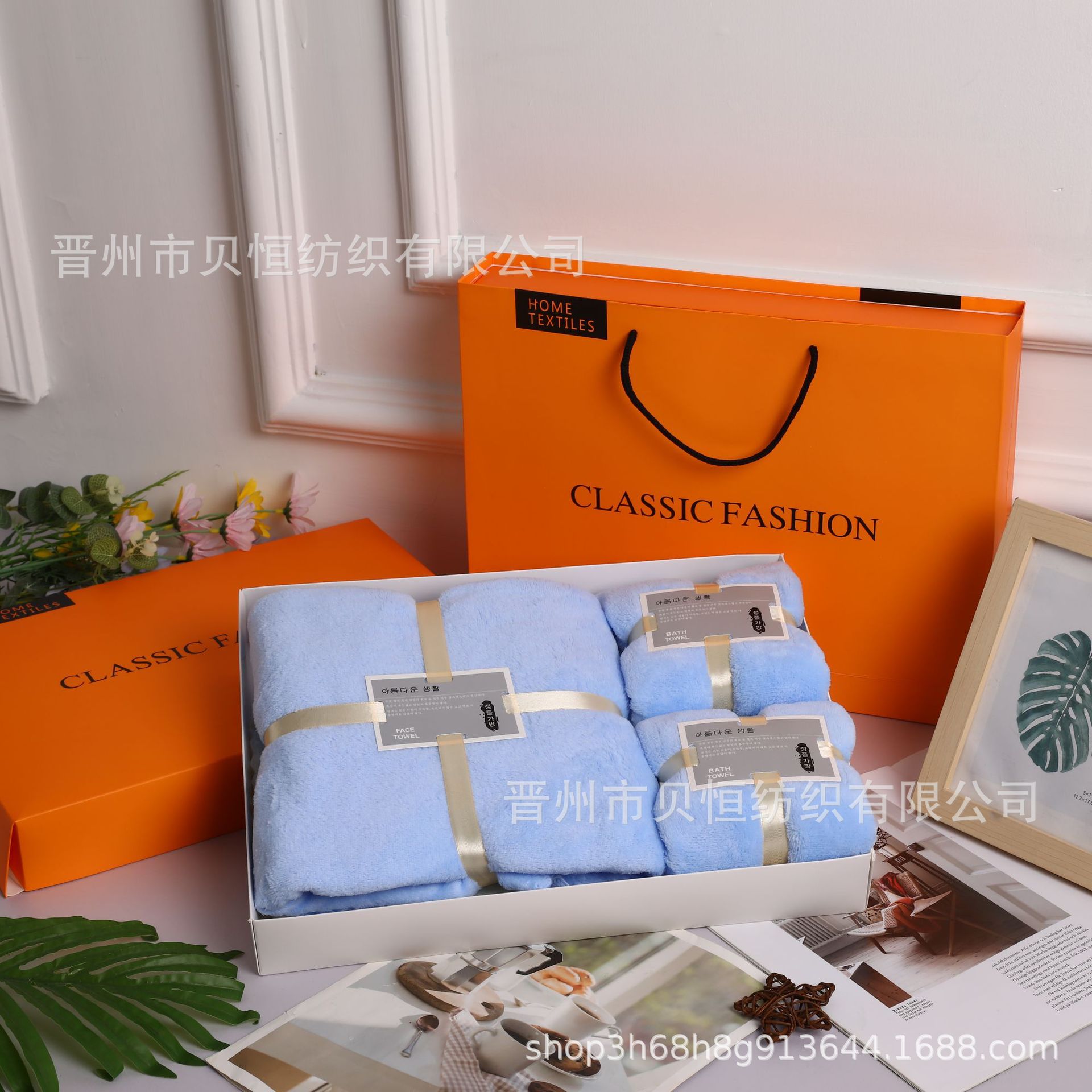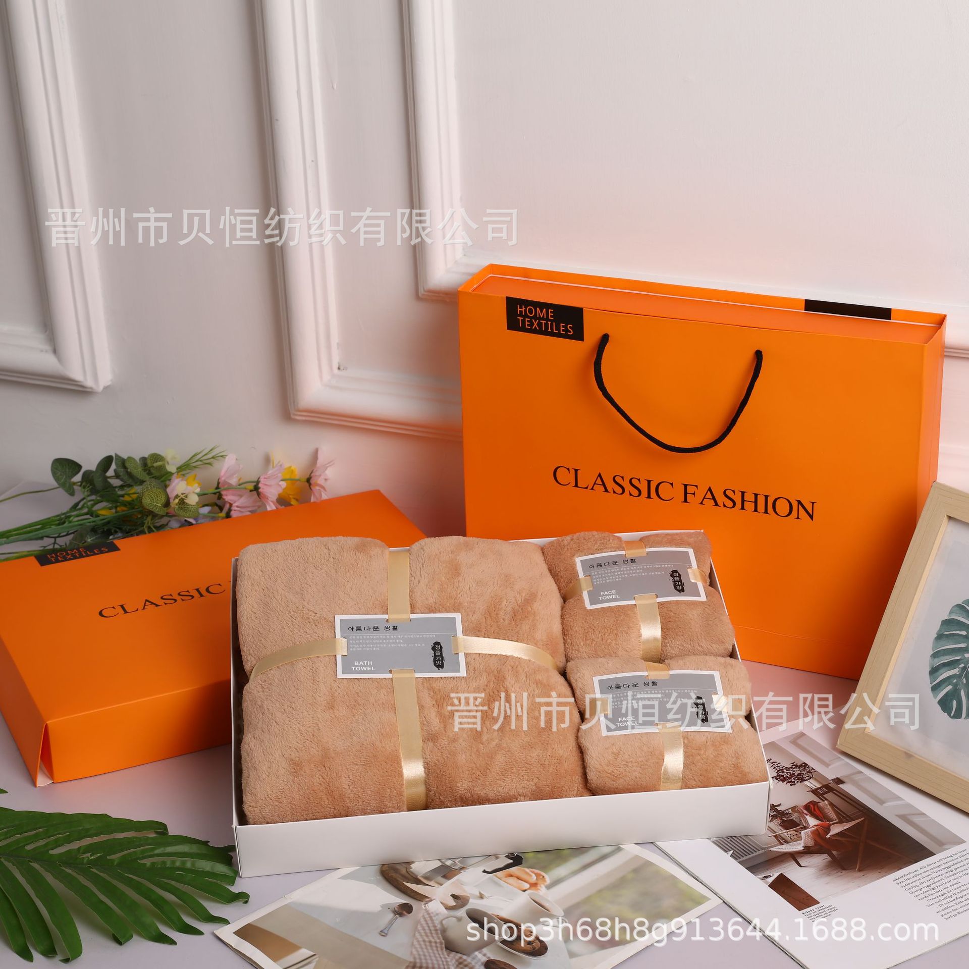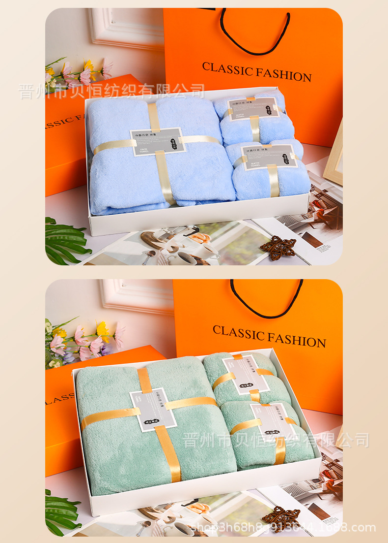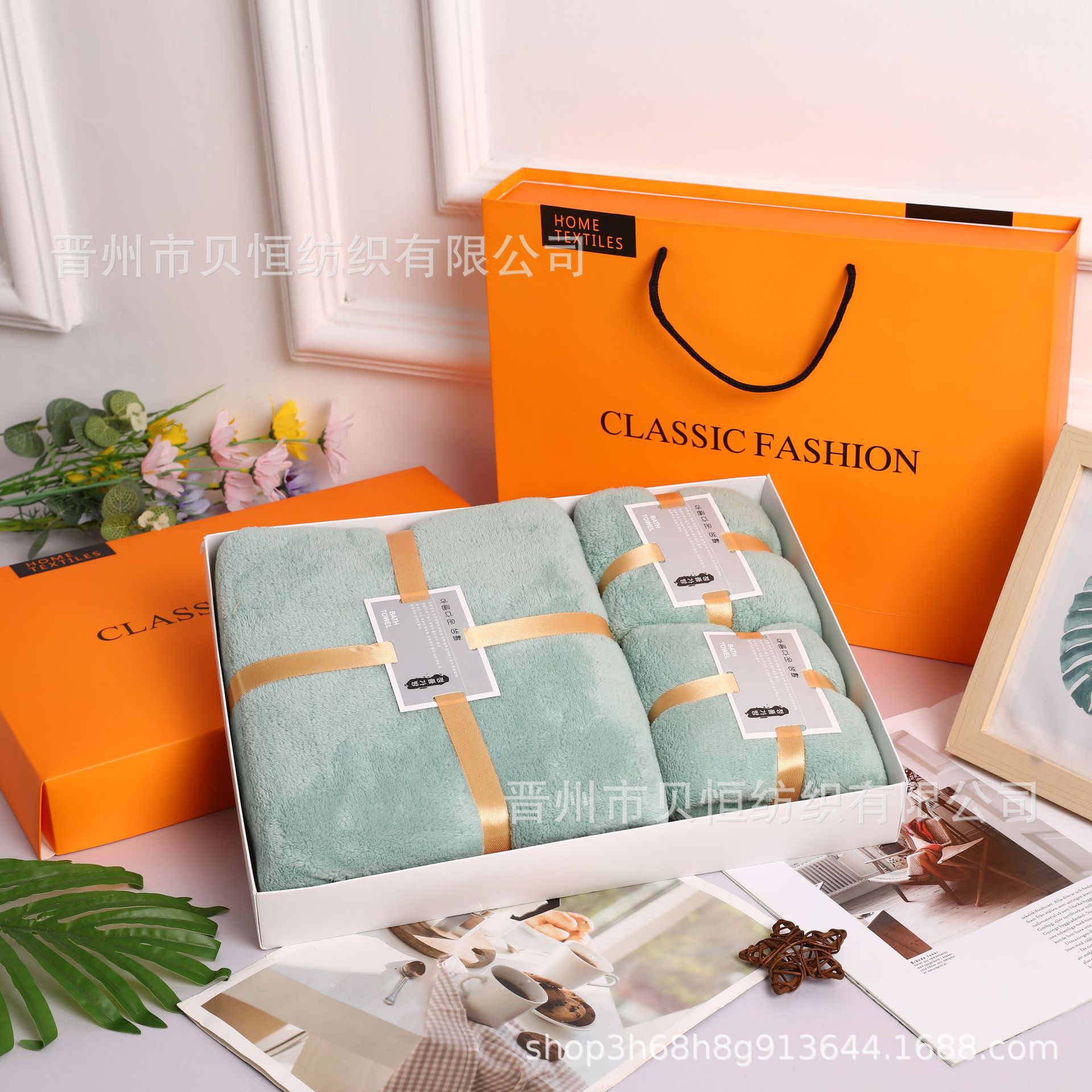 산호 양털 수건 목욕 수건 세 조각 선물 상자 큰 흡수성 목욕 타월 비즈니스 활동 선물 직원 복지 선물스토어 가기