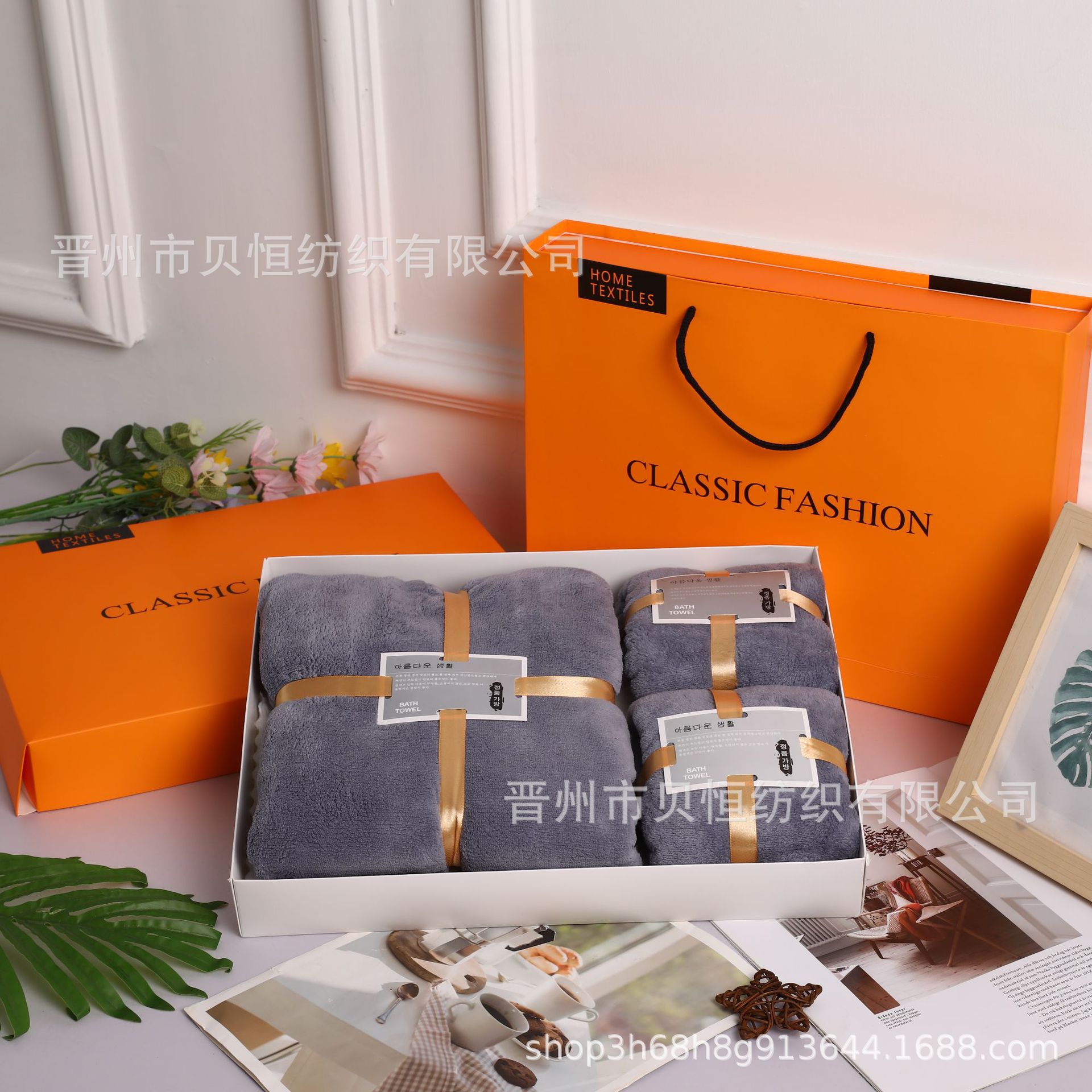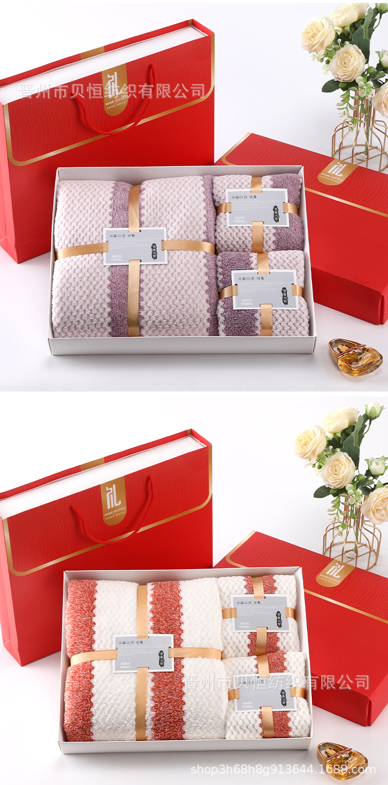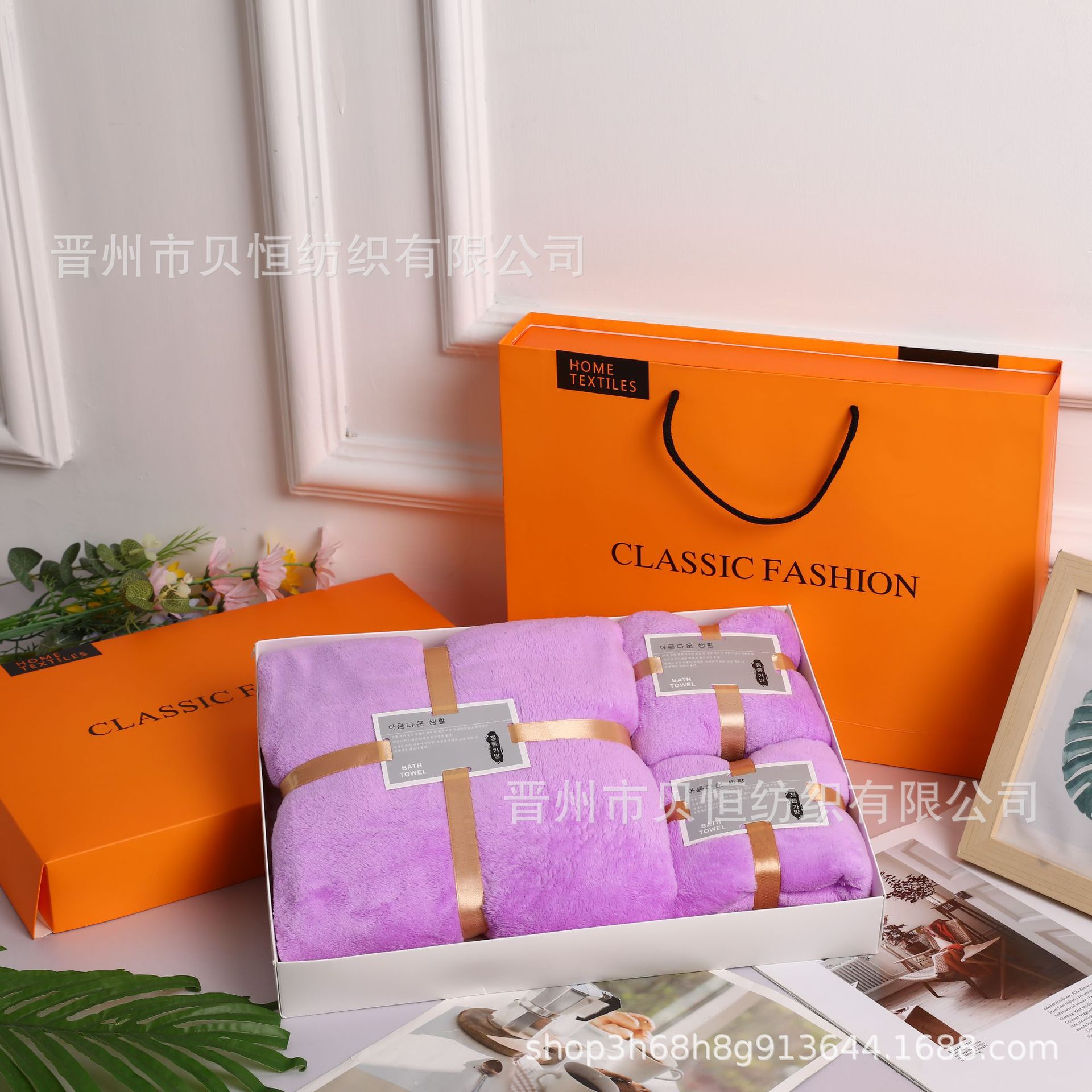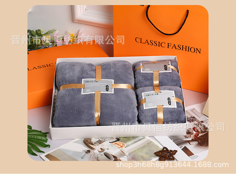 산호 양털 수건 목욕 수건 세 조각 선물 상자 큰 흡수성 목욕 타월 비즈니스 활동 선물 직원 복지 선물스토어 가기