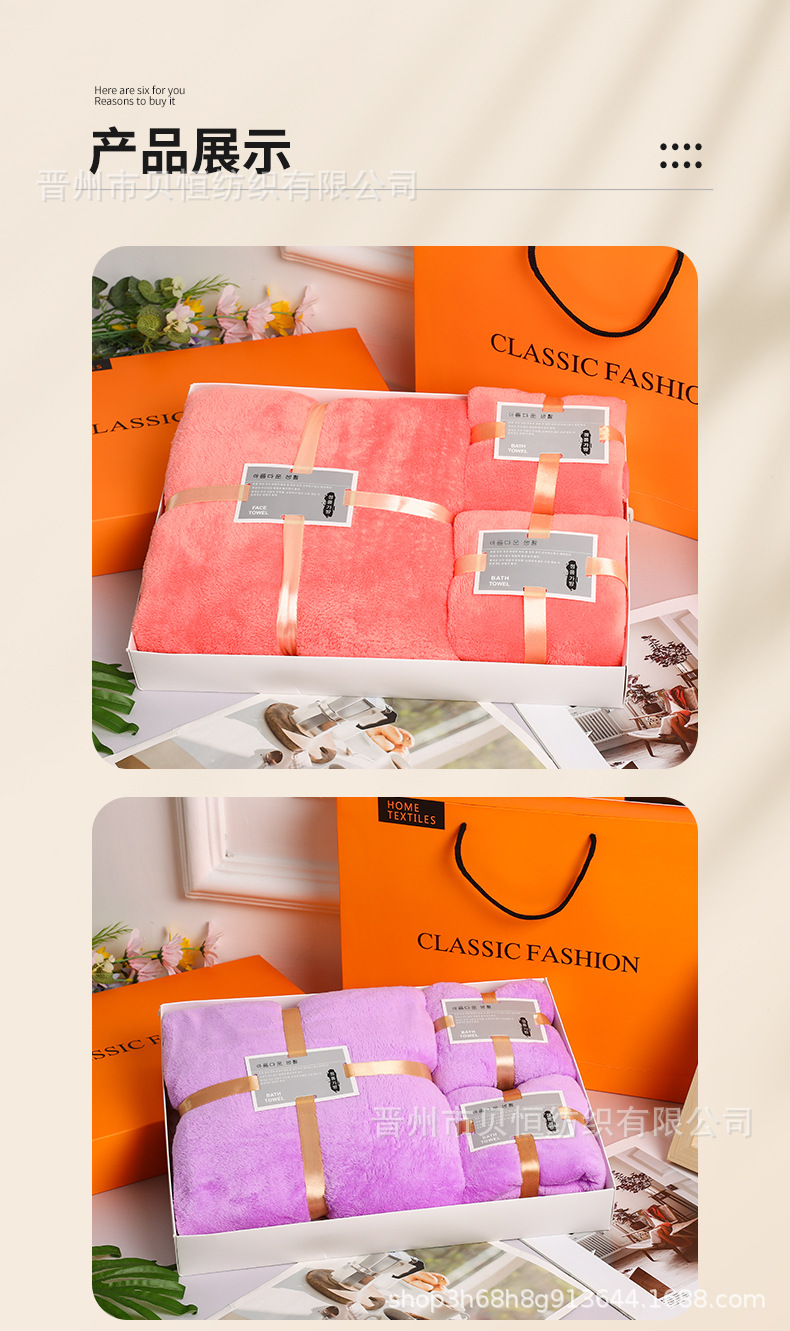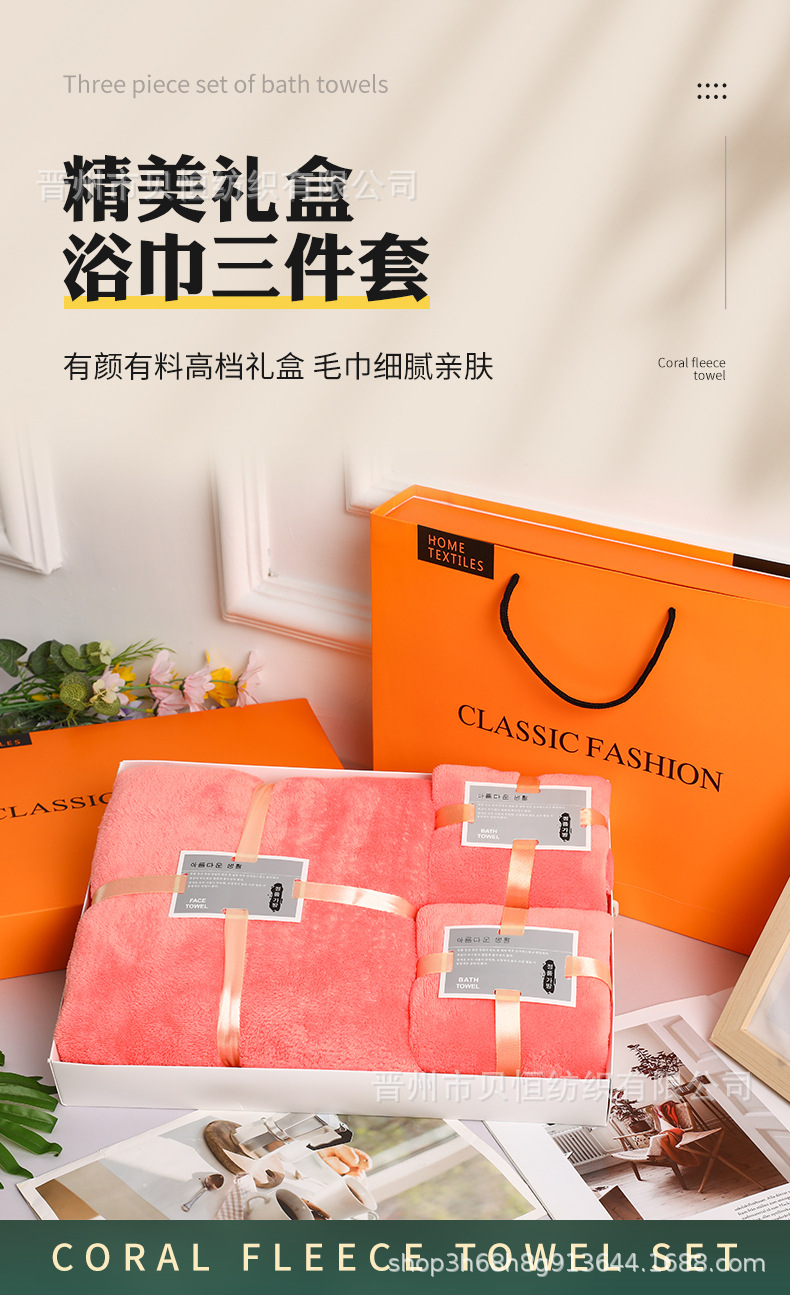 산호 양털 수건 목욕 수건 세 조각 선물 상자 큰 흡수성 목욕 타월 비즈니스 활동 선물 직원 복지 선물