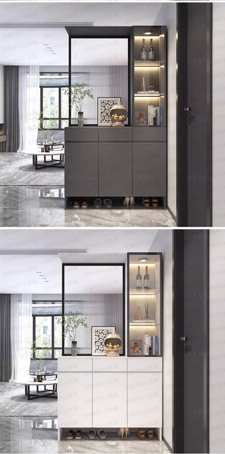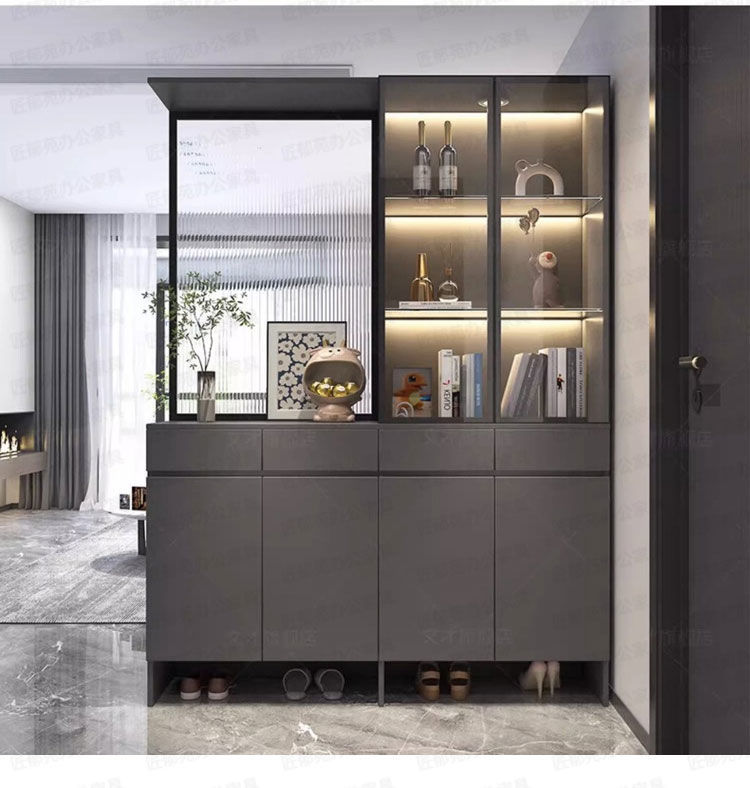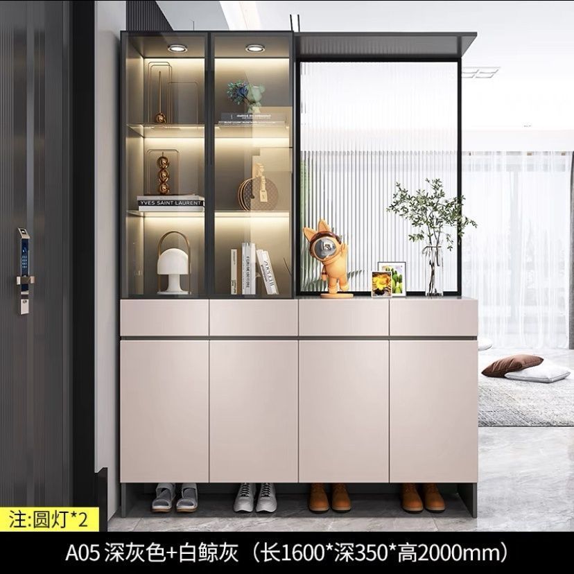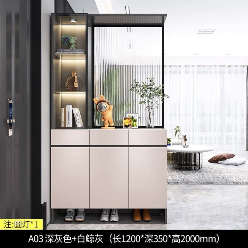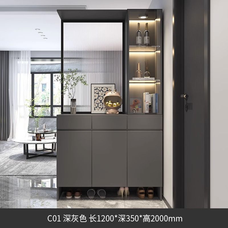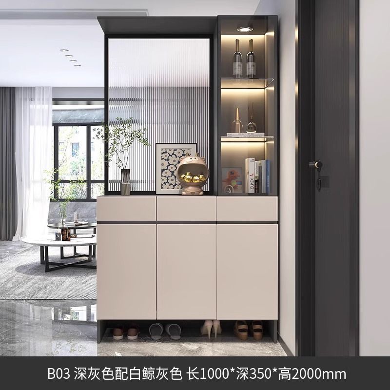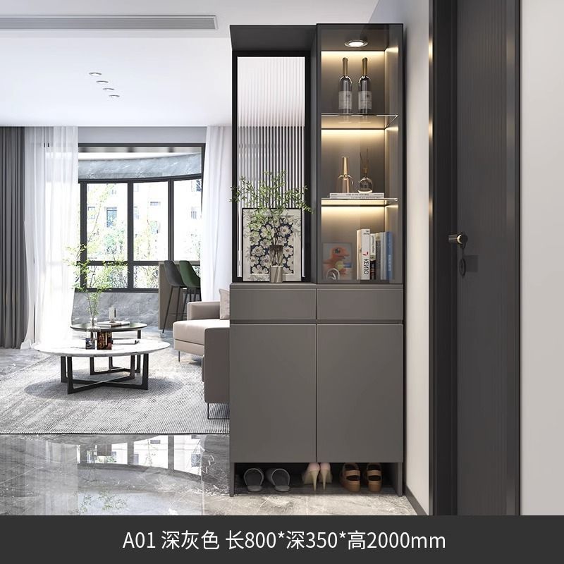 입구 캐비닛 신발 캐비닛 통합 빛 고급 창홍 유리 스크린 캐비닛 현대 간단한 거실 파티션 캐비닛 와인 캐비닛