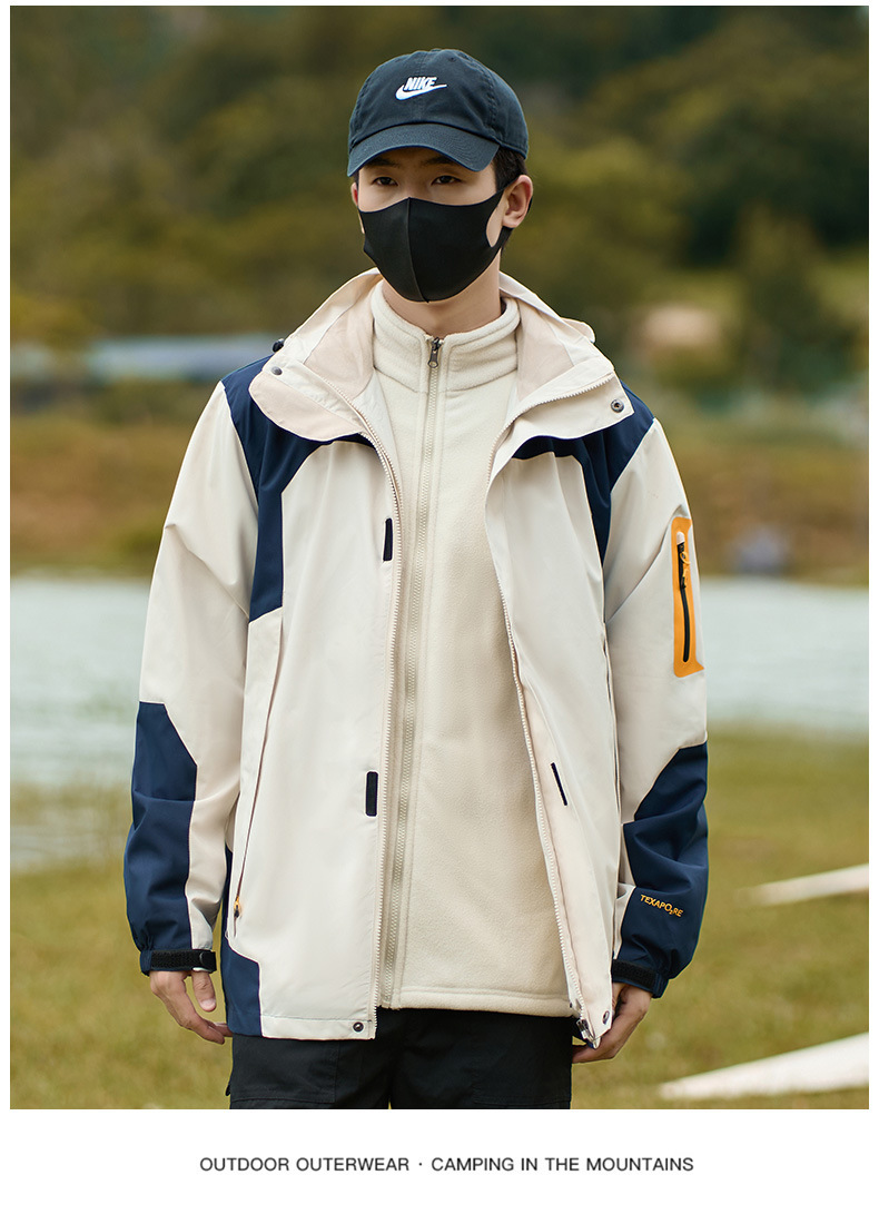 가을과 겨울 새로운 커플 야외 충전 재킷 방풍 캠핑 재킷 티베트 하이킹 등반 세트 작업 세트 그룹