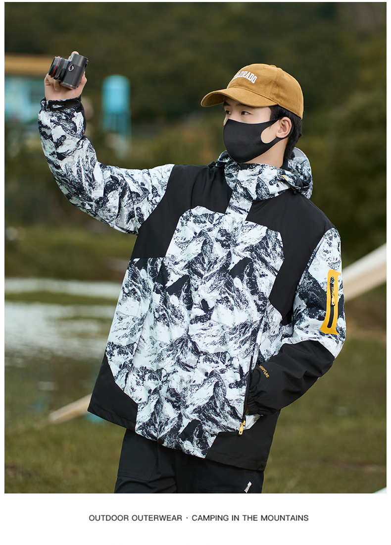 가을과 겨울 새로운 커플 야외 충전 재킷 방풍 캠핑 재킷 티베트 하이킹 등반 세트 작업 세트 그룹스토어 가기