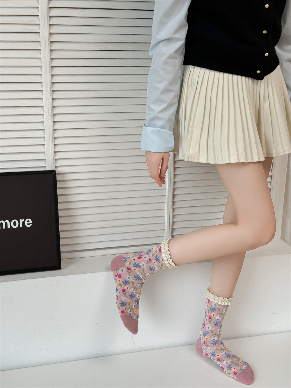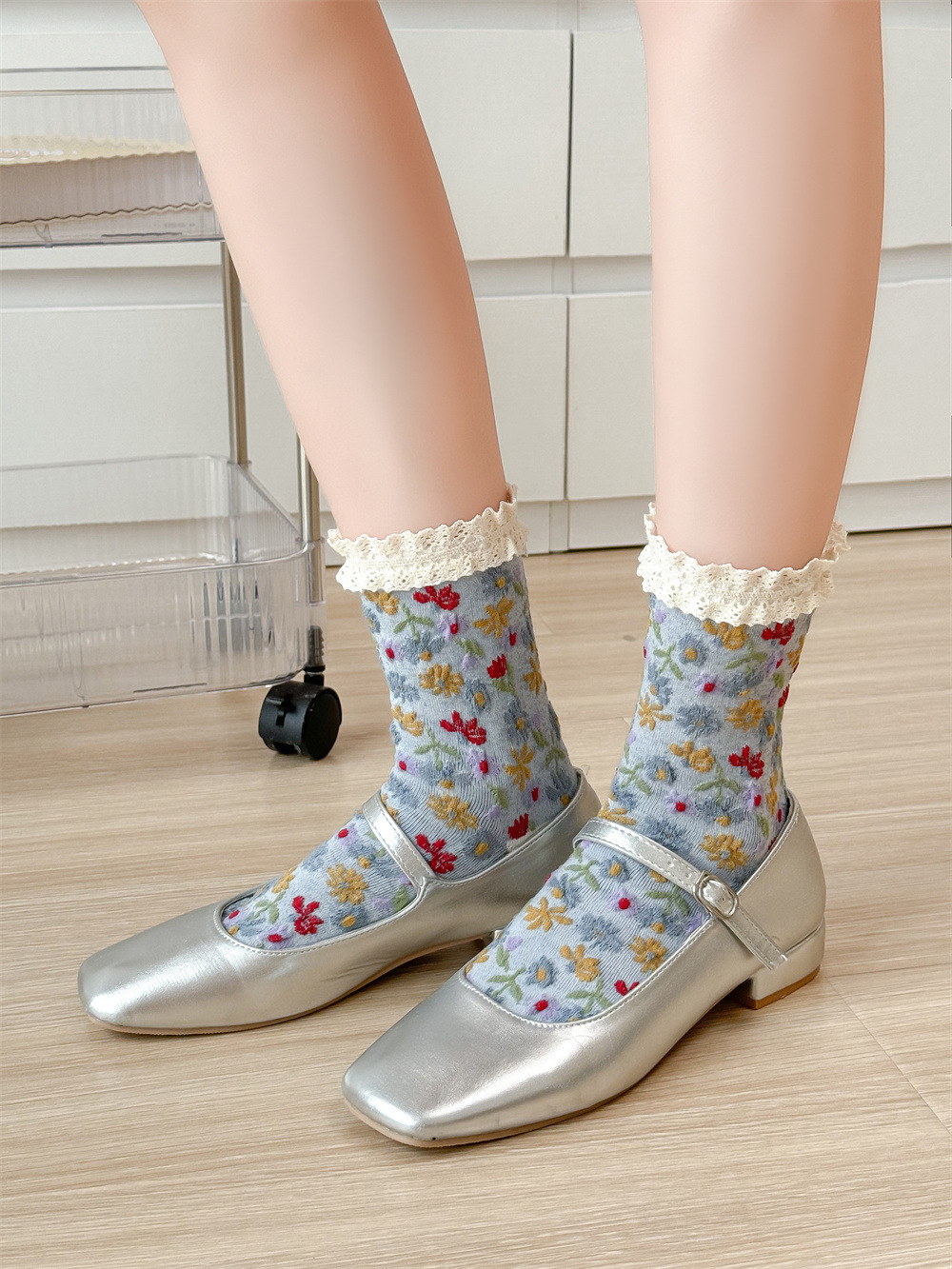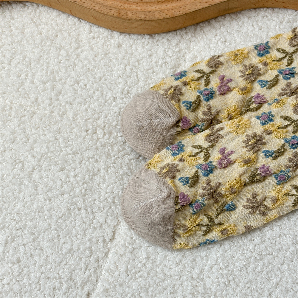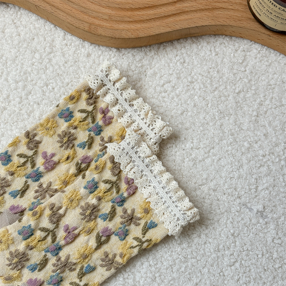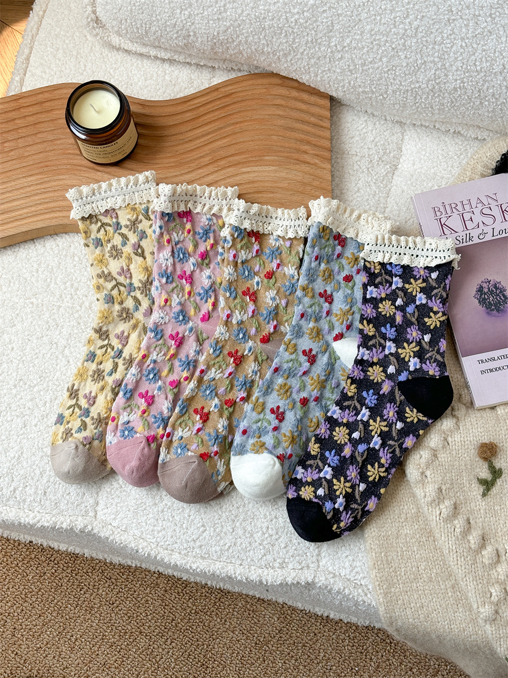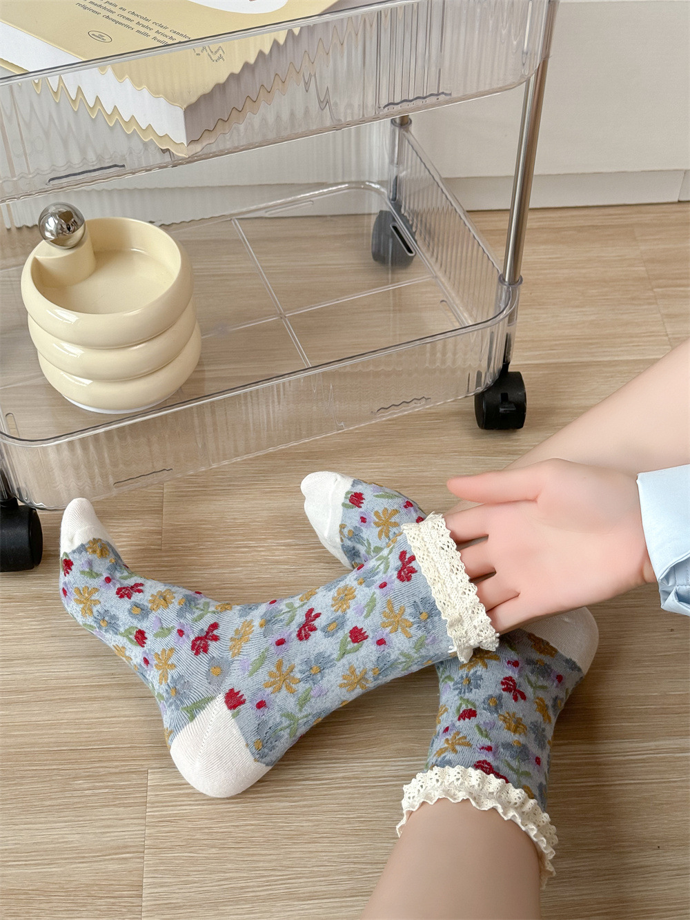 가을과 겨울 새로운 일본 스타일 레이스 빈티지 3 차원 꽃 중간 튜브 여성용 양말 패션 면 스택 양말스토어 가기