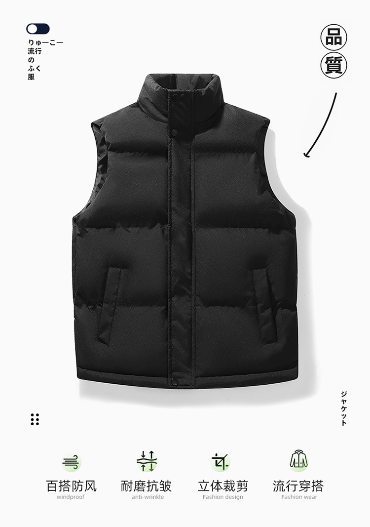겨울 조끼 다용도 스탠드 칼라 남성용 단색 보온 기모 조끼 민소매 면 조끼 트렌디 커플 아우터스토어 가기
