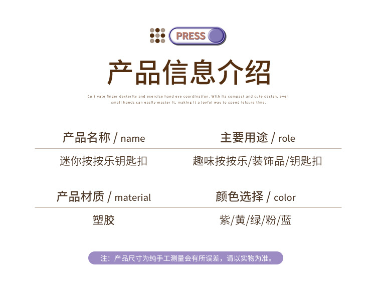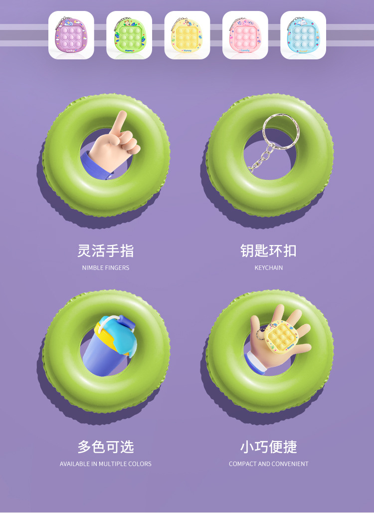 국경 간 어린이 미니 버블 음악 감압 장난감 창조적 인 재미 프레스 감압 설치류 개척자 키 체인 펜던트