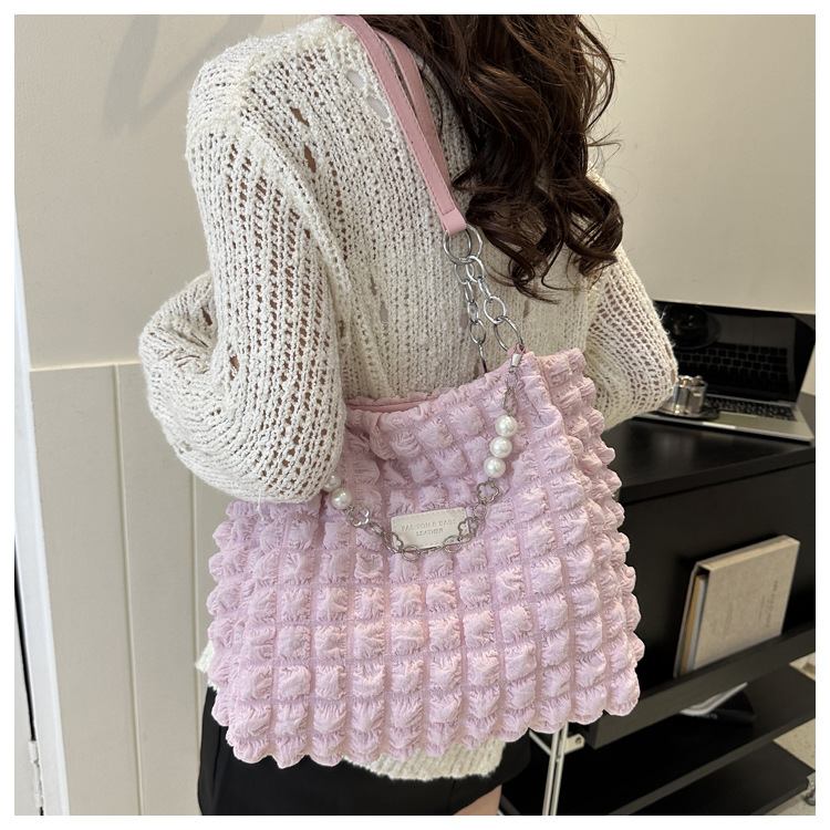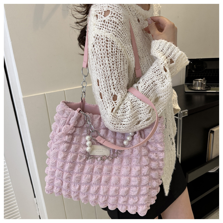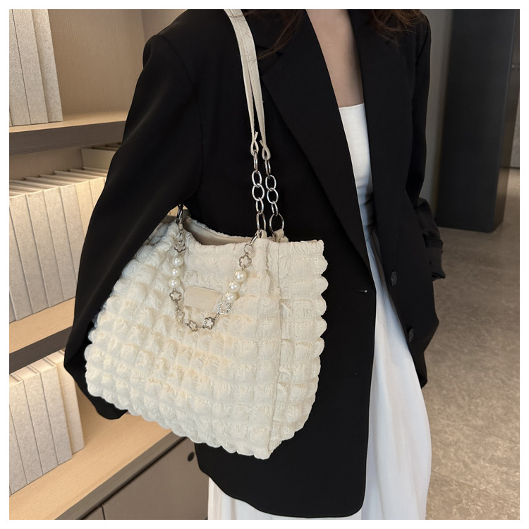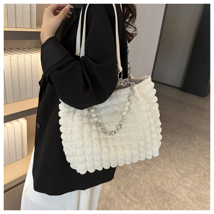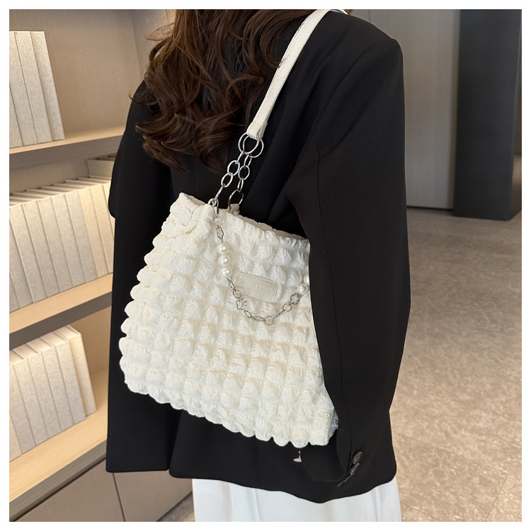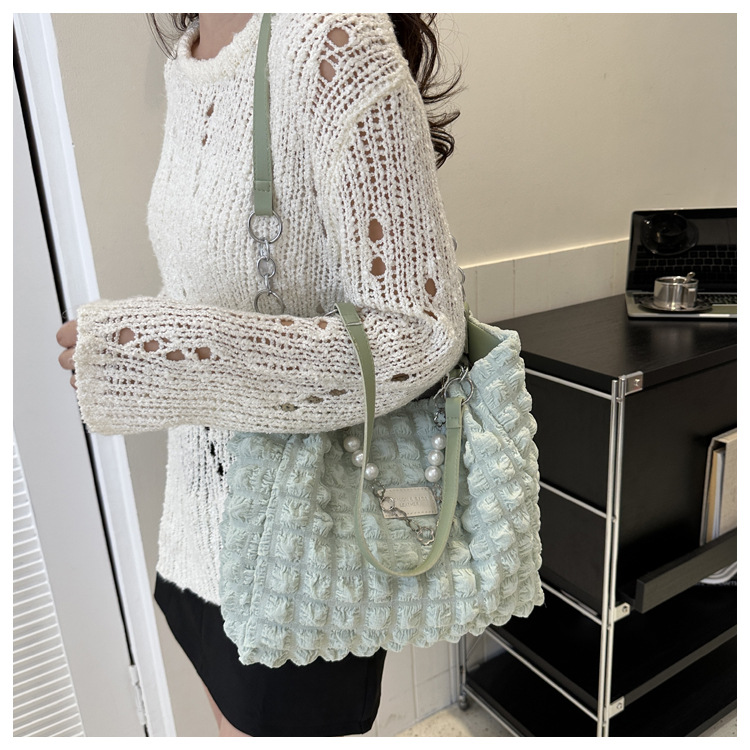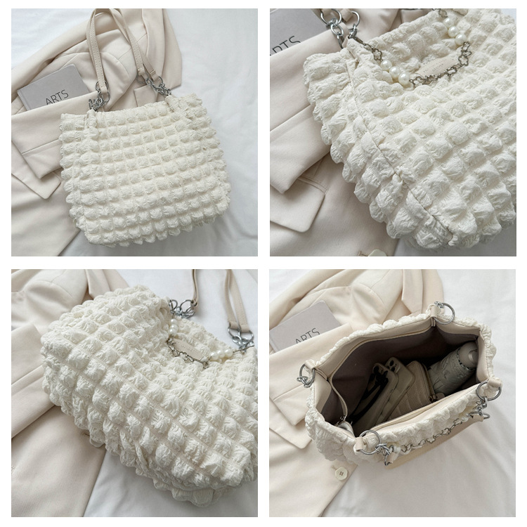 부드러운 패션 간단한 주름 어깨 가방 여성의 2024 여름 새로운 세련된 언더암 가방 통근 토트 백 트렌디스토어 가기