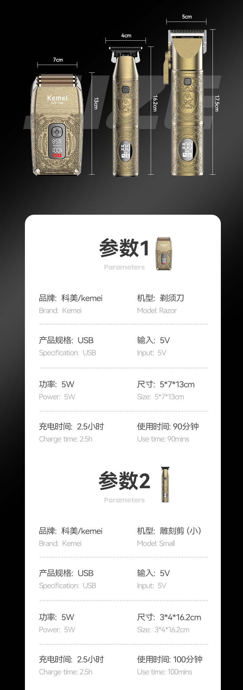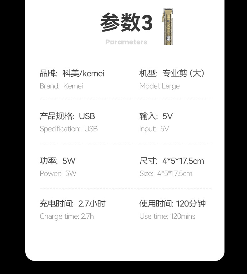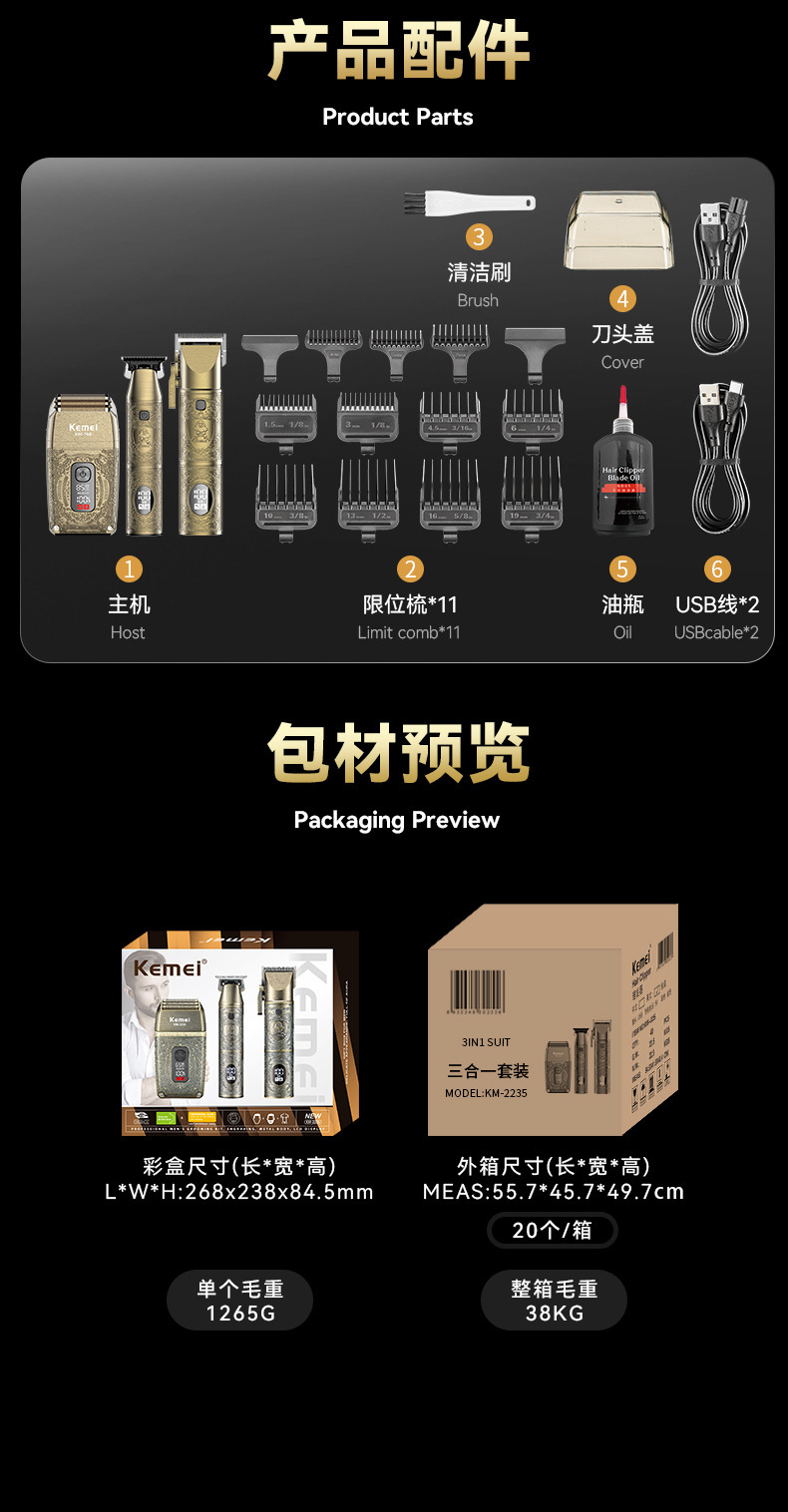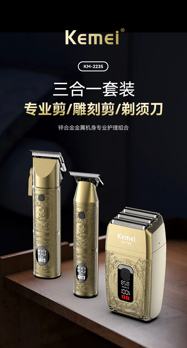 科美/KEMEI发廊理发剃须套装mini剃须刀数显专业理发器推子礼盒款