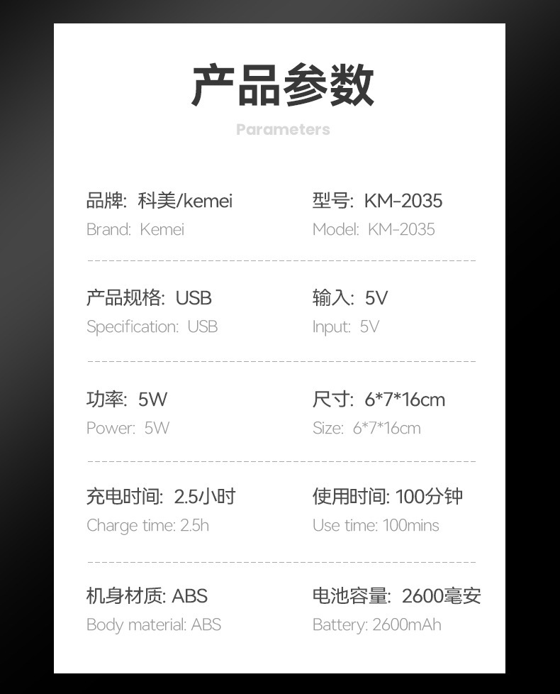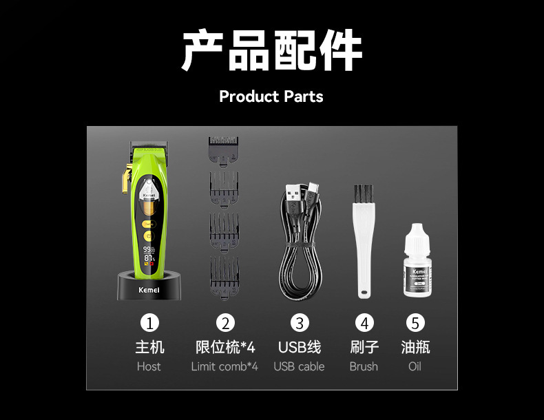 科美/KEMEI跨境高转速雕刻剪发廊专业理发剪数显理发器家用电推剪