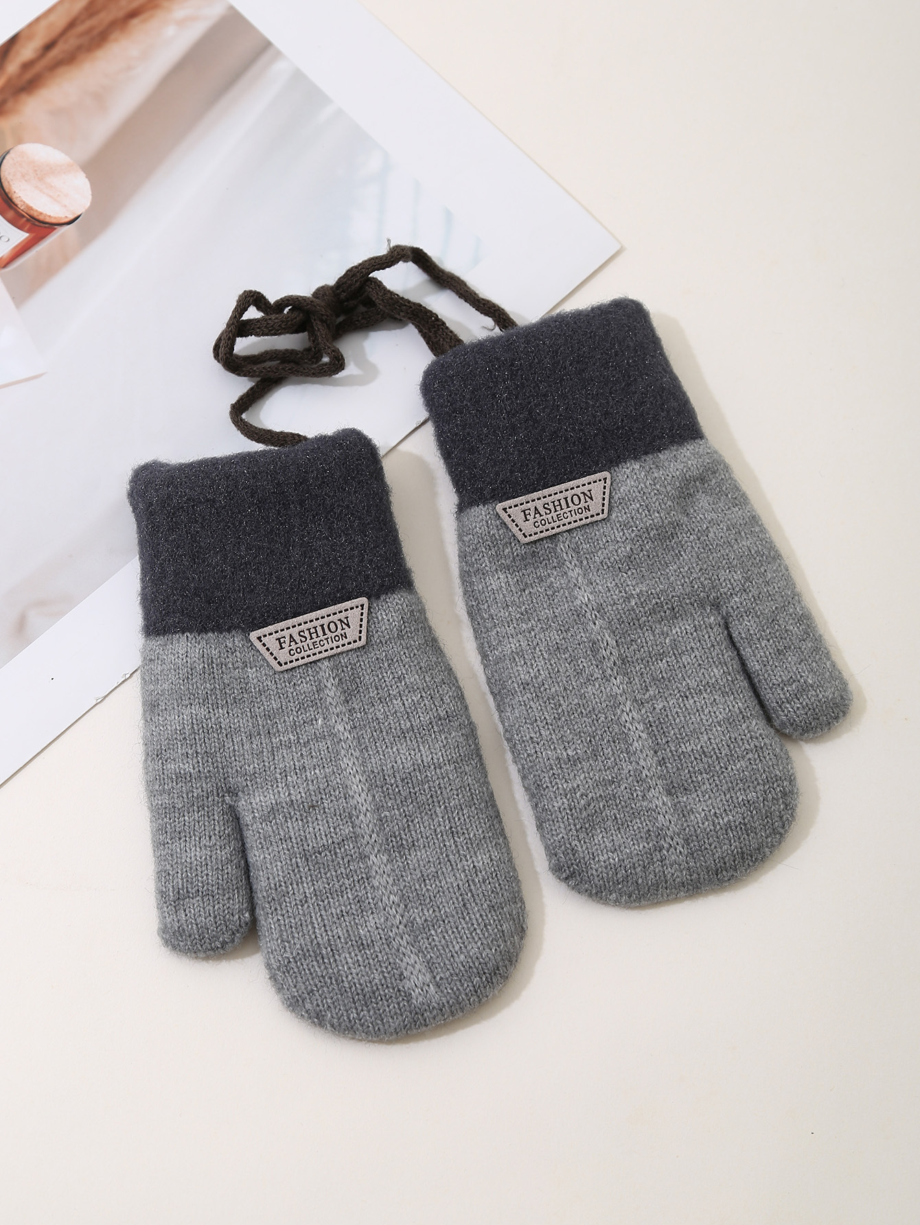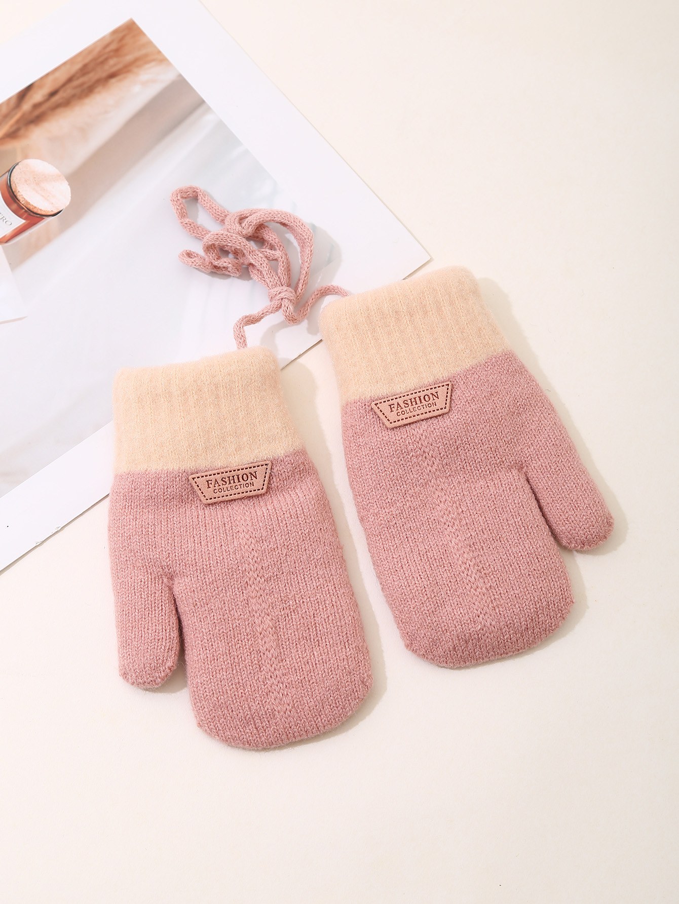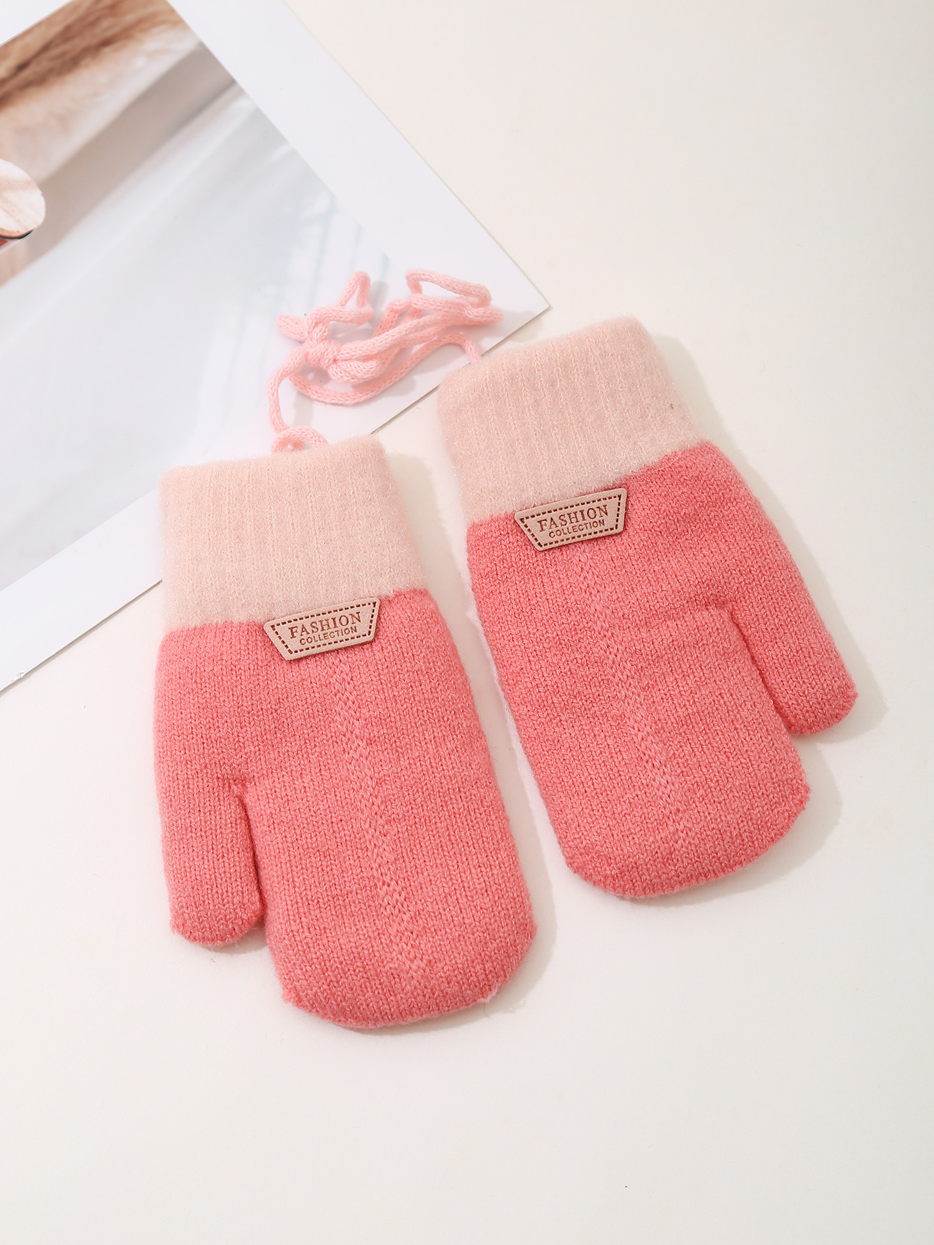 어린이 장갑 목에 걸려있는 가을과 겨울 기모 두꺼운 니트 장갑 소녀 야외 차가운 따뜻한 어린이 장갑 도매