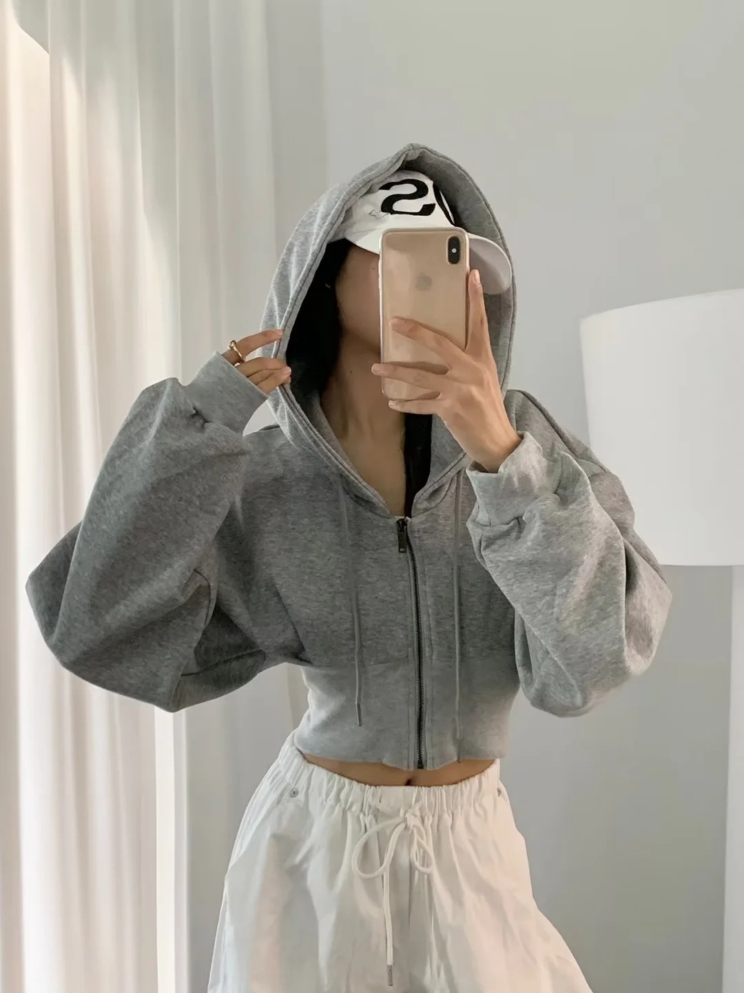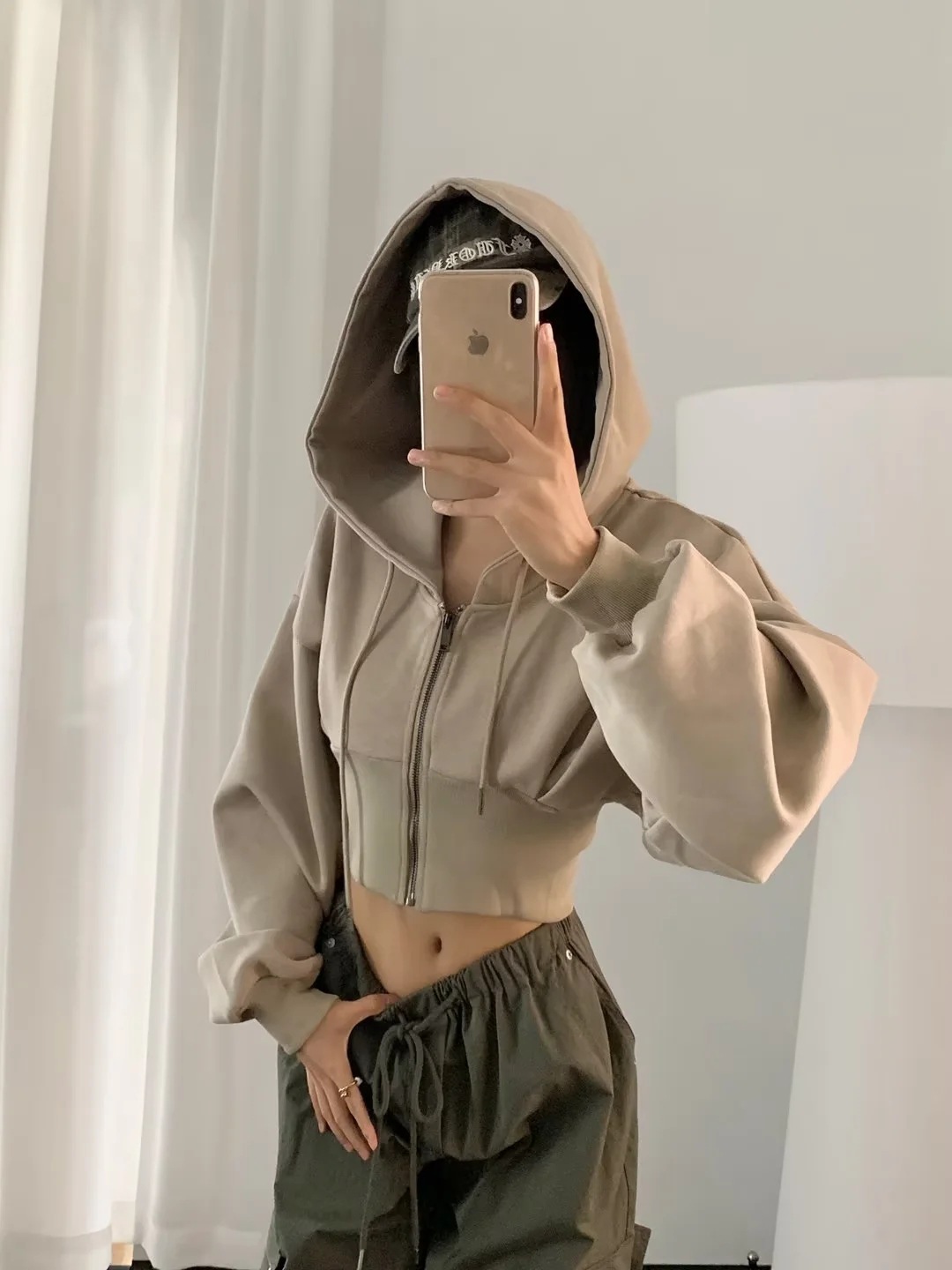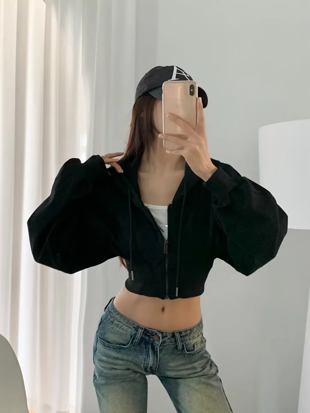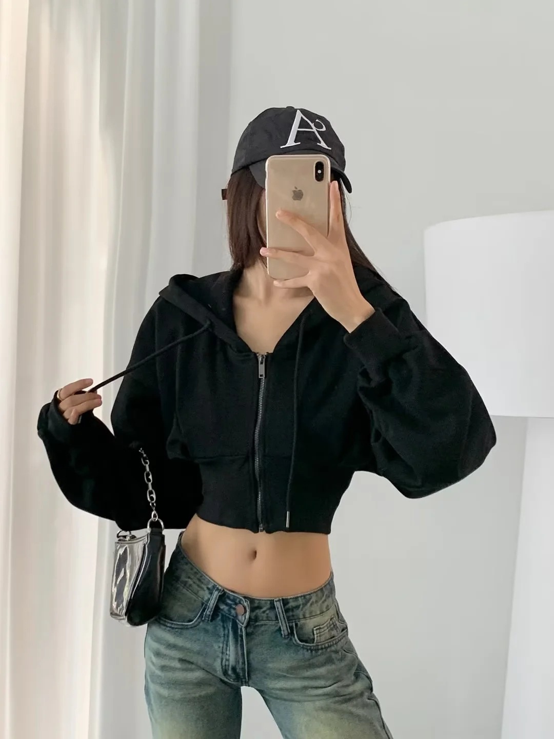 2024 년 초가을 뜨거운 소녀 짧은 타이트 허리 배꼽 느슨한 후드 스웨터 여자 올 매치 하이 웨이스트 지퍼 카디건 재킷스토어 가기