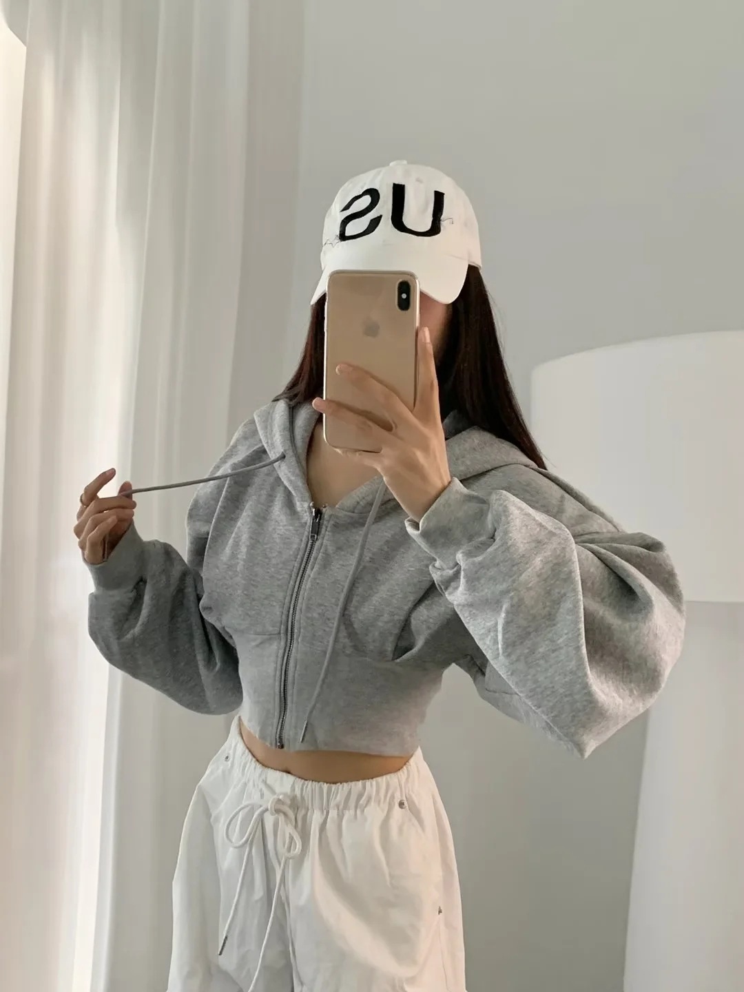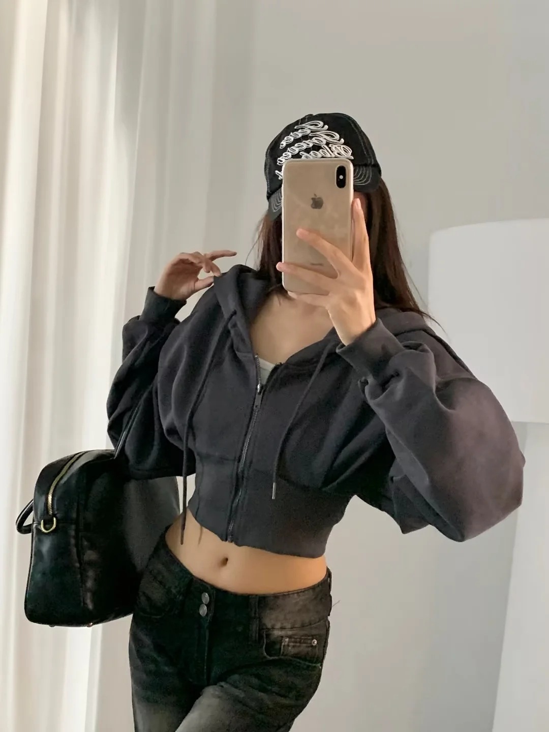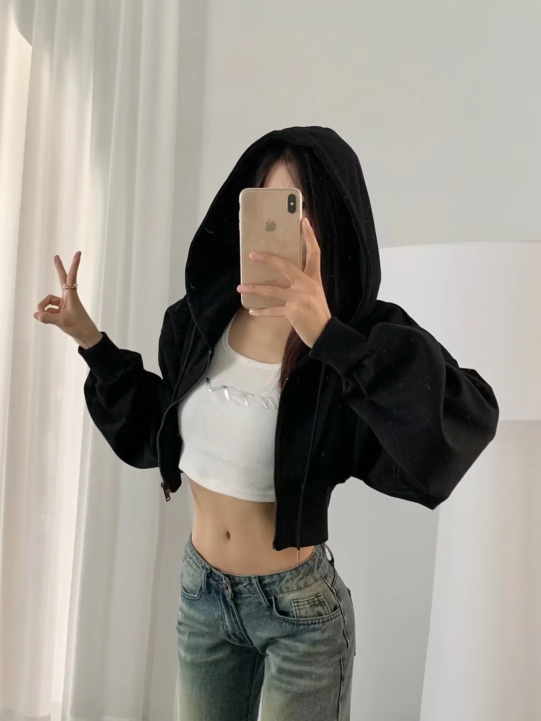 2024 년 초가을 뜨거운 소녀 짧은 타이트 허리 배꼽 느슨한 후드 스웨터 여자 올 매치 하이 웨이스트 지퍼 카디건 재킷스토어 가기