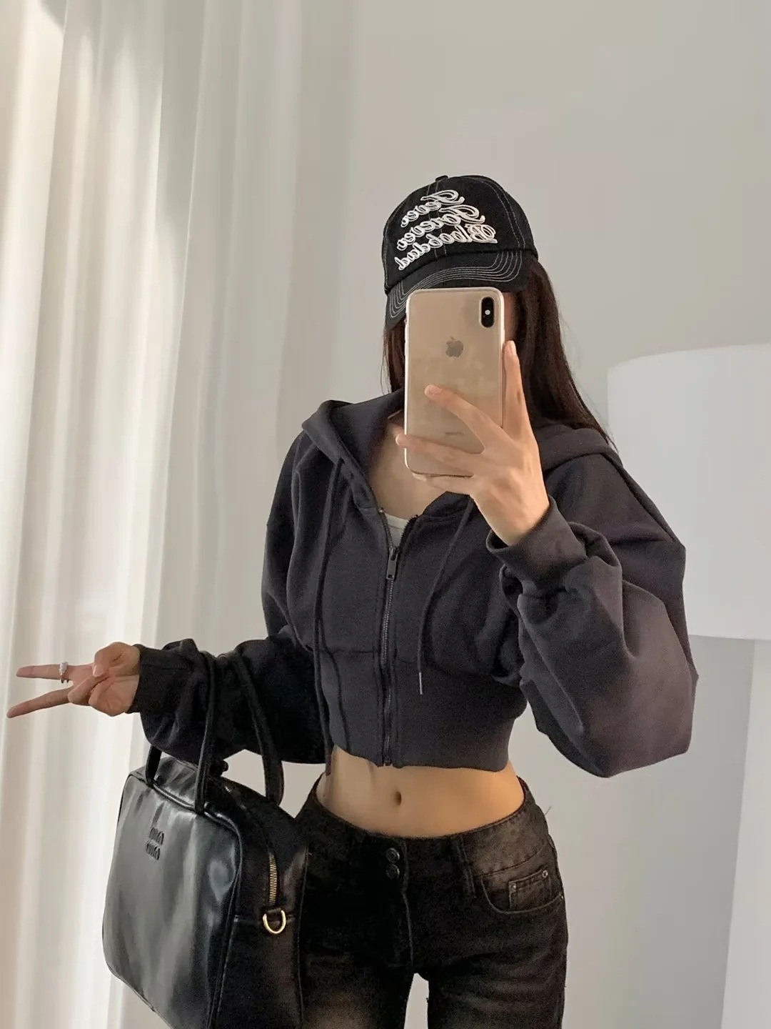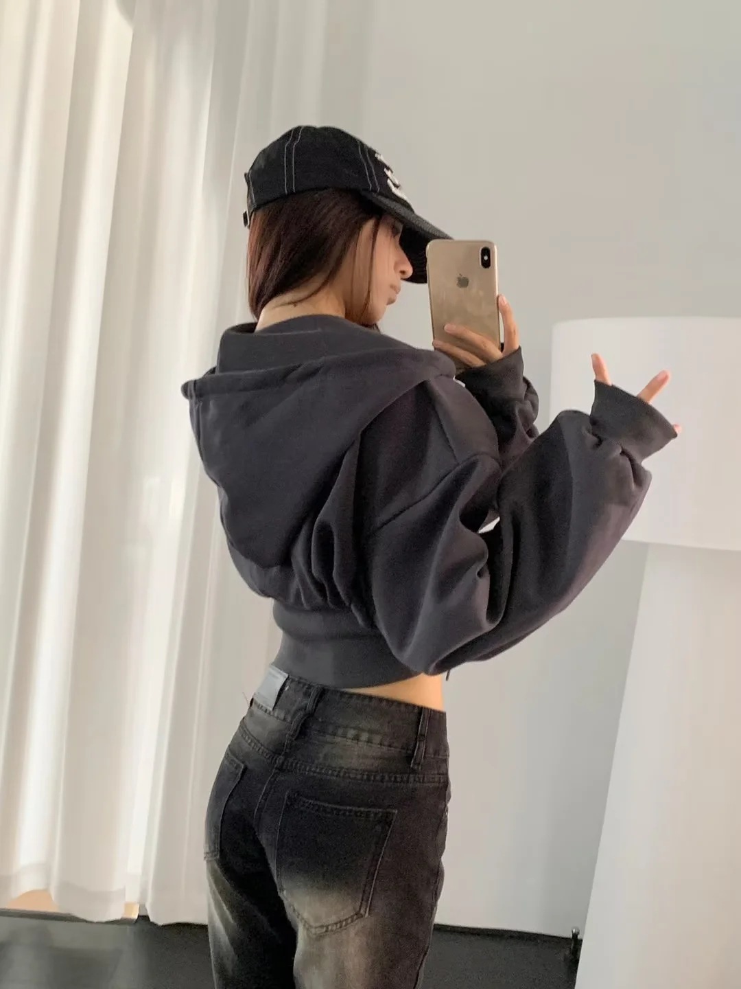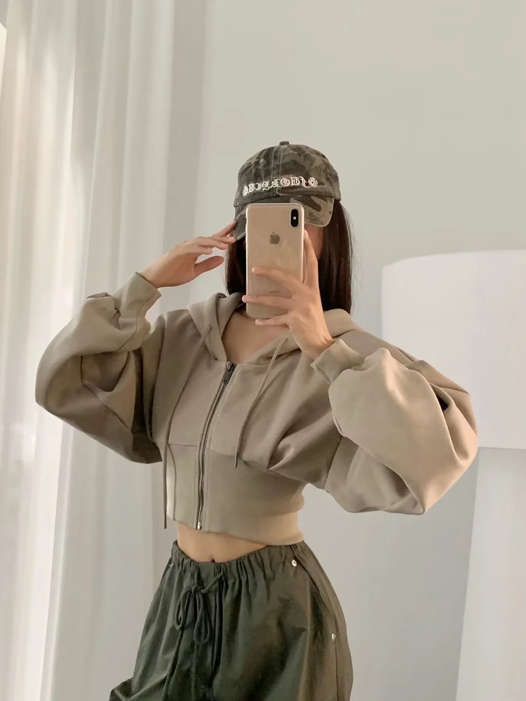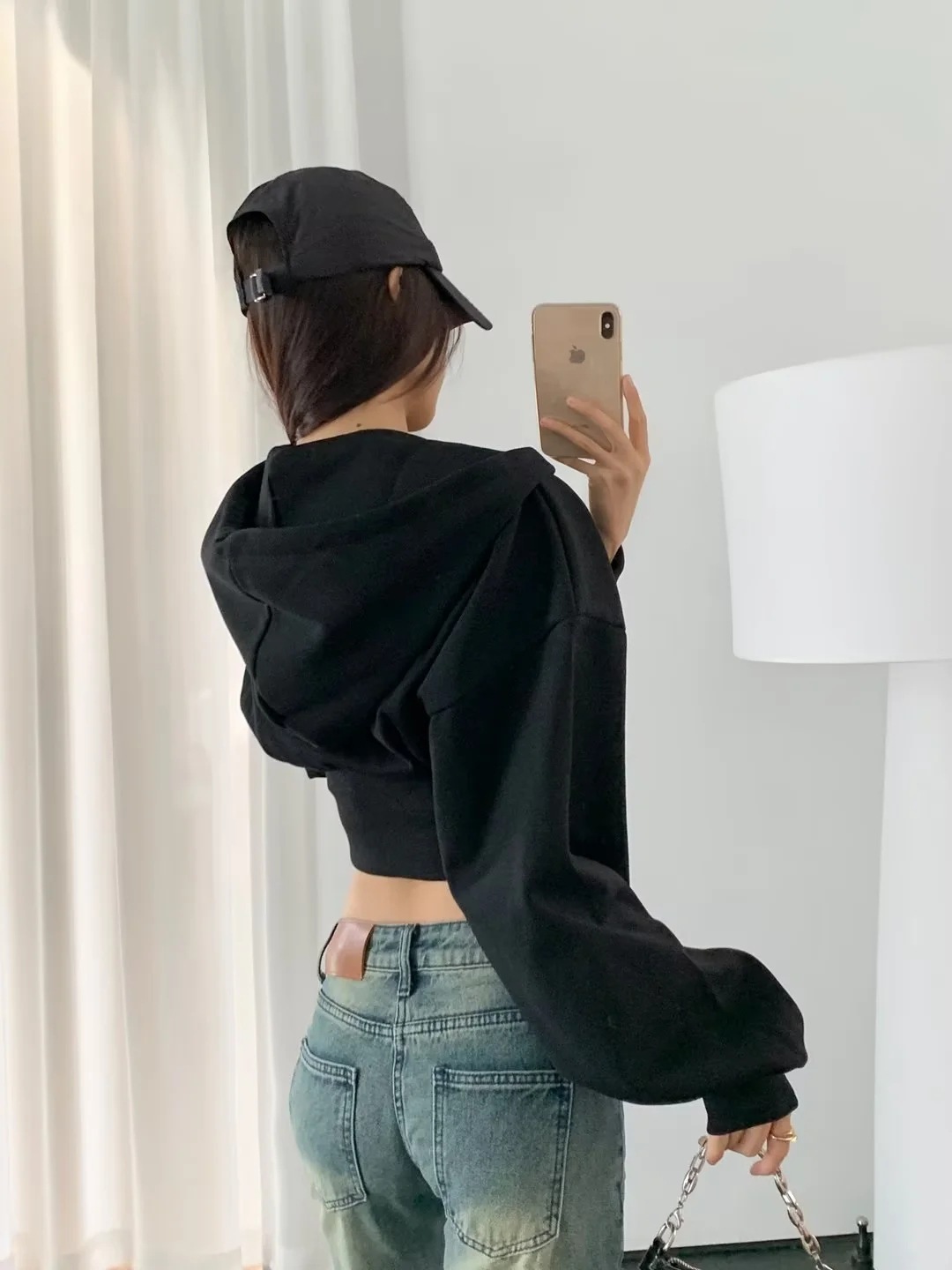 2024 년 초가을 뜨거운 소녀 짧은 타이트 허리 배꼽 느슨한 후드 스웨터 여자 올 매치 하이 웨이스트 지퍼 카디건 재킷스토어 가기