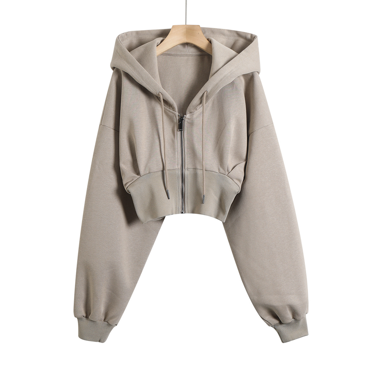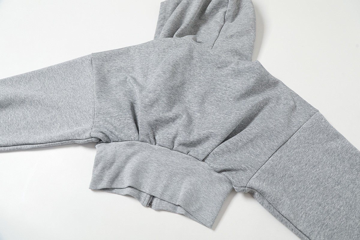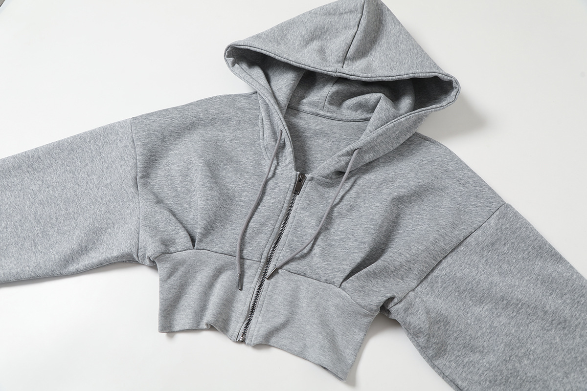 2024 년 초가을 뜨거운 소녀 짧은 타이트 허리 배꼽 느슨한 후드 스웨터 여자 올 매치 하이 웨이스트 지퍼 카디건 재킷