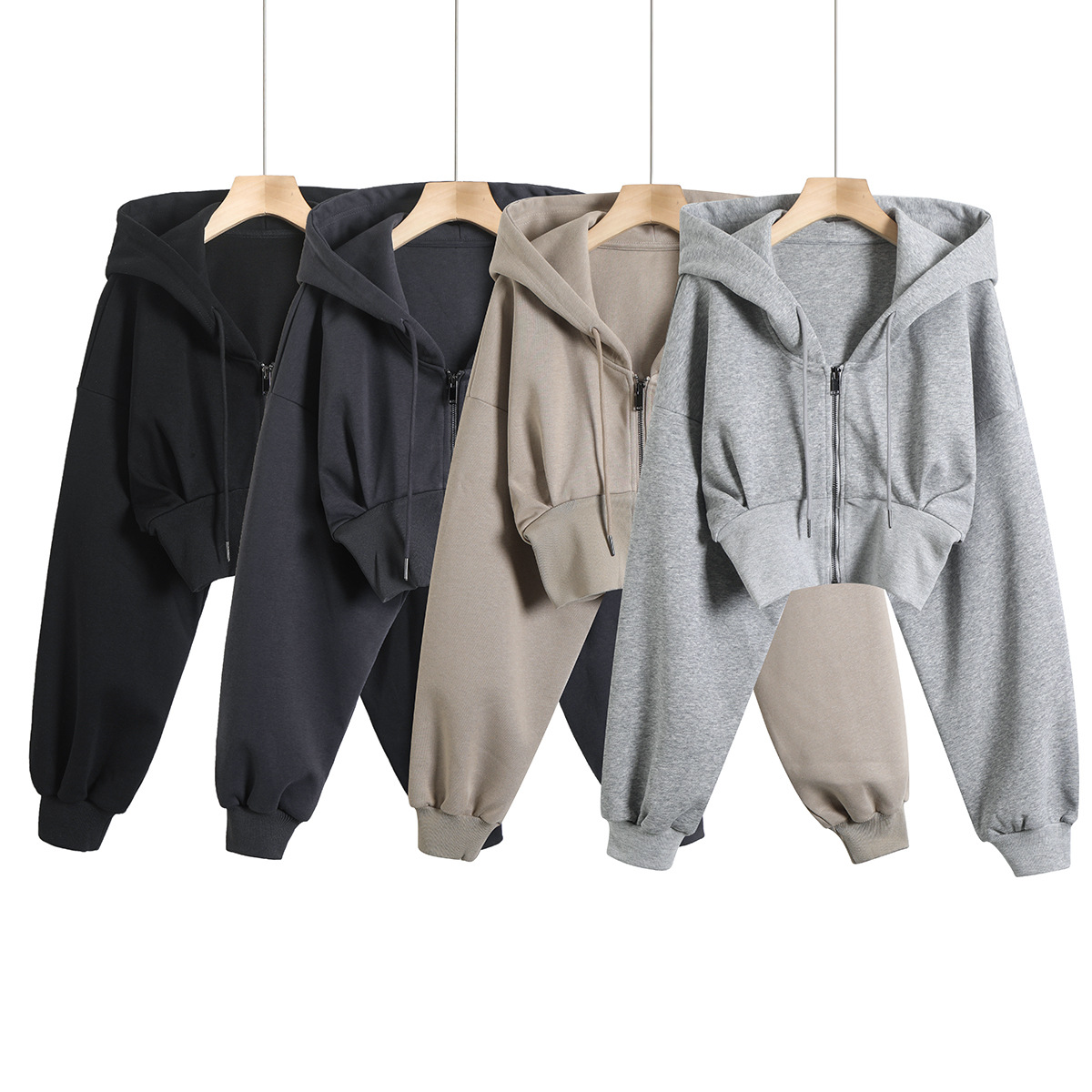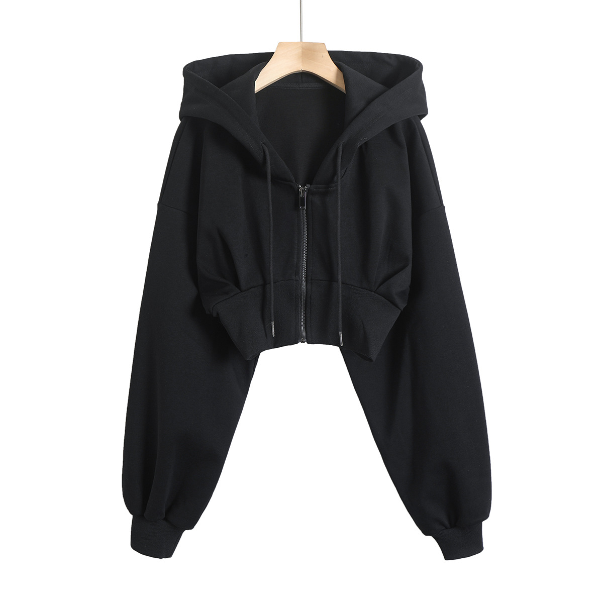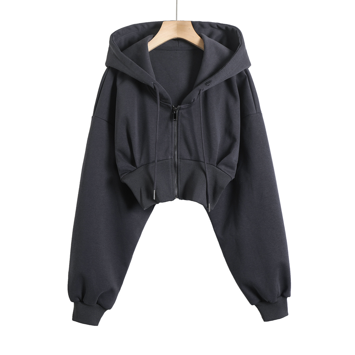 2024 년 초가을 뜨거운 소녀 짧은 타이트 허리 배꼽 느슨한 후드 스웨터 여자 올 매치 하이 웨이스트 지퍼 카디건 재킷