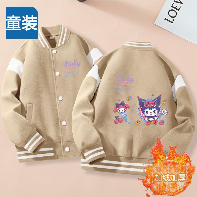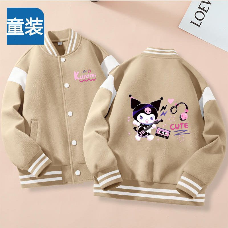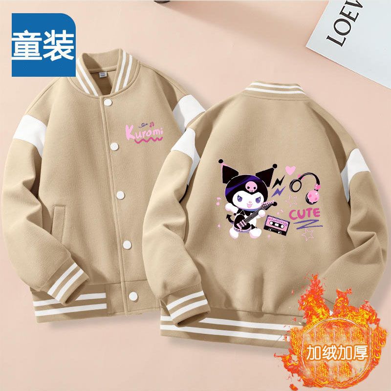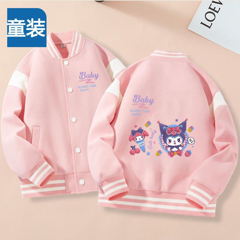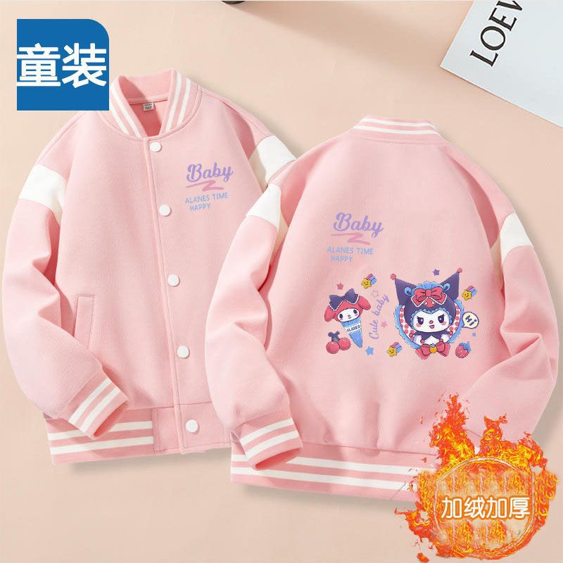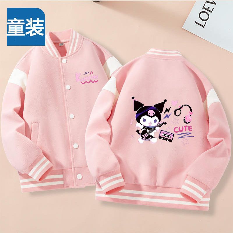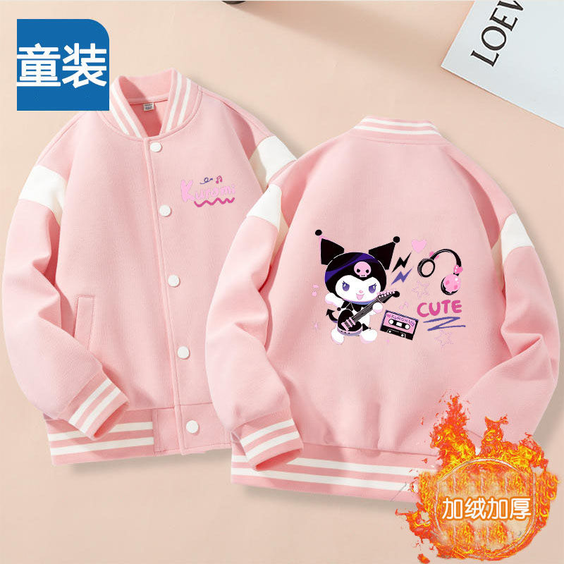 어린이 야구 세트 쿨로 미 가을과 겨울 소녀 자켓 코트 새 버튼 카디건 라운드 넥 딸기 베어 코트