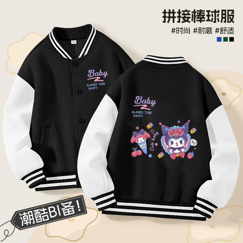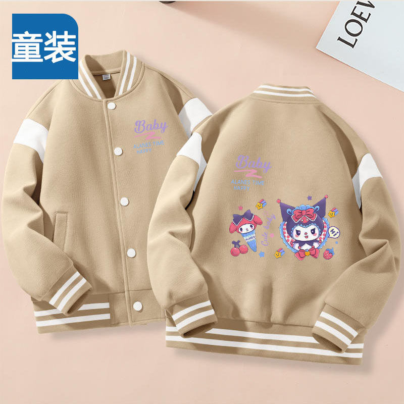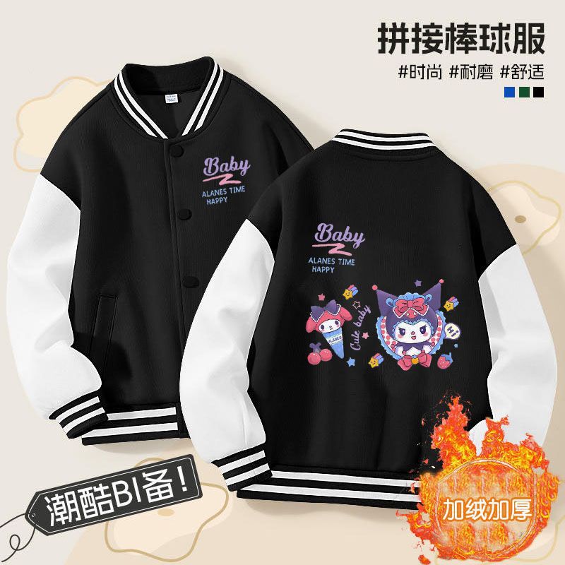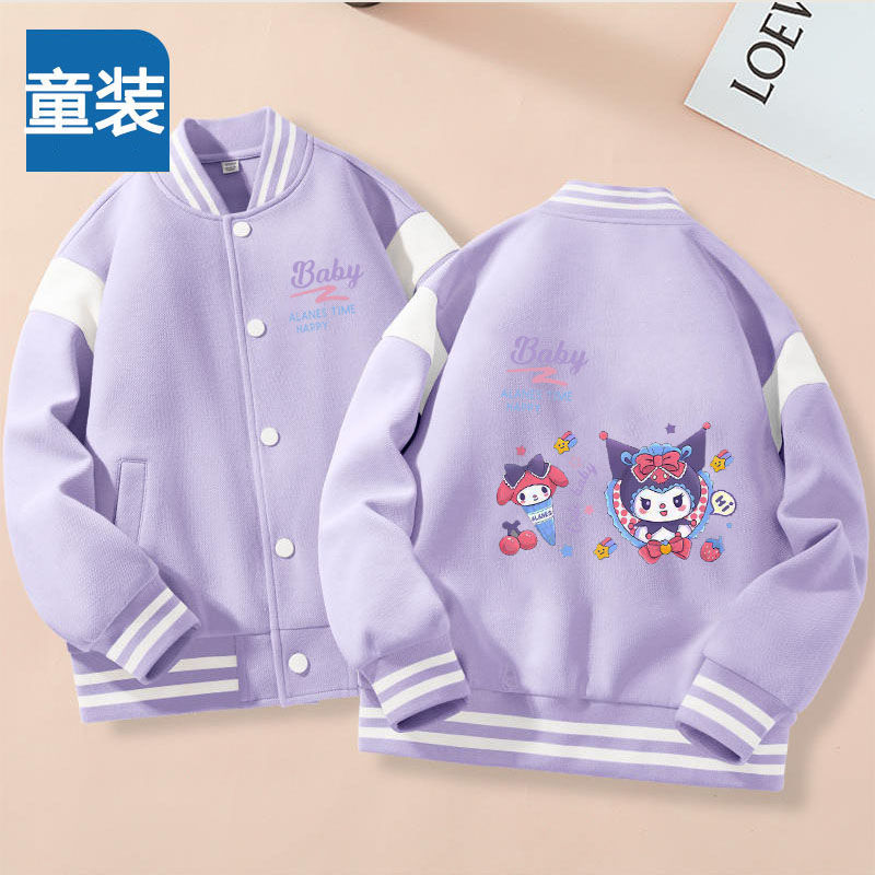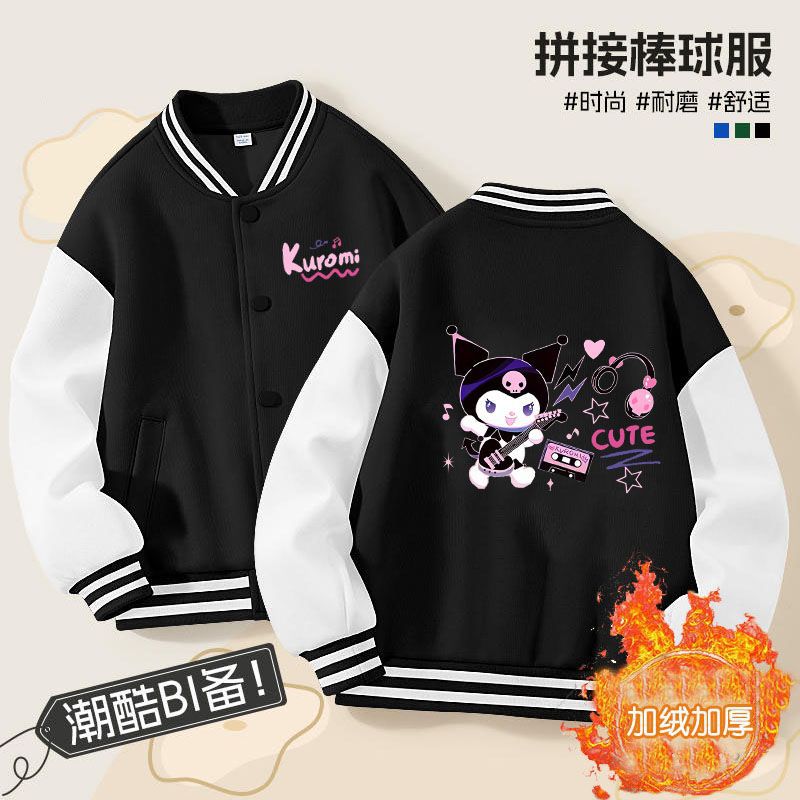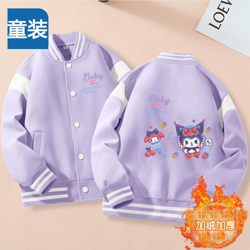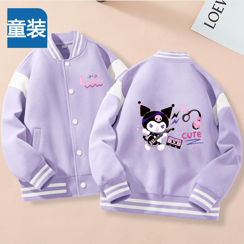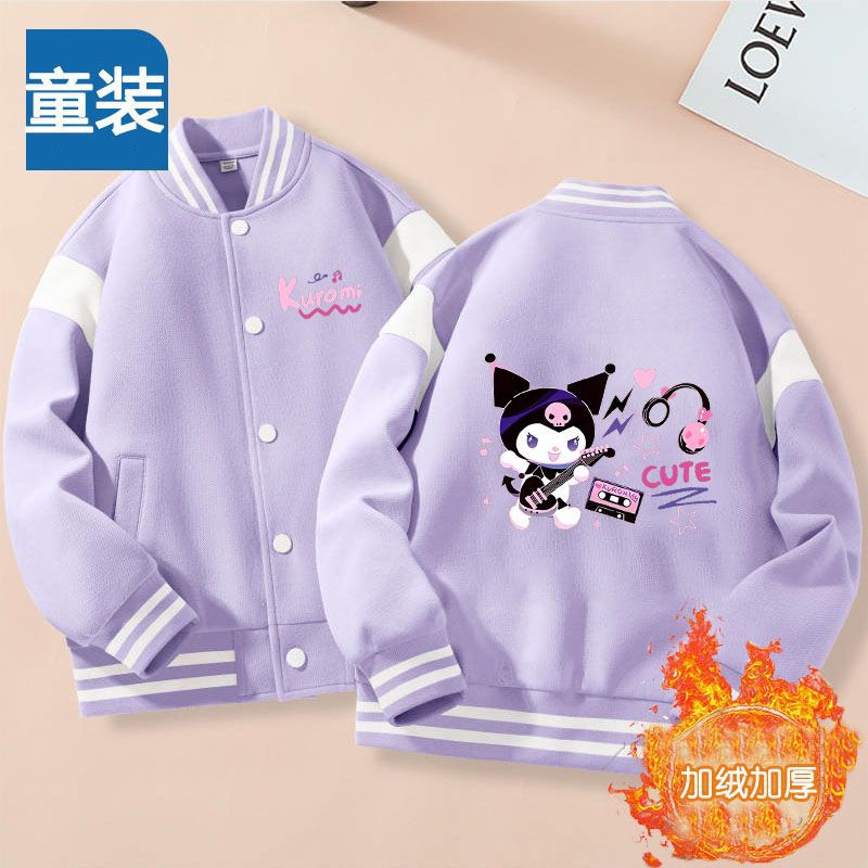 어린이 야구 세트 쿨로 미 가을과 겨울 소녀 자켓 코트 새 버튼 카디건 라운드 넥 딸기 베어 코트