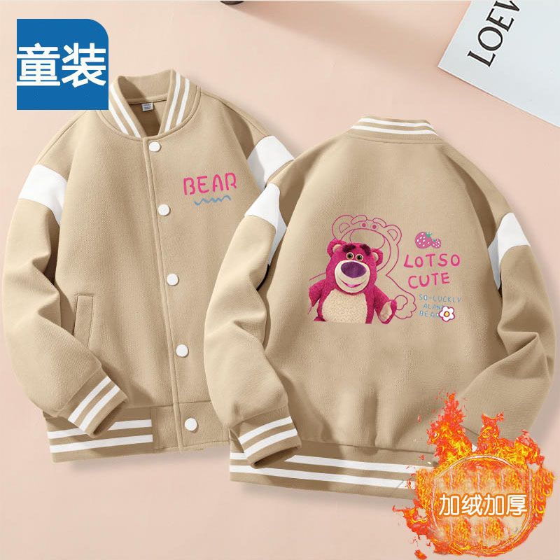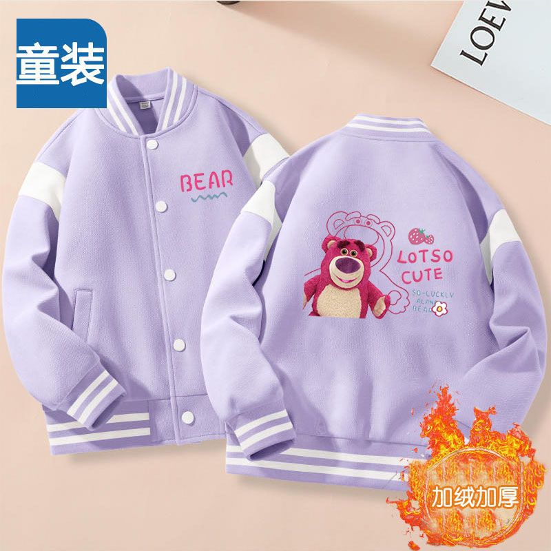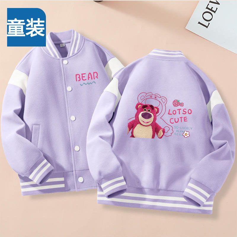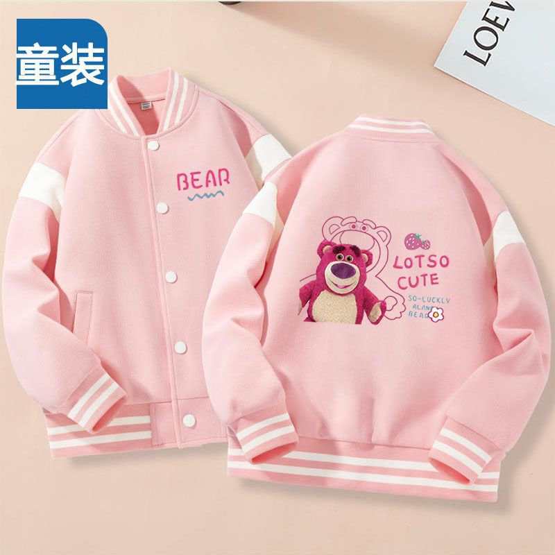 어린이 야구 세트 쿨로 미 가을과 겨울 소녀 자켓 코트 새 버튼 카디건 라운드 넥 딸기 베어 코트스토어 가기