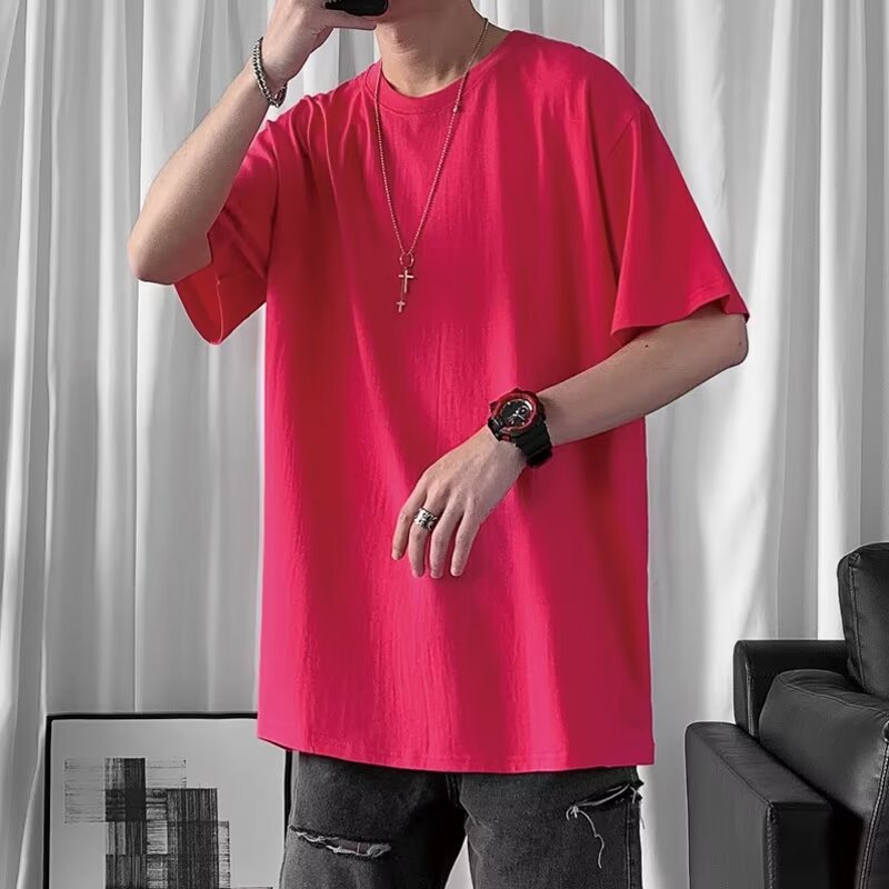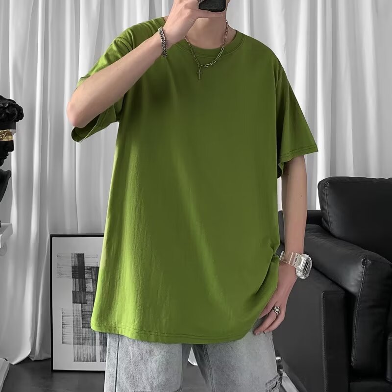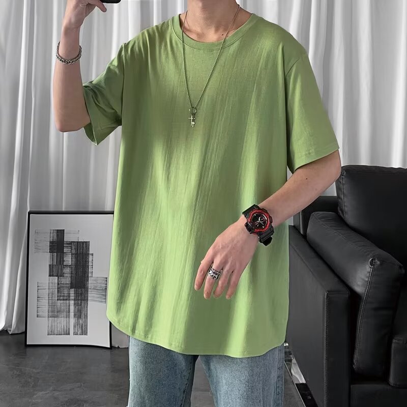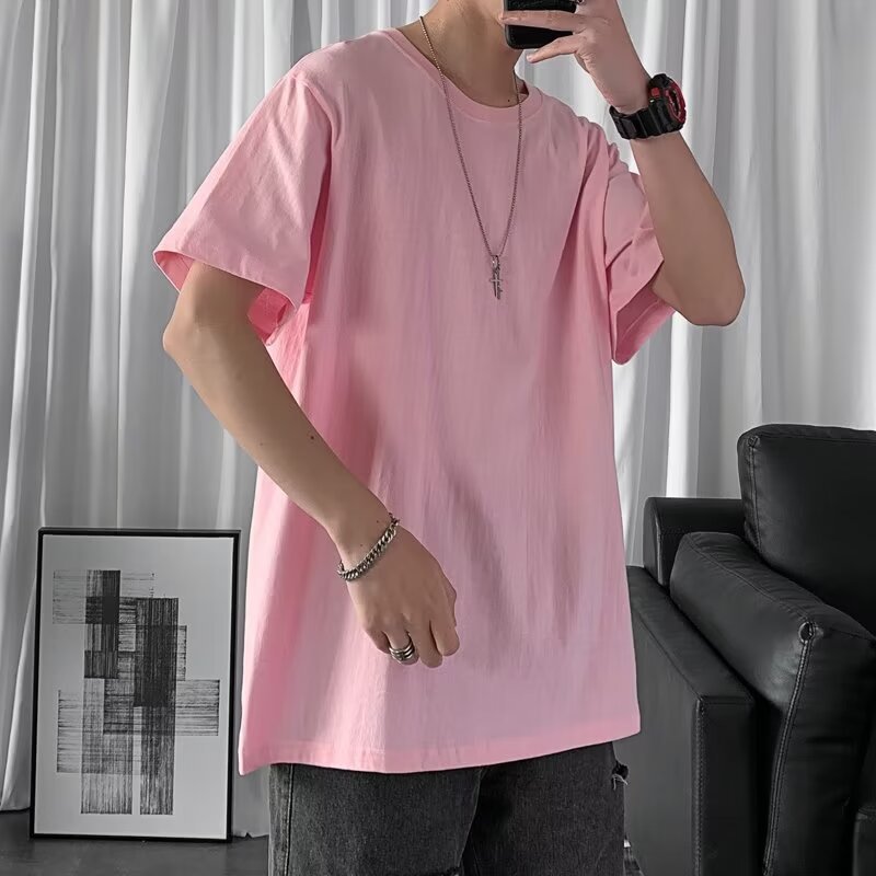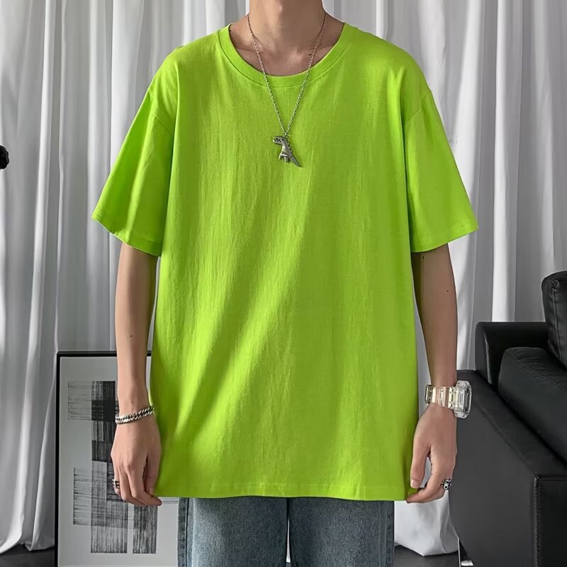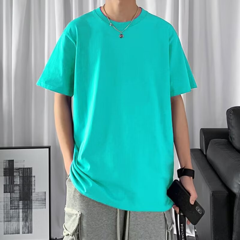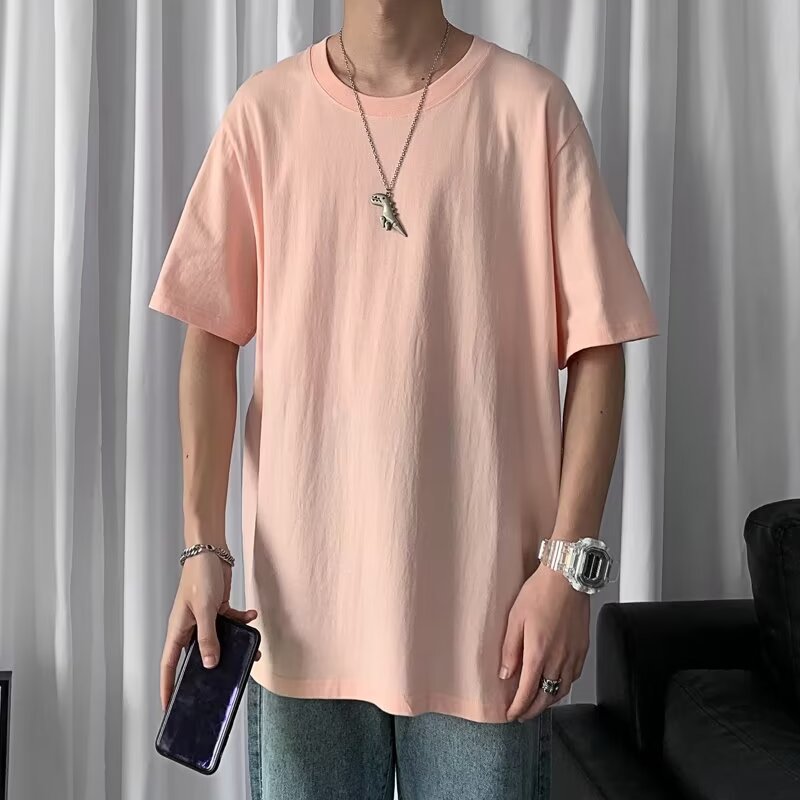 캔디 컬러 반팔 티셔츠 남자 여름 한국 스타일 패셔너블 루즈 캐주얼베이스 셔츠 솔리드 컬러 반팔 티셔츠