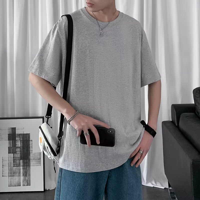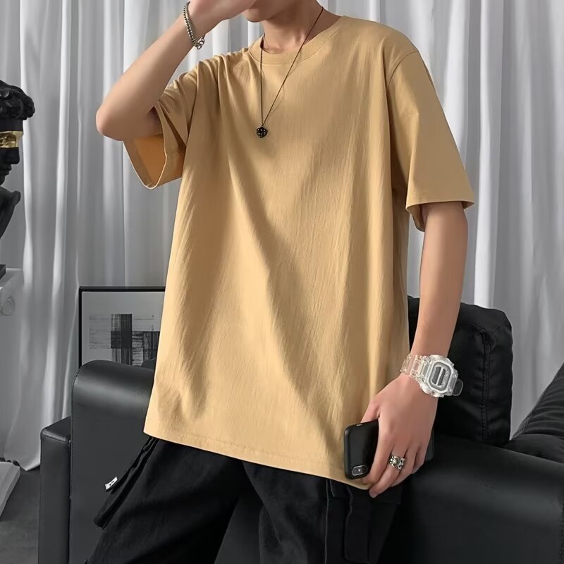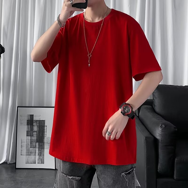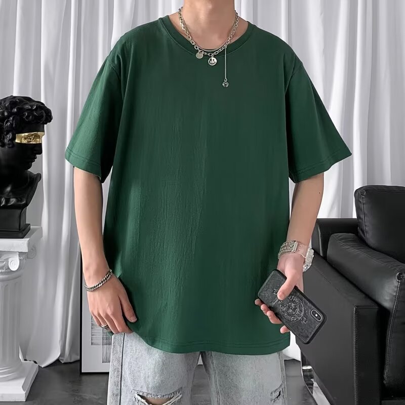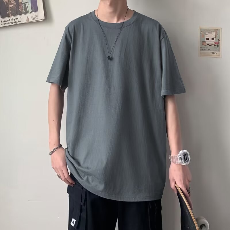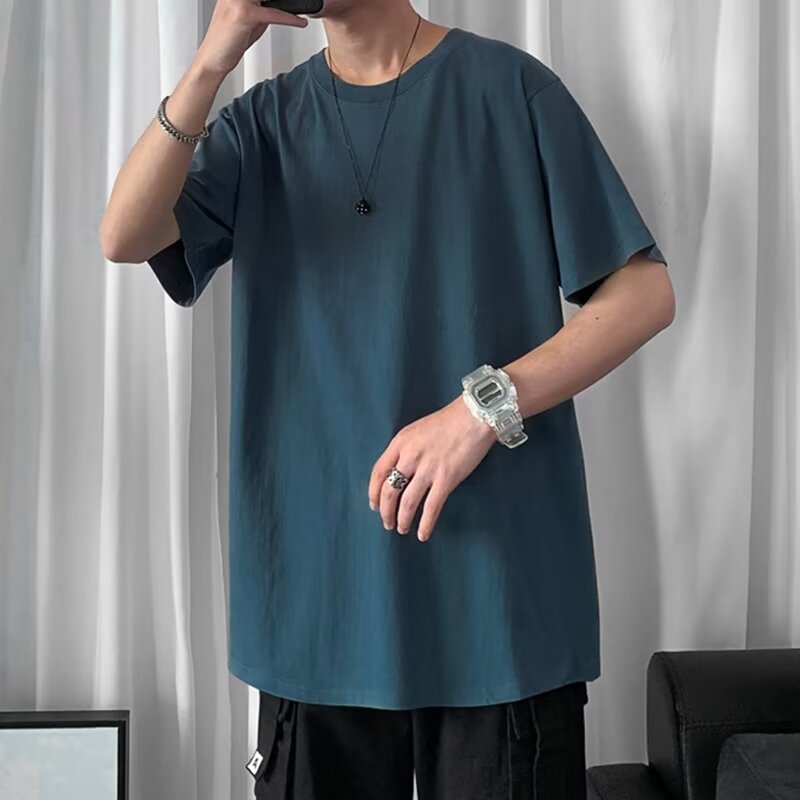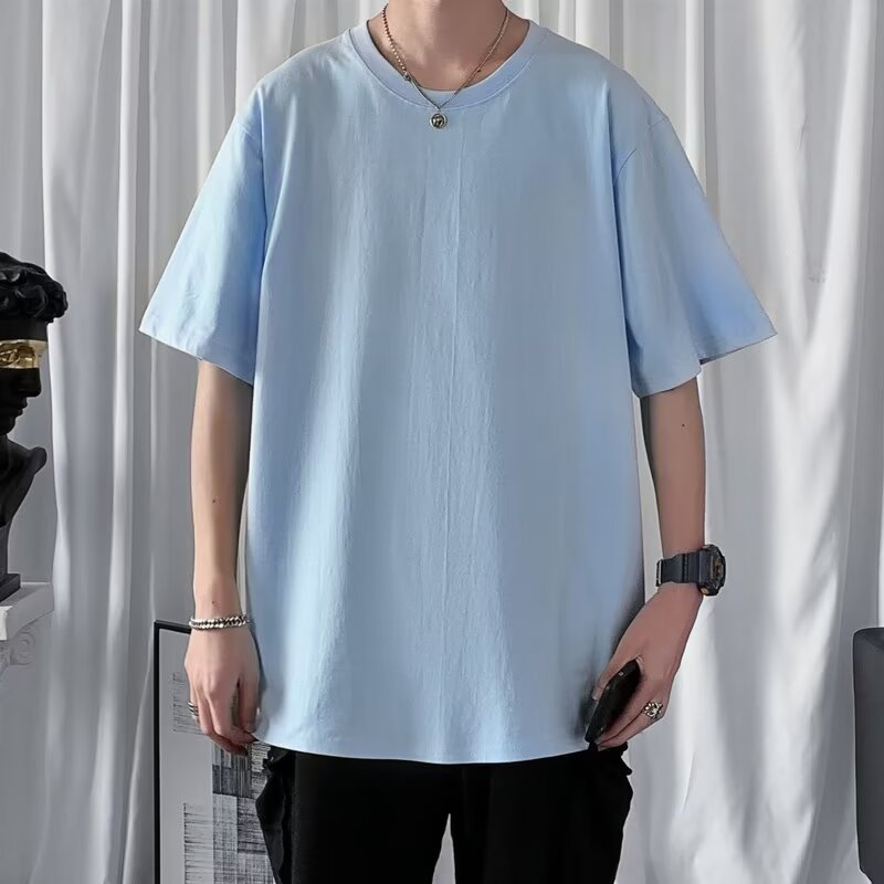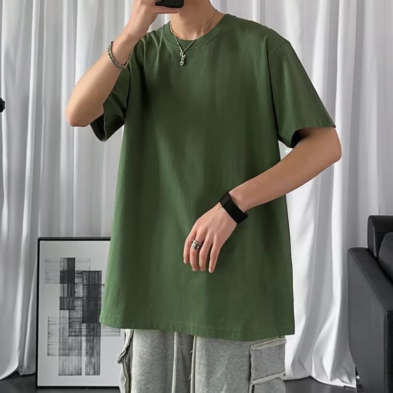 캔디 컬러 반팔 티셔츠 남자 여름 한국 스타일 패셔너블 루즈 캐주얼베이스 셔츠 솔리드 컬러 반팔 티셔츠