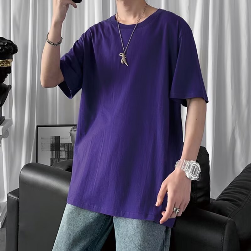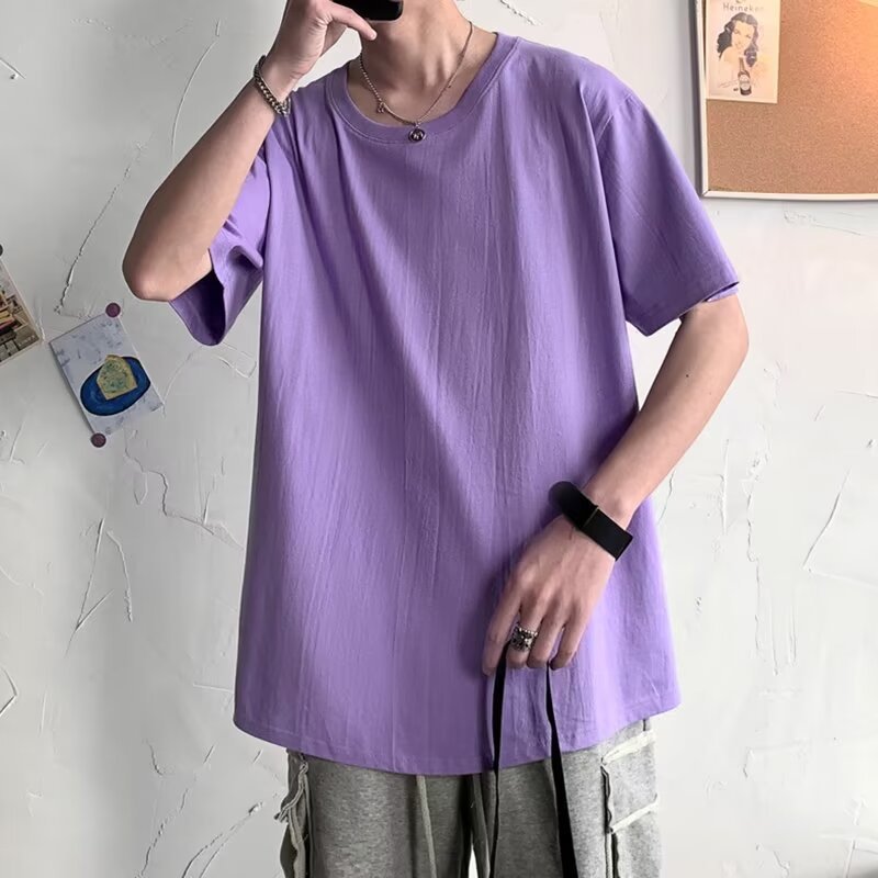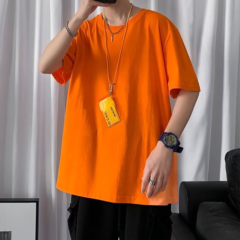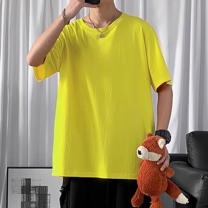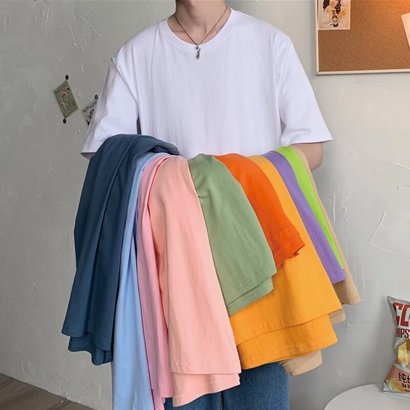 캔디 컬러 반팔 티셔츠 남자 여름 한국 스타일 패셔너블 루즈 캐주얼베이스 셔츠 솔리드 컬러 반팔 티셔츠스토어 가기