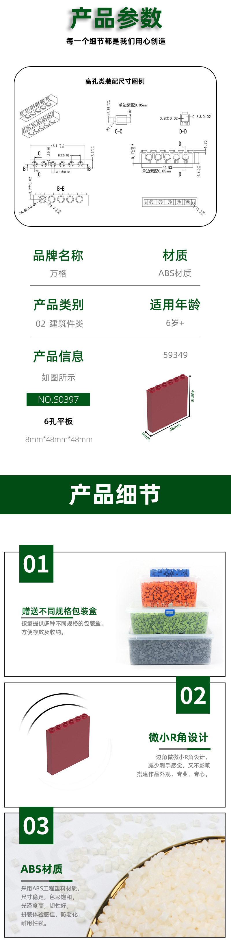 완게 MOC 호환 DIY 소형 블록 59349 조립 부품 6홀 플랫 패널 과학 교육용 장난감스토어 가기