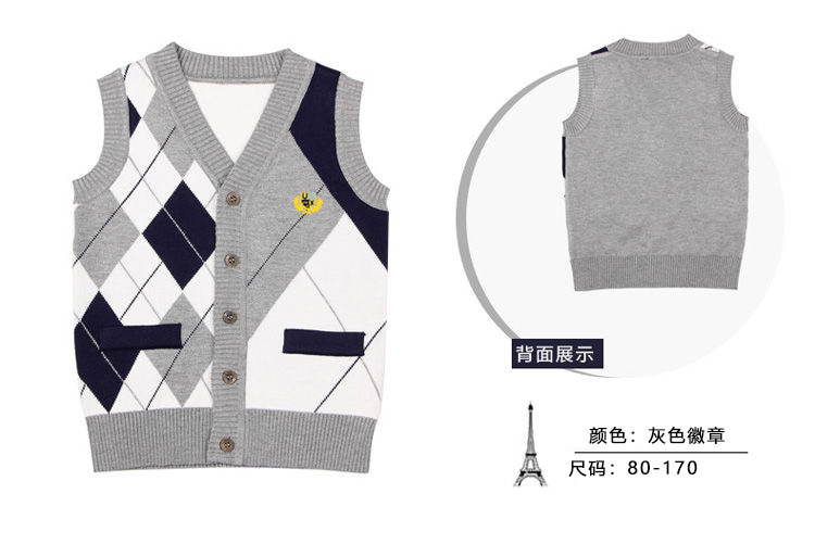 潮童棉线开衫马甲,适合0.5-11岁,身高70-145cm的孩子穿。双色可选,搭配白衬衫,妥妥滴学院风小帅哥一枚。