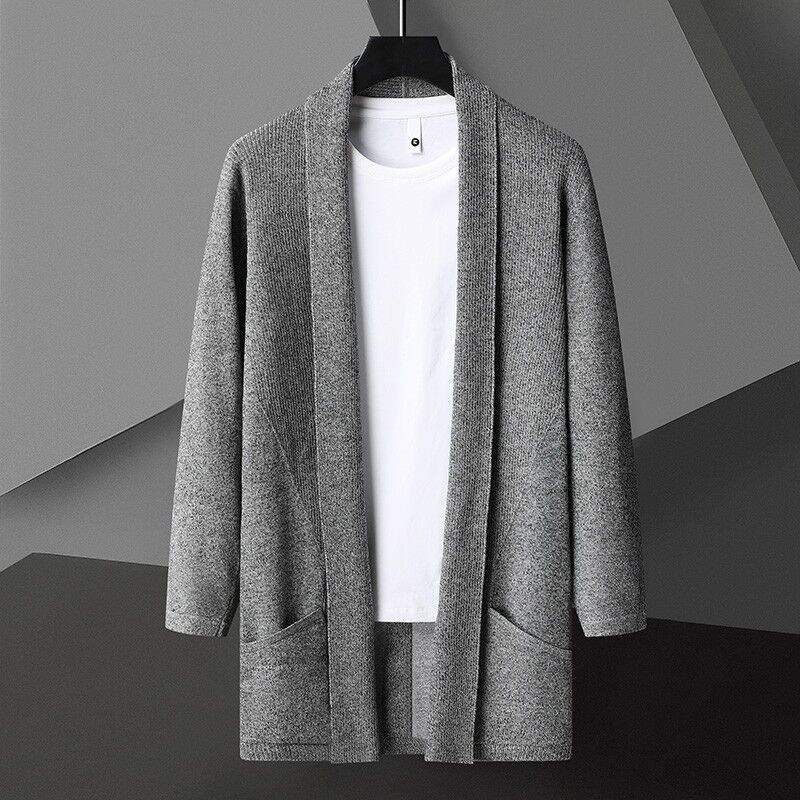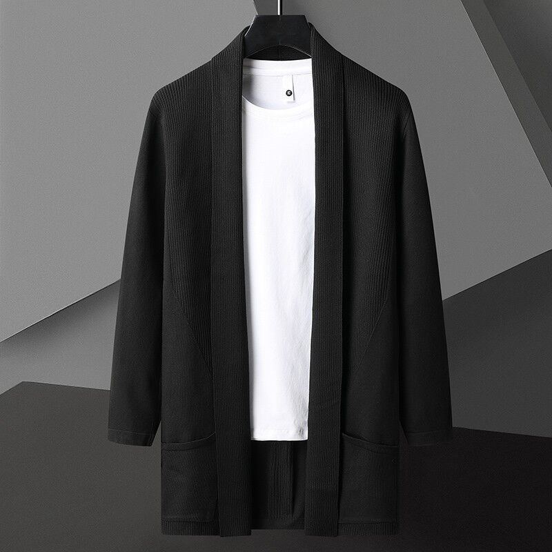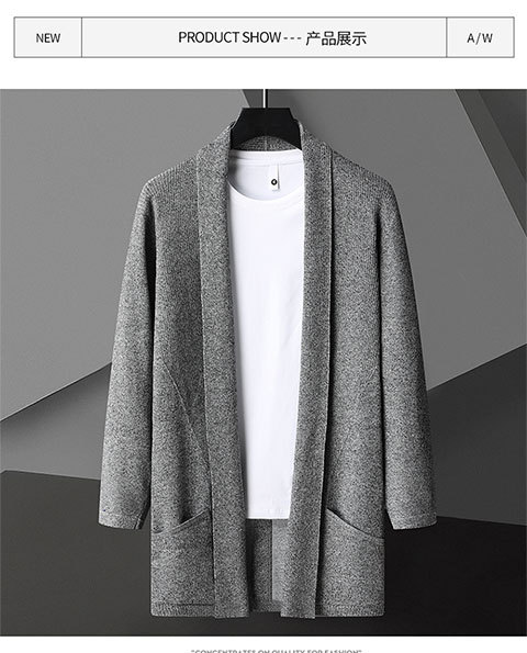 일본 한국 국경 남성 봄과 가을 중간 길이의 한국식 슬림 핏 스웨터 카디건 니트 스웨터 코트