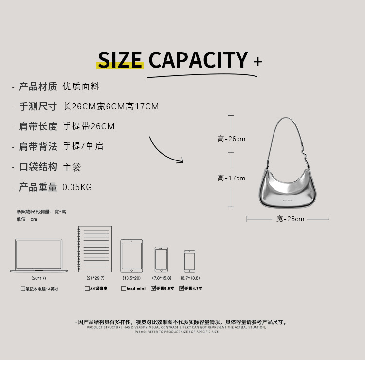 CHARHP & KEJNT 공식 정품 고급 언더암 가방 패션 휴대용 초승달 가방 올 매치 틈새 어깨 가방