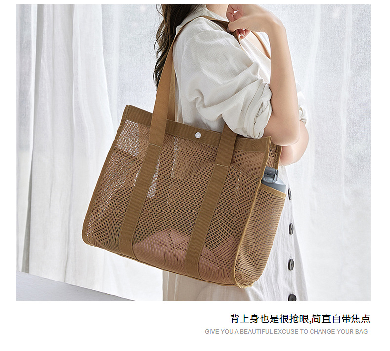 국경 간 스포츠 패션 비치 가방 메쉬 피트니스 요가 숄더 백 여행 메이크업 워시 보관 가방 대용량
