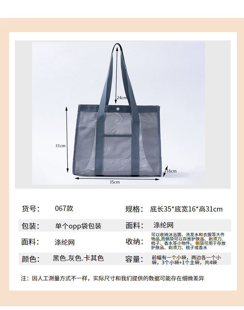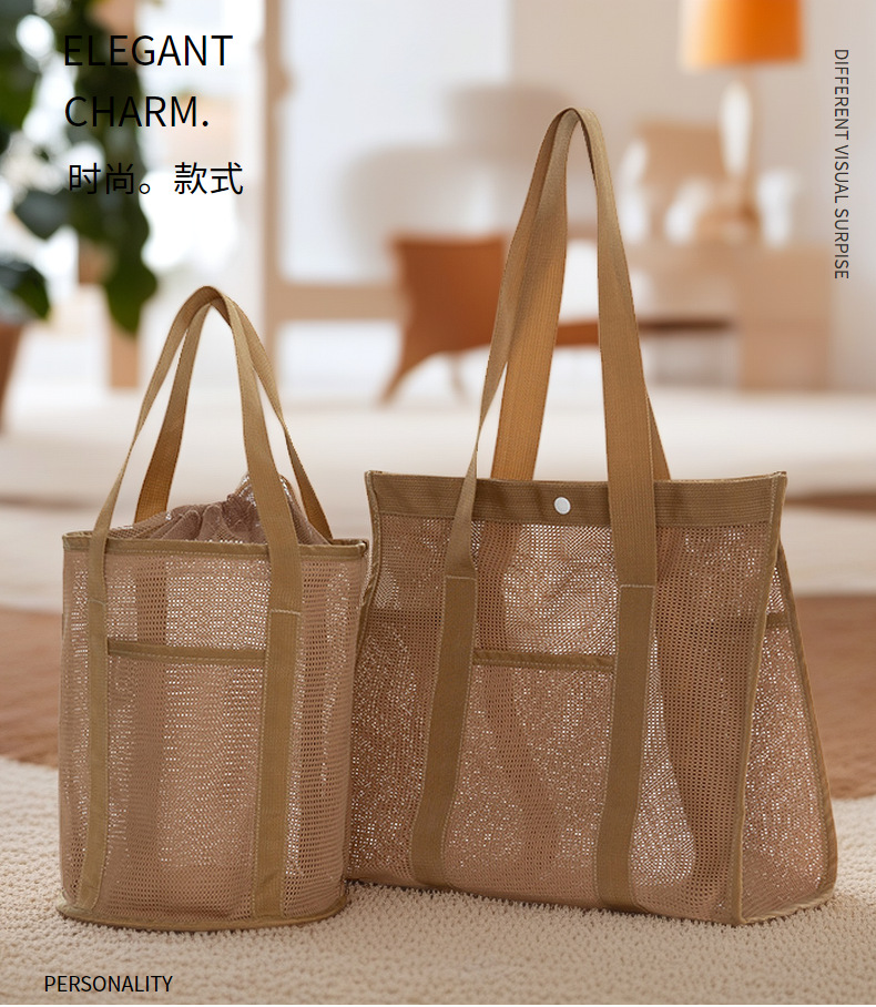 국경 간 스포츠 패션 비치 가방 메쉬 피트니스 요가 숄더 백 여행 메이크업 워시 보관 가방 대용량스토어 가기
