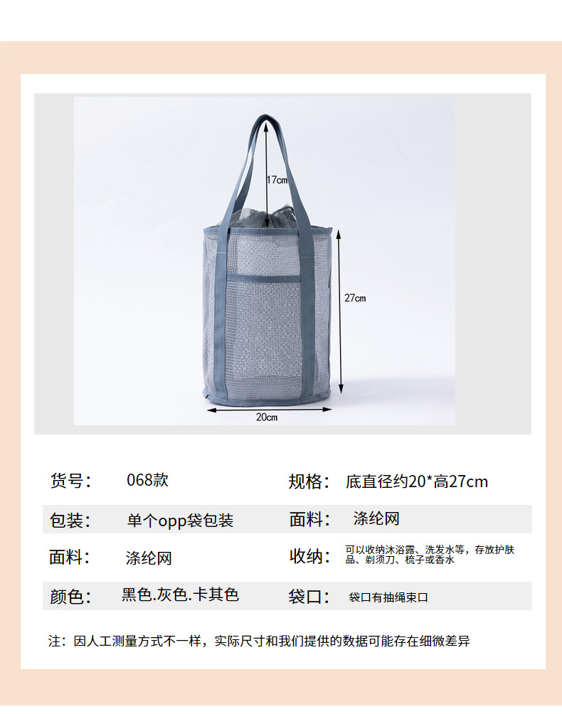 • 휴대용 조임끈 세면도구 가방 그레이 068#