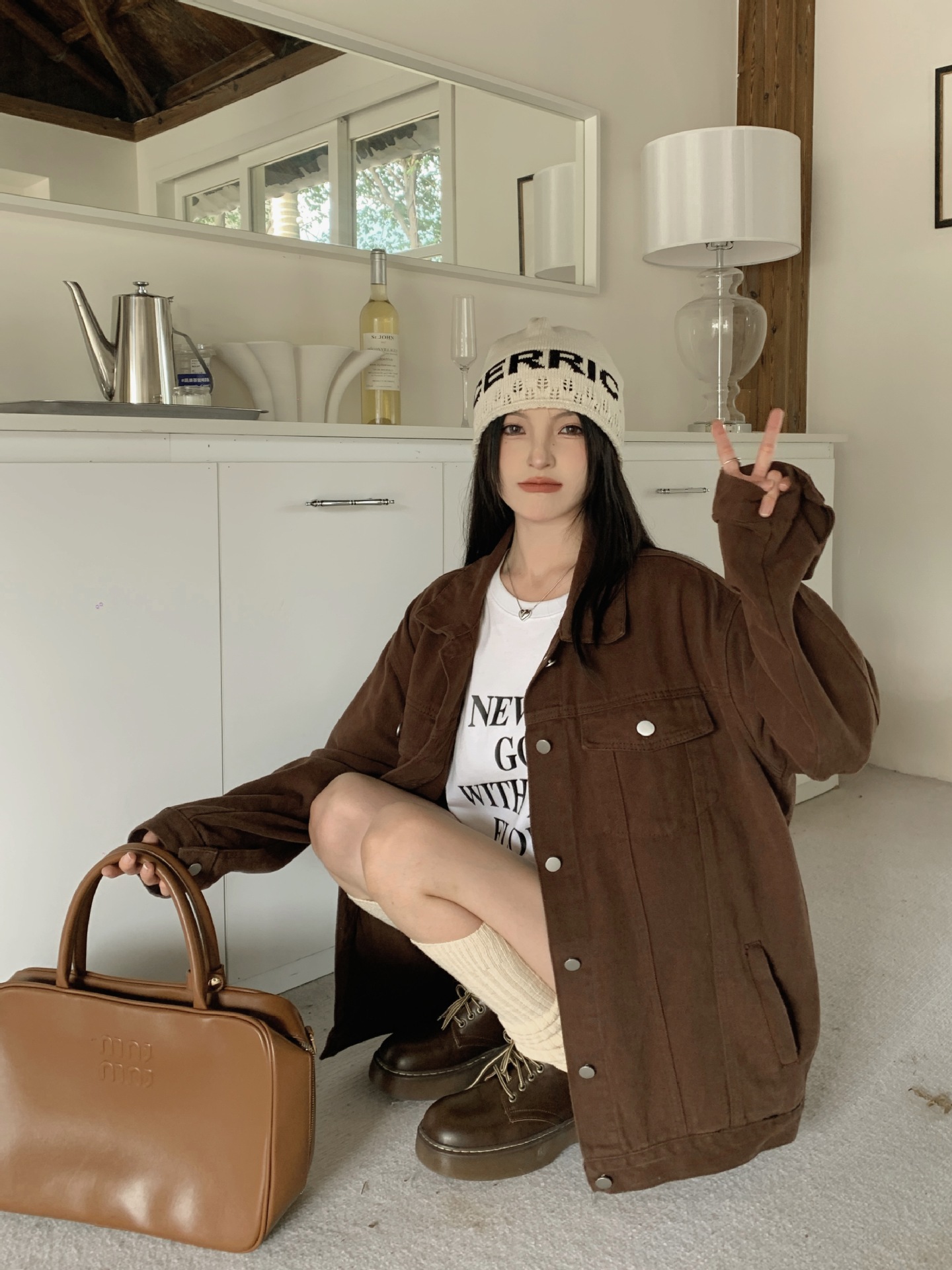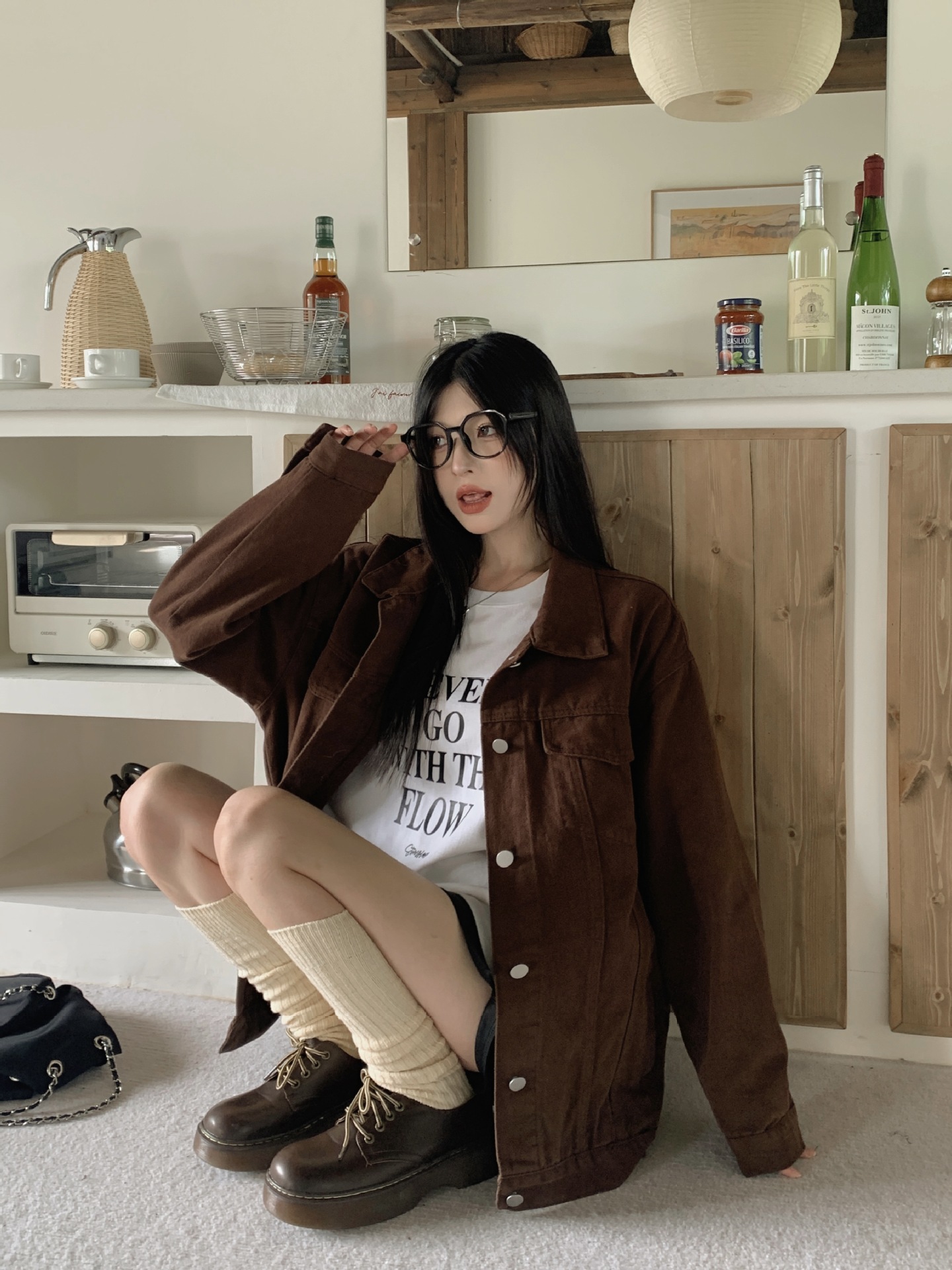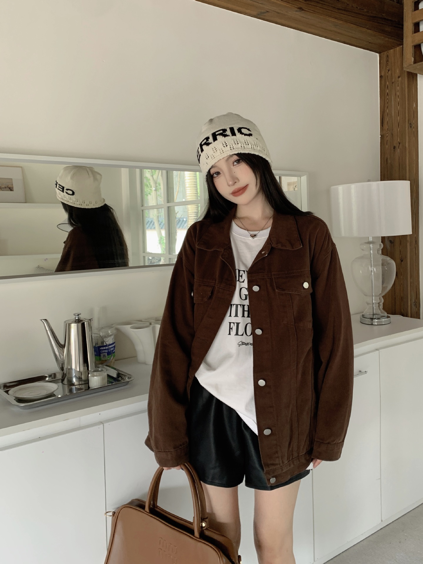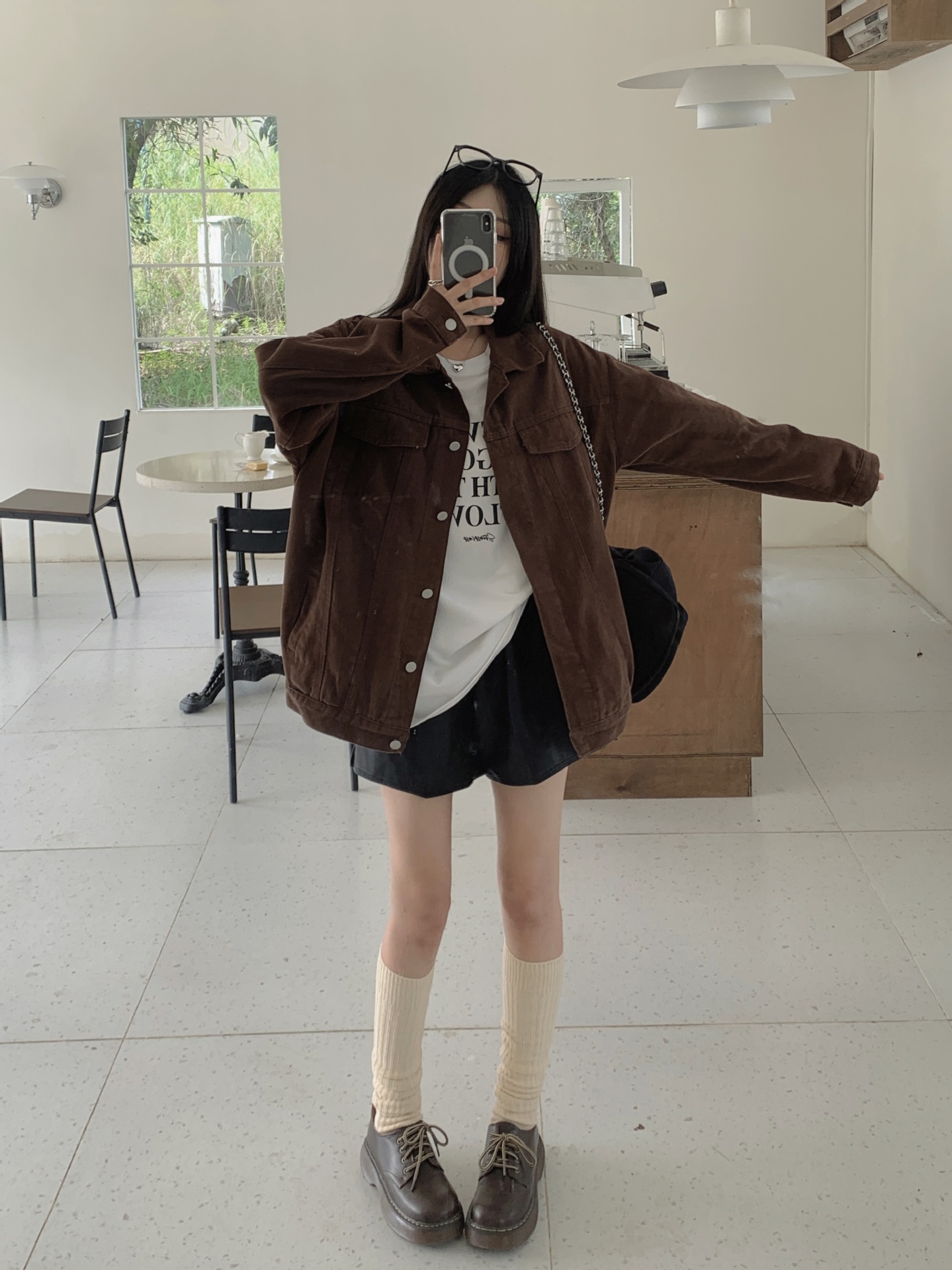 아메리칸 스타일 레트로 다크 브라운 샌딩 데님 코트 여성 봄과 가을 작은 툴링 캐주얼 자켓 랩 느슨한 슬리밍스토어 가기