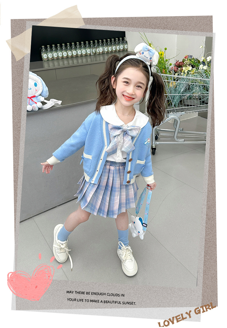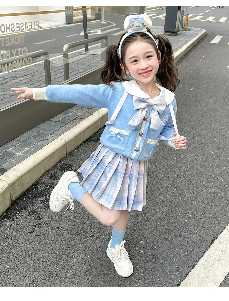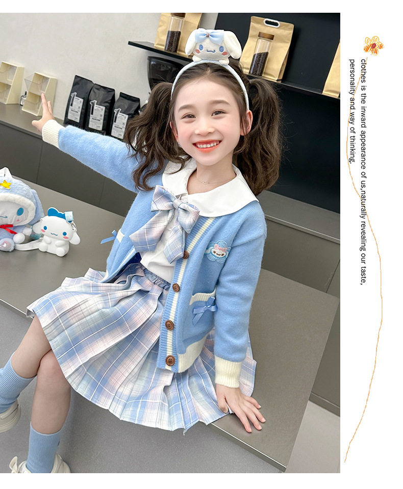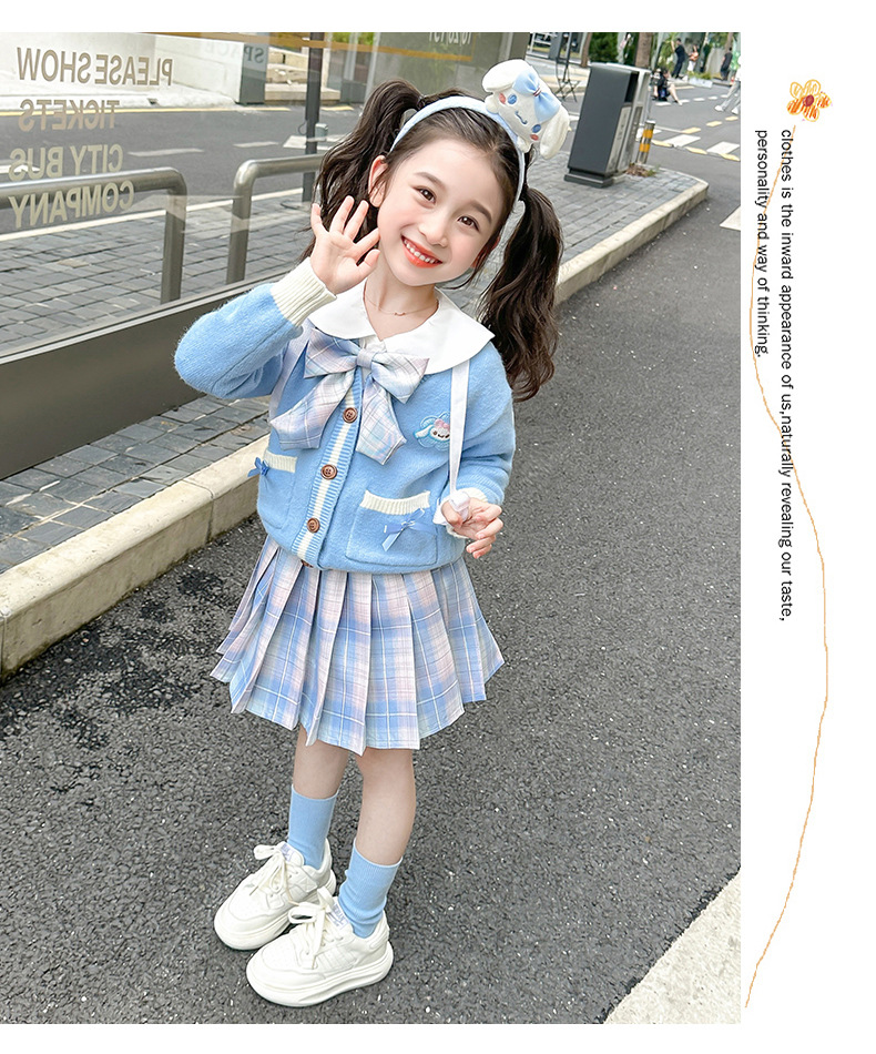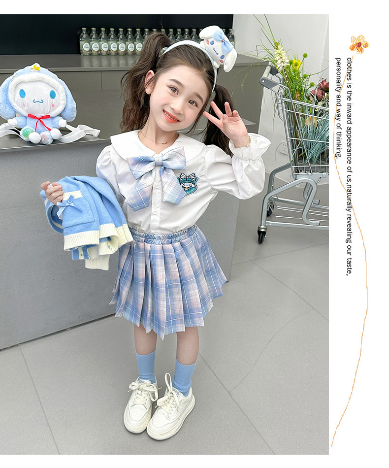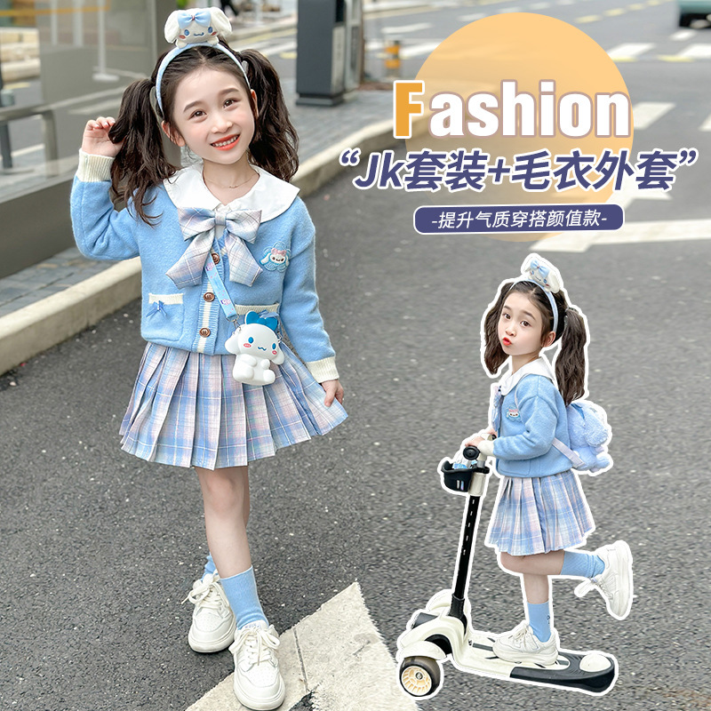 여자 JK 주름 치마 세트 아카데미 스타일 스커트 2024 새로운 봄과 가을 어린이 코트 소녀 셔츠 스웨터