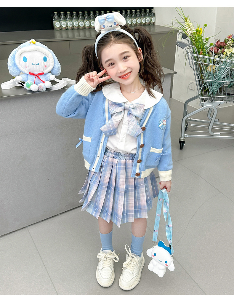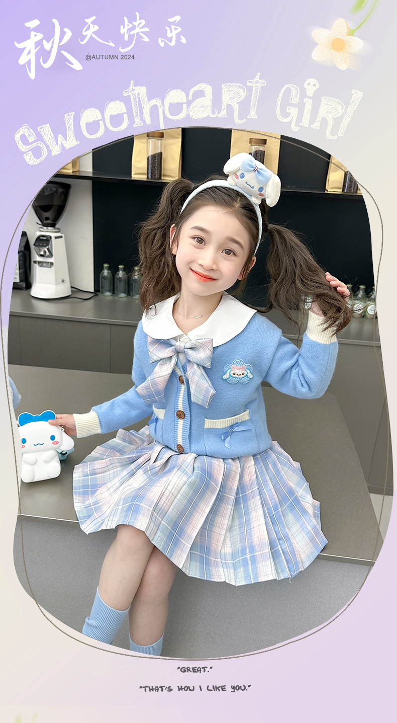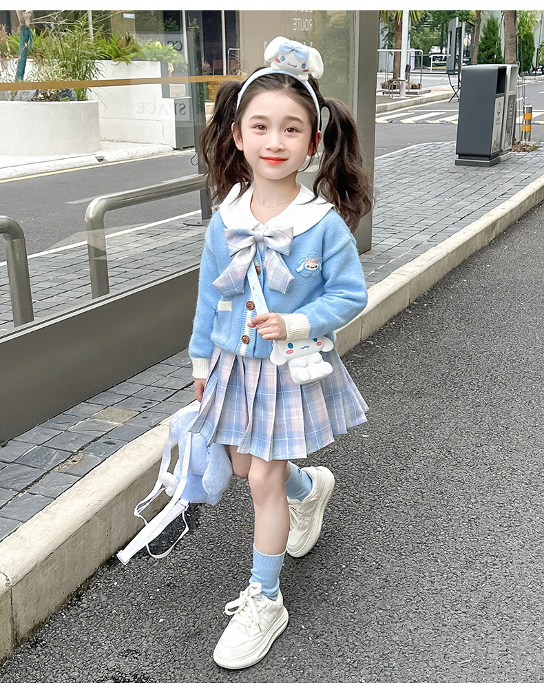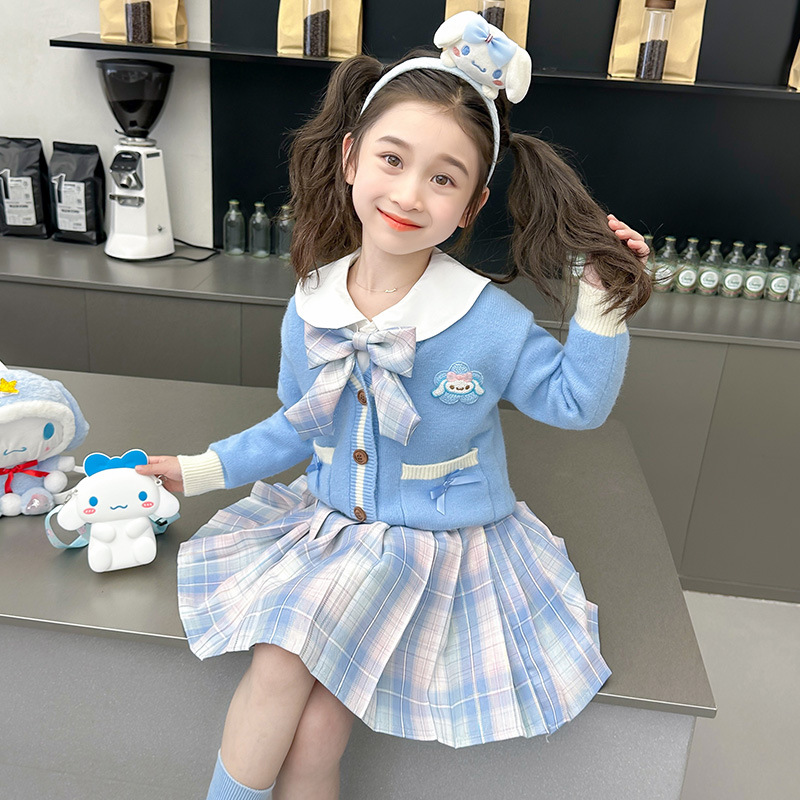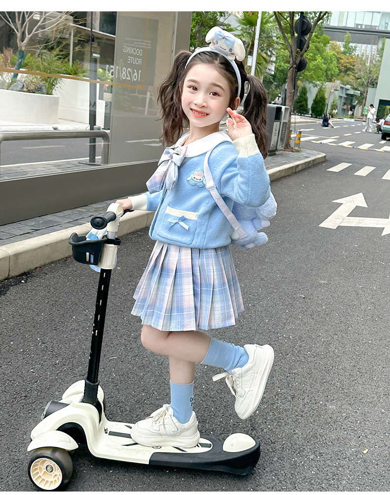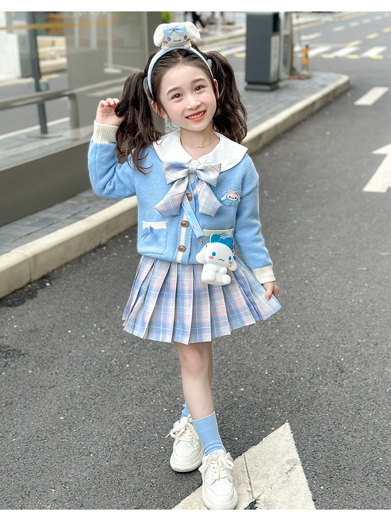 여자 JK 주름 치마 세트 아카데미 스타일 스커트 2024 새로운 봄과 가을 어린이 코트 소녀 셔츠 스웨터