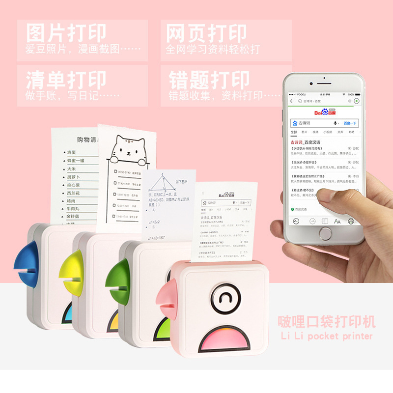 Poooli Li L1 미니 포켓 휴대용 블루투스 학생 잘못된 질문 손 계정 사진 열 인쇄 라벨 기계